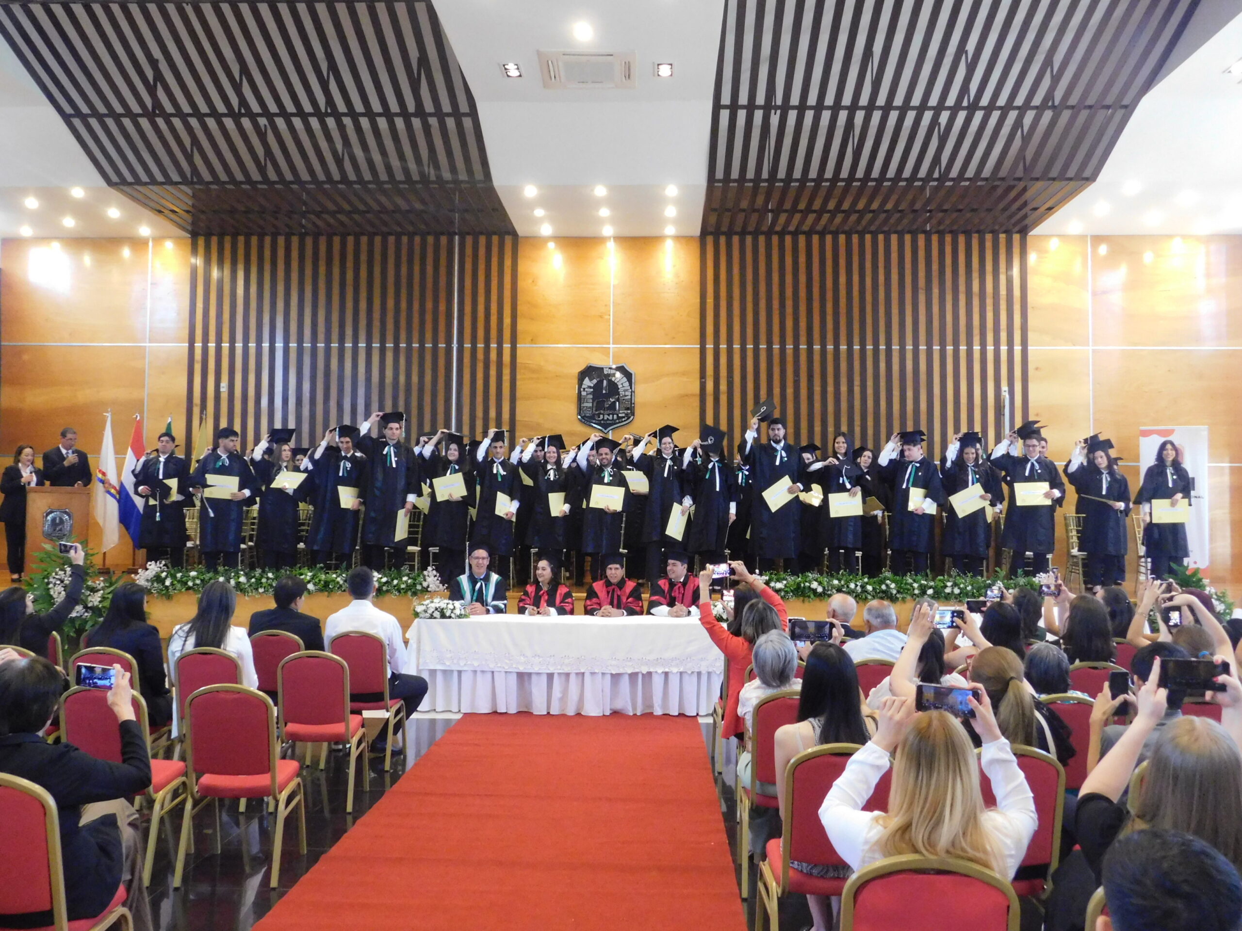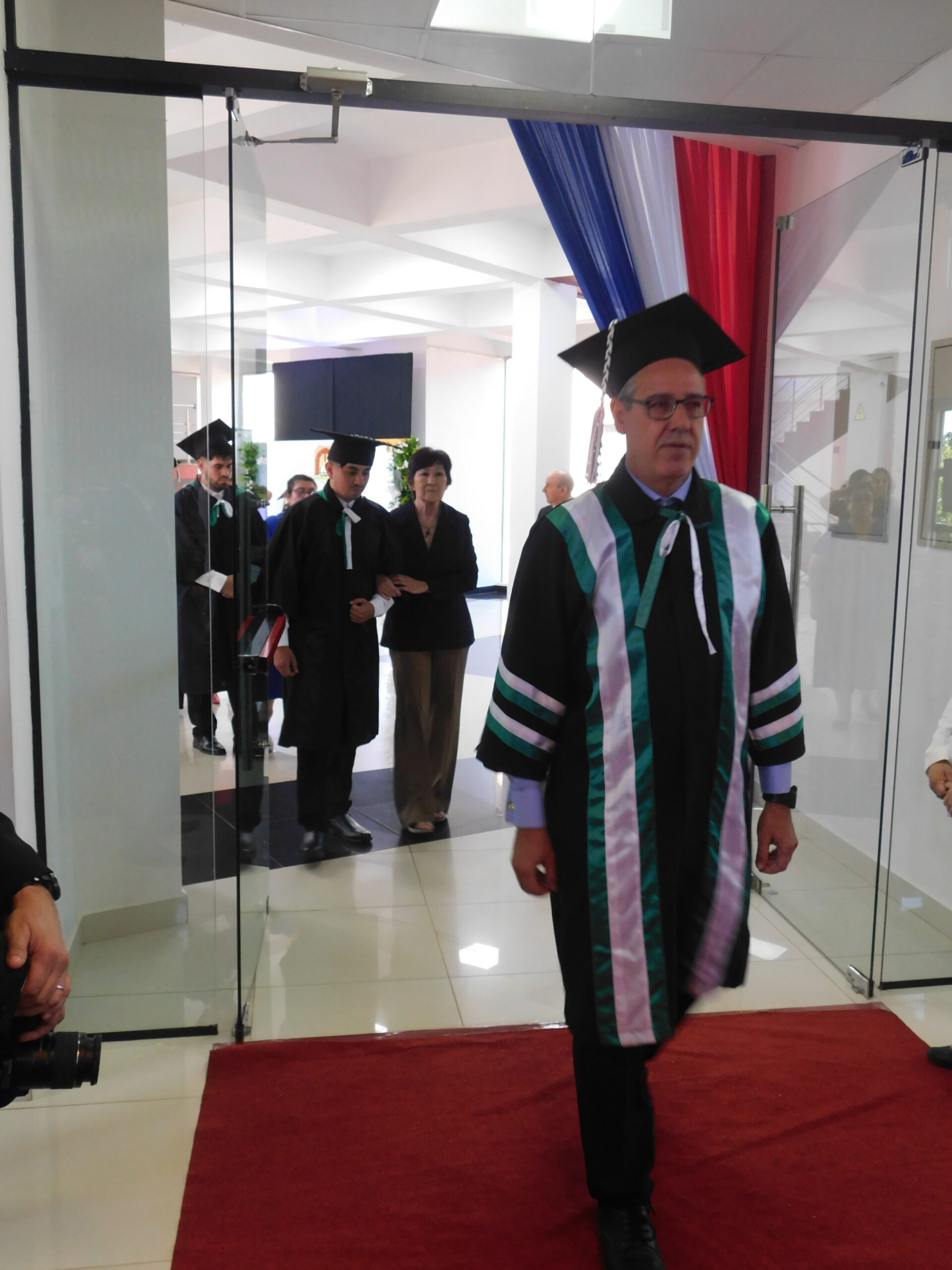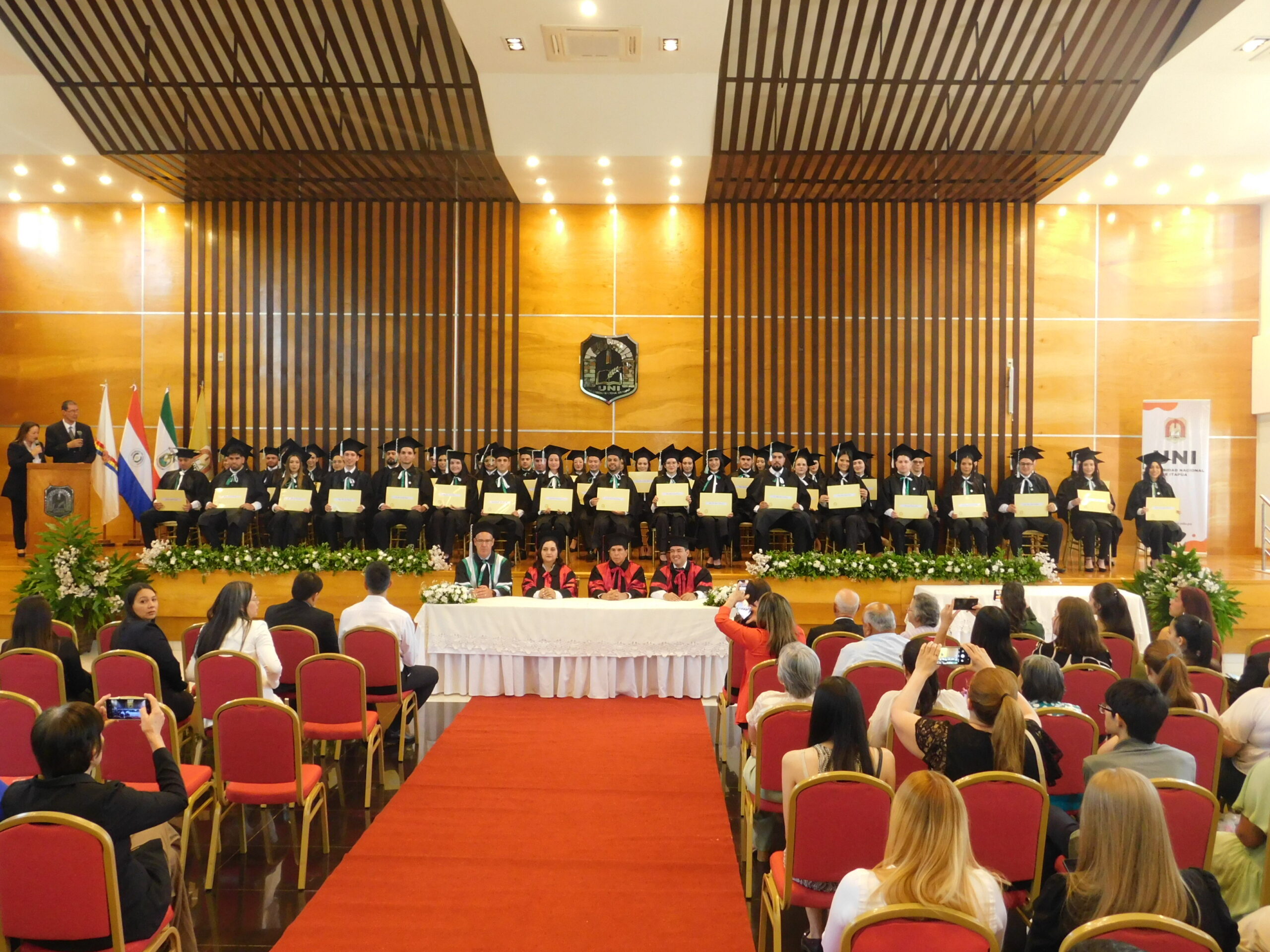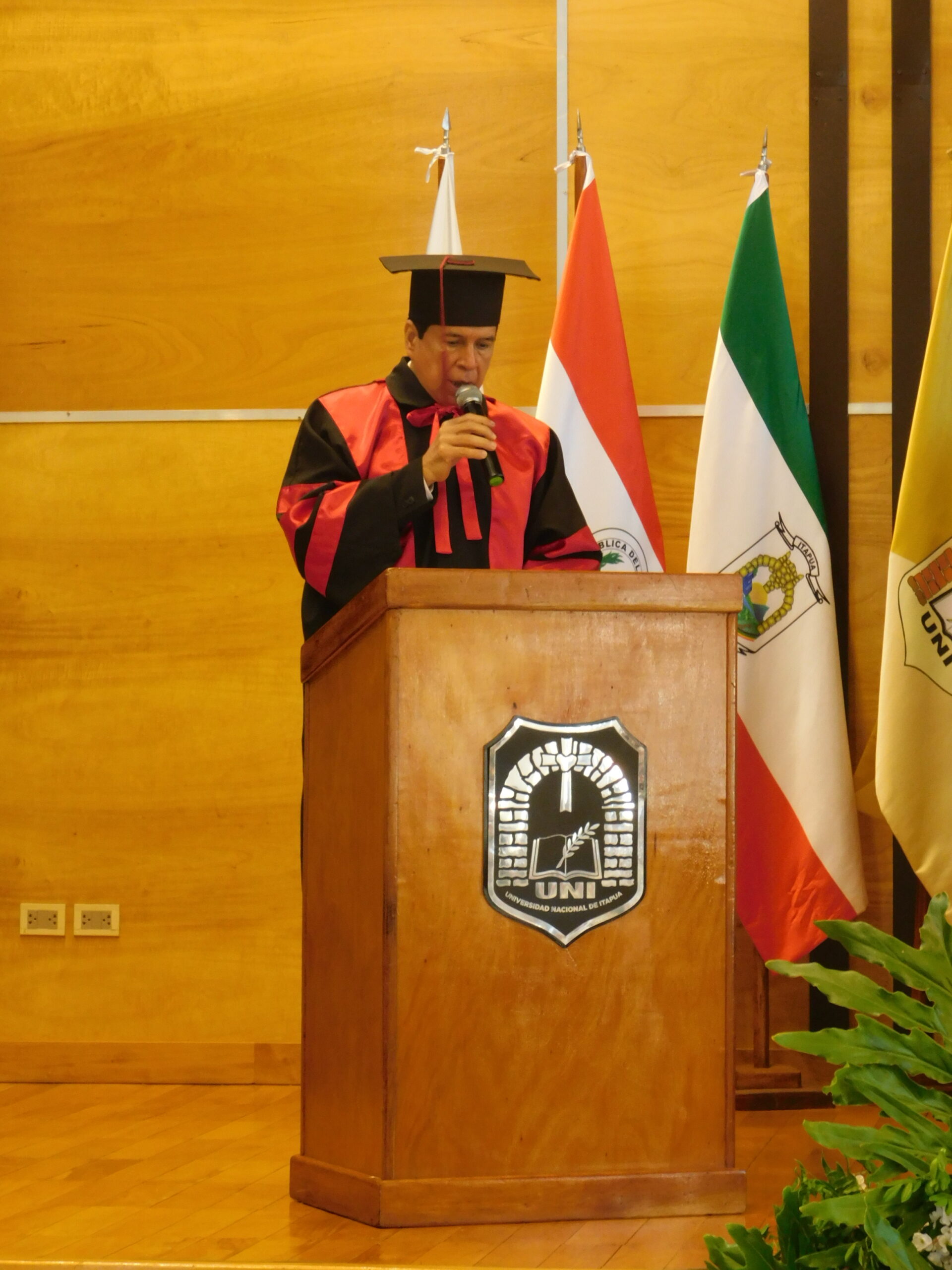 La ceremonia fue presidida por el Magnífico Rector de la UNI, Prof. Dr. Hermenegildo Cohene Velázquez, acompañado por la Vicerrectora, Prof. Dra. Nelly Monges de Insfrán. Asimismo, estuvieron presentes miembros del Consejo Superior Universitario, representantes de los Consejos Directivos de las distintas facultades, el Dr. Claudio Díaz de Vivar, Decano de la Facultad de Medicina, así como autoridades académicas y administrativas de la institución.