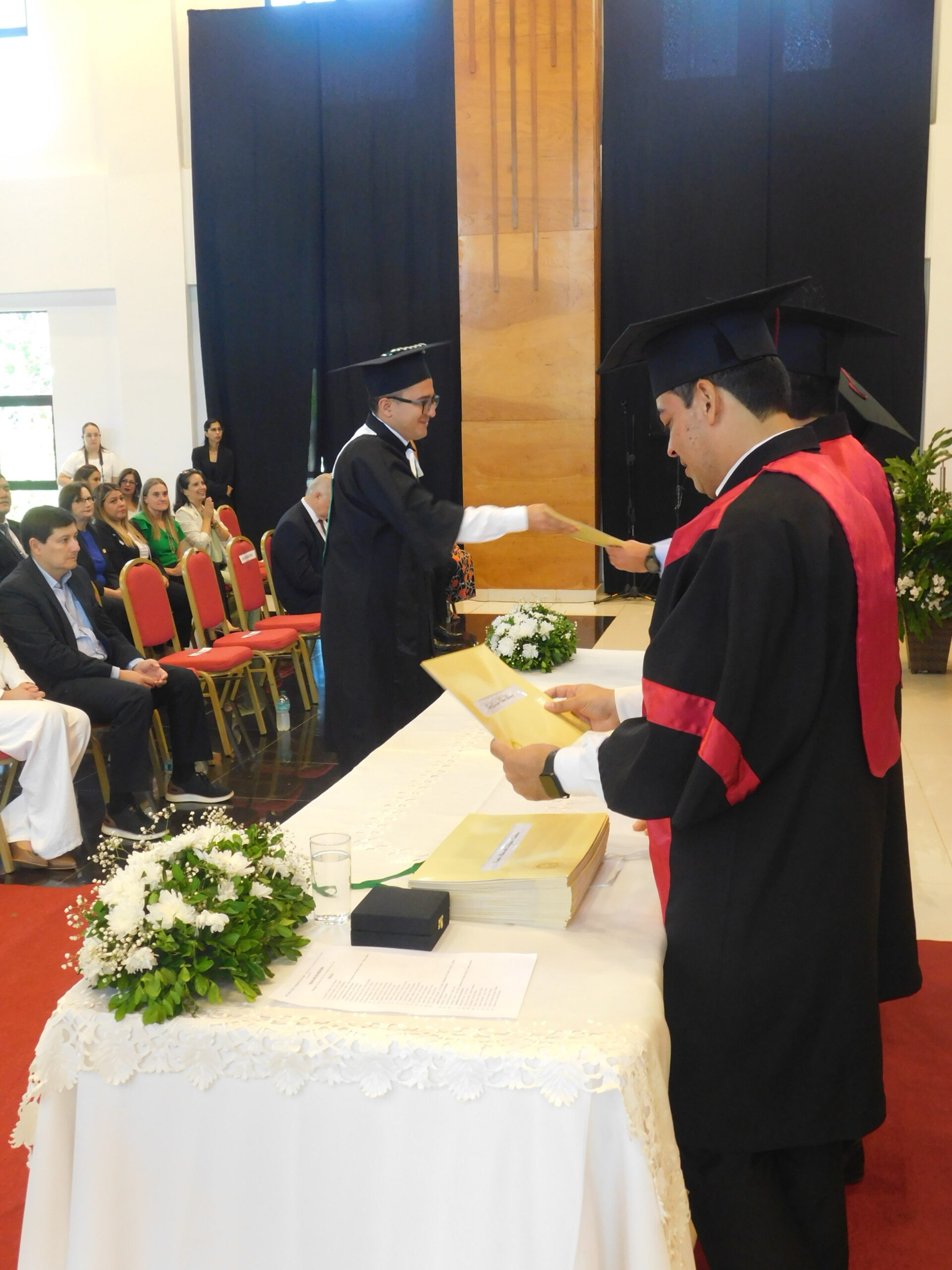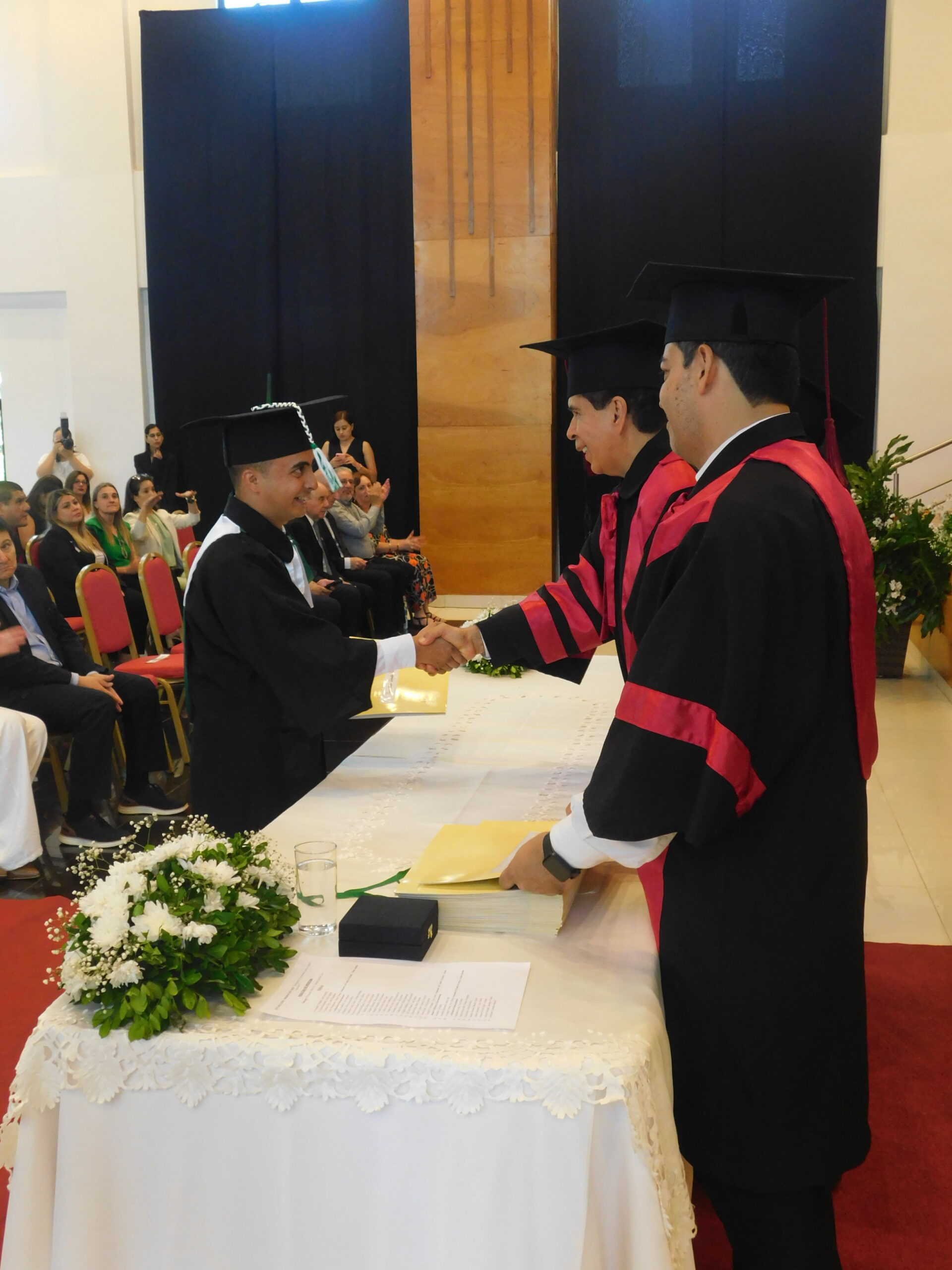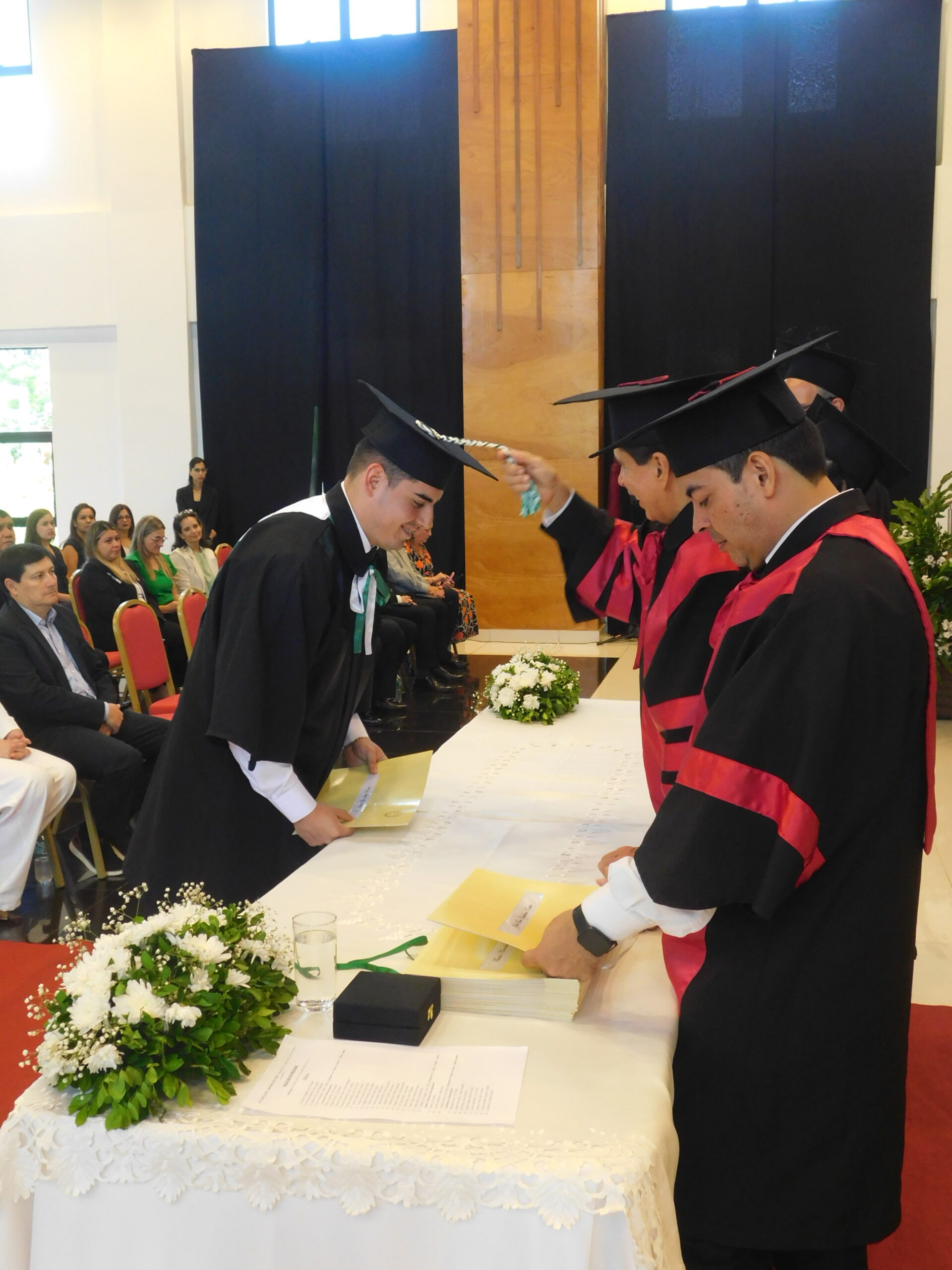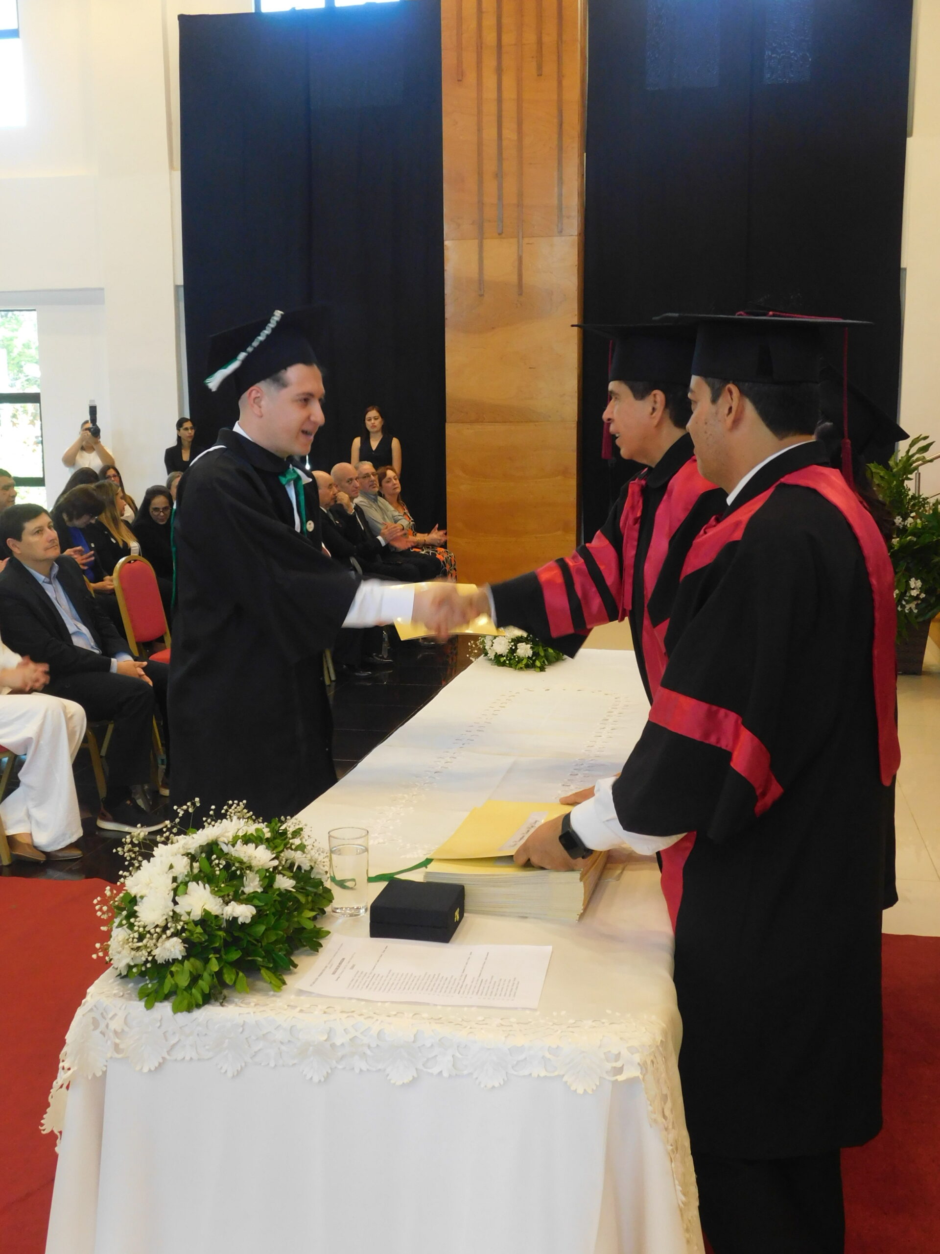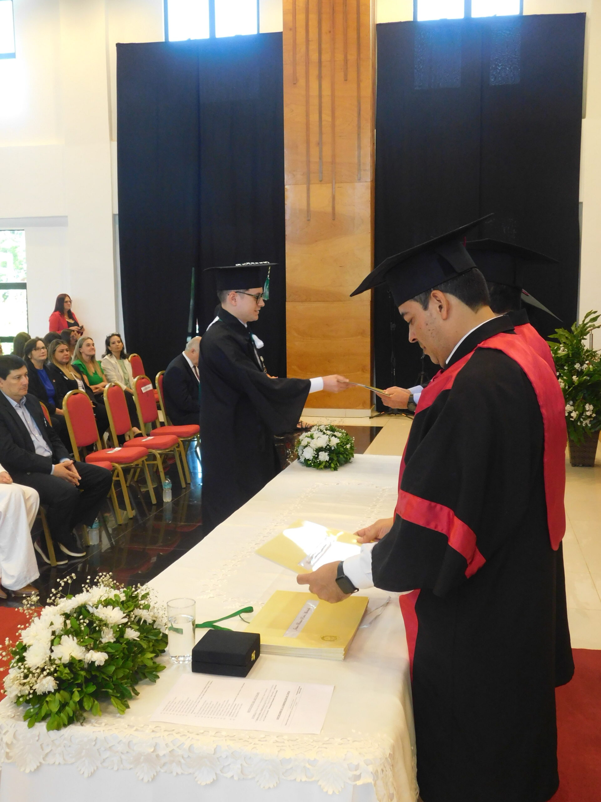 La ceremonia fue presidida por el Magnífico Rector de la UNI, Prof. Dr. Hermenegildo Cohene Velázquez, acompañado por la Vicerrectora, Prof. Dra. Nelly Monges de Insfrán. Asimismo, estuvieron presentes miembros del Consejo Superior Universitario, representantes de los Consejos Directivos de las distintas facultades, el Dr. Claudio Díaz de Vivar, Decano de la Facultad de Medicina, así como autoridades académicas y administrativas de la institución.