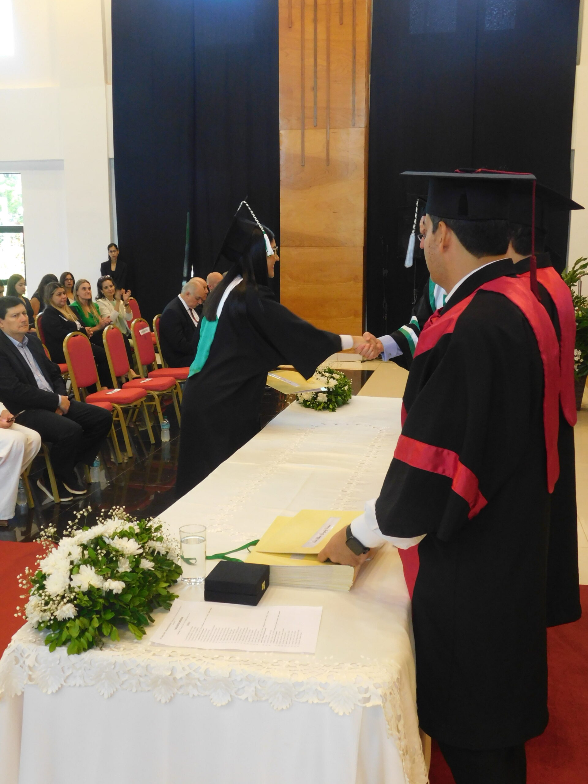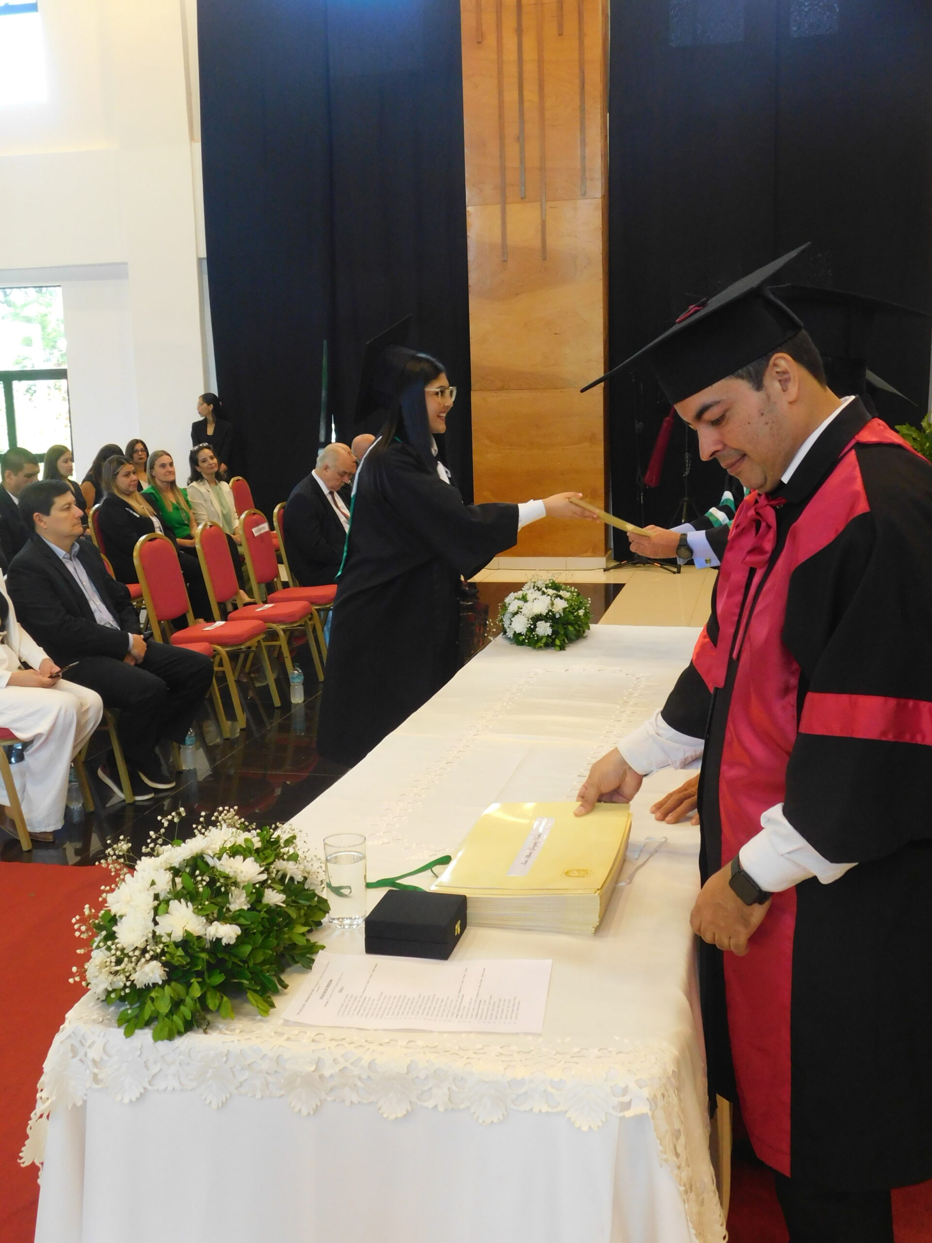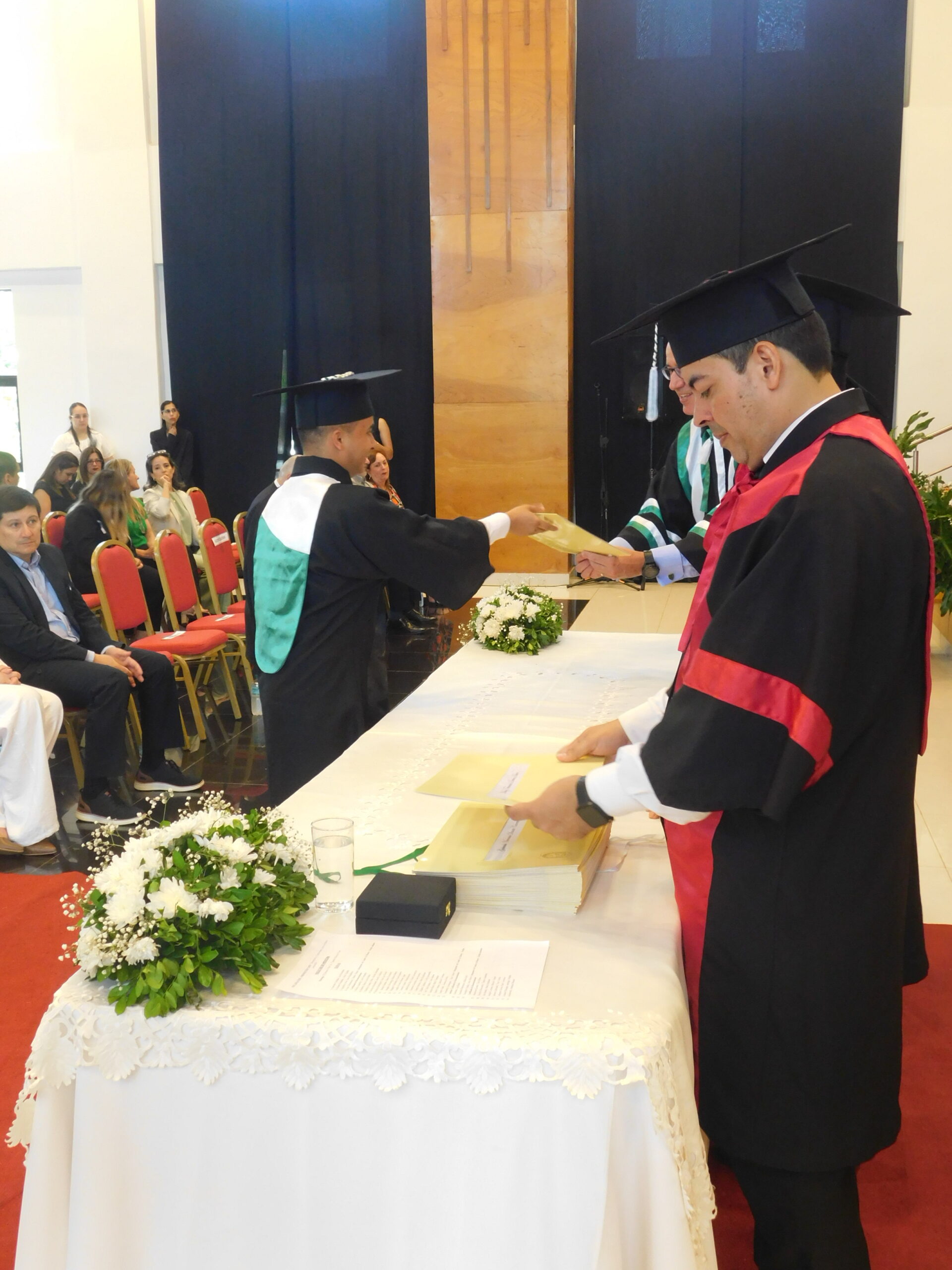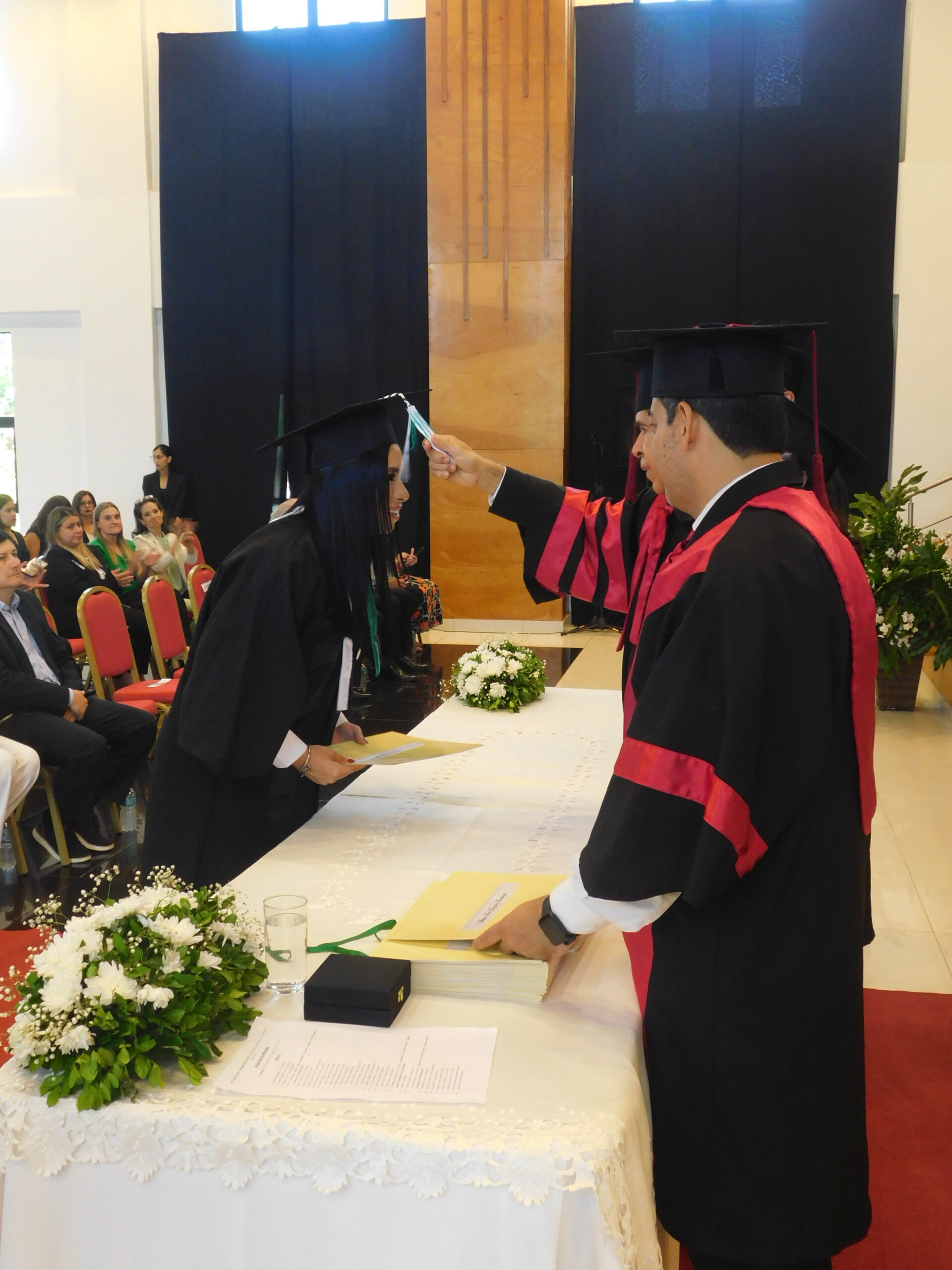 La ceremonia fue presidida por el Magnífico Rector de la UNI, Prof. Dr. Hermenegildo Cohene Velázquez, acompañado por la Vicerrectora, Prof. Dra. Nelly Monges de Insfrán. Asimismo, estuvieron presentes miembros del Consejo Superior Universitario, representantes de los Consejos Directivos de las distintas facultades, el Dr. Claudio Díaz de Vivar, Decano de la Facultad de Medicina, así como autoridades académicas y administrativas de la institución.