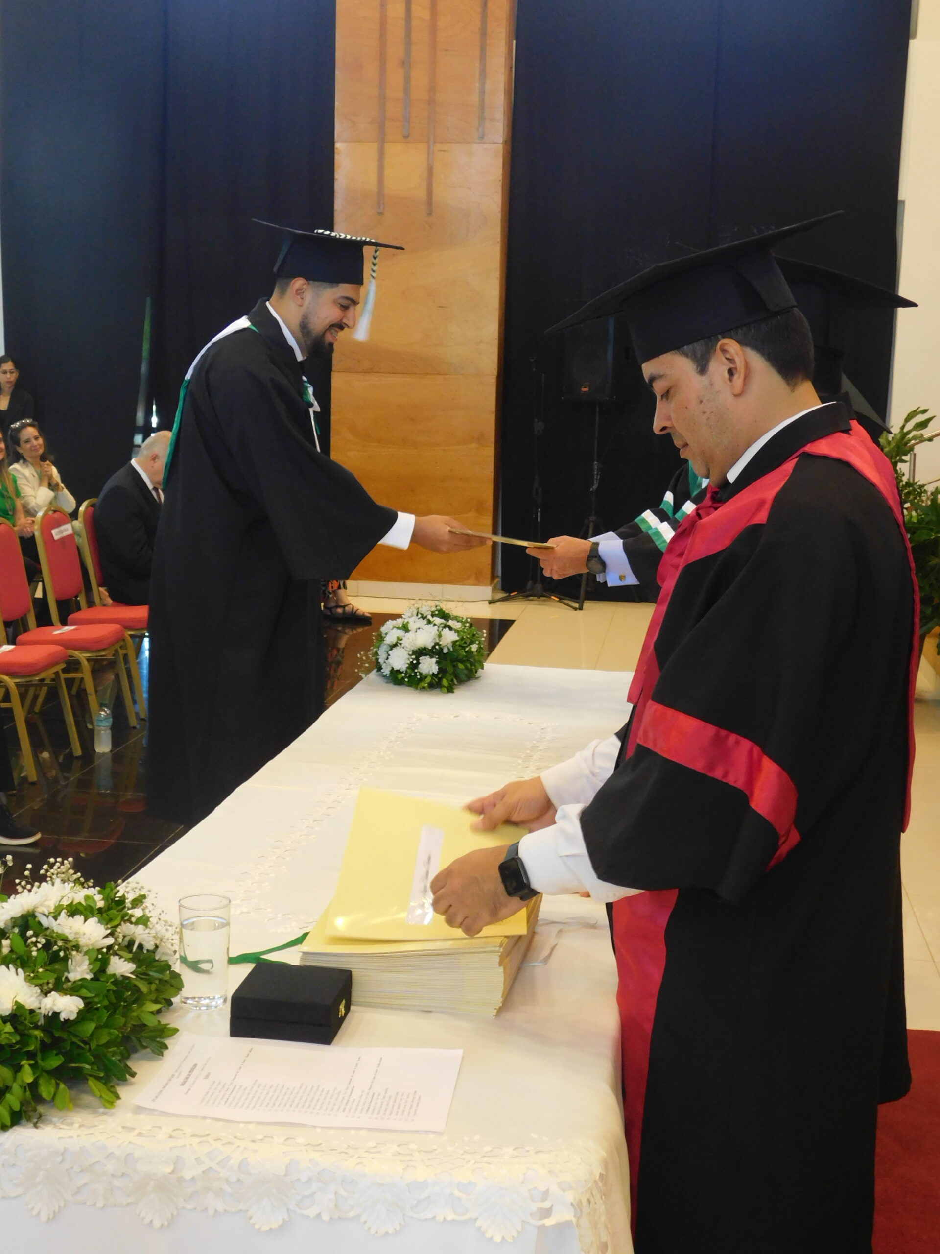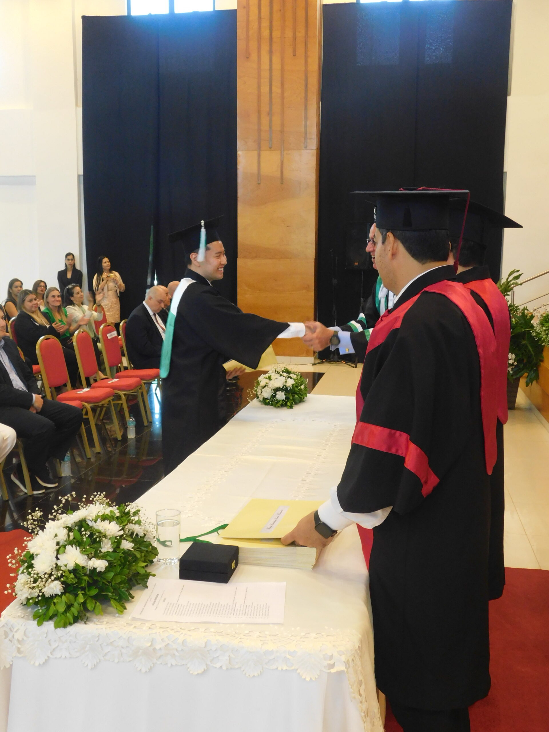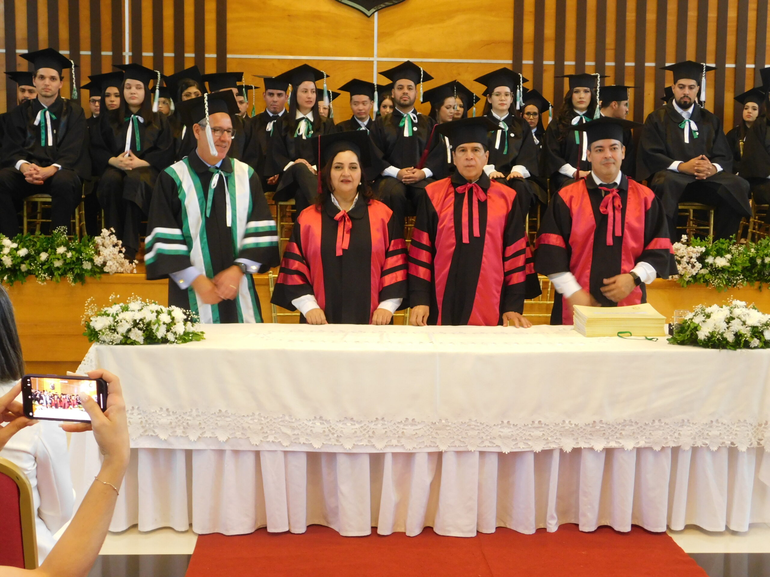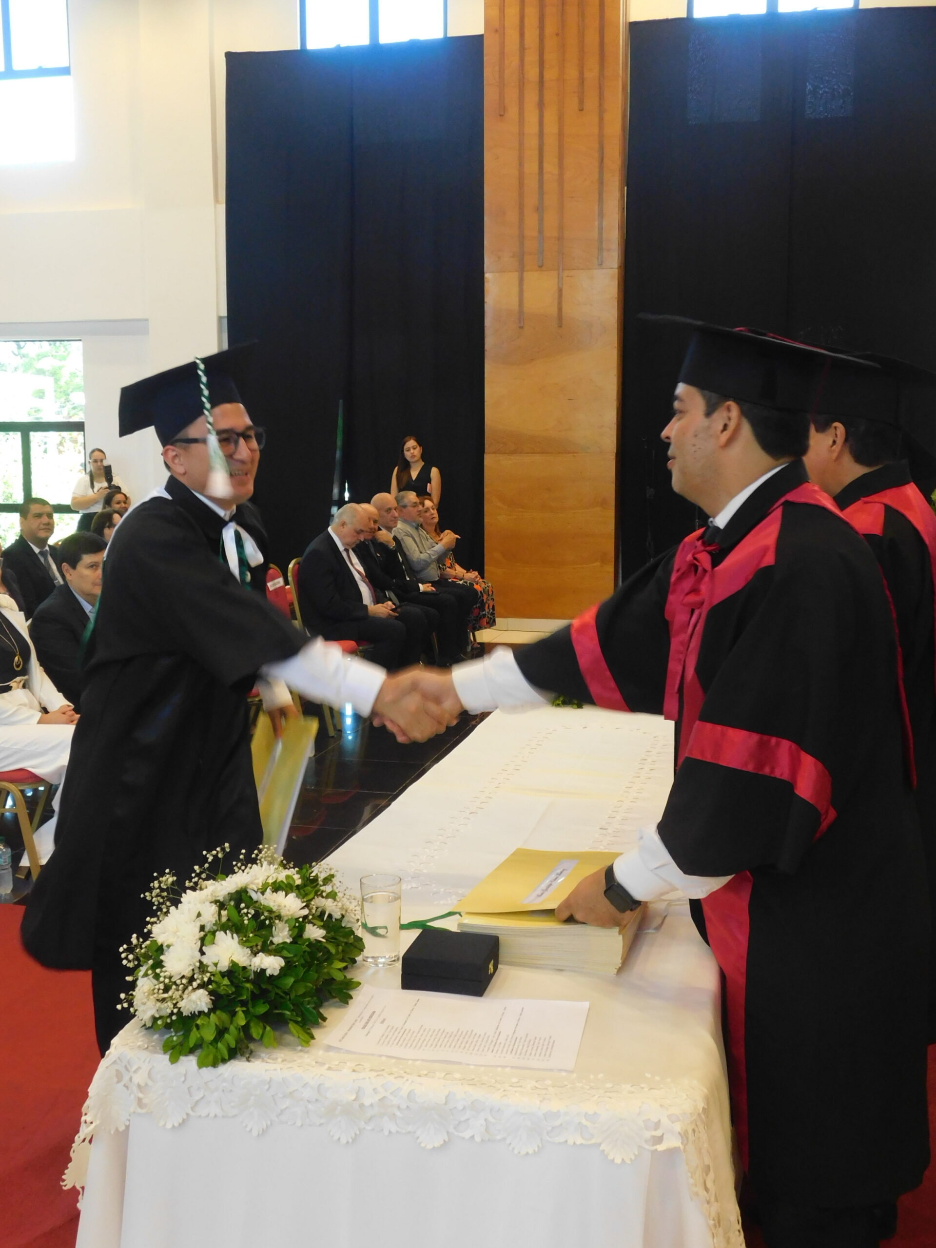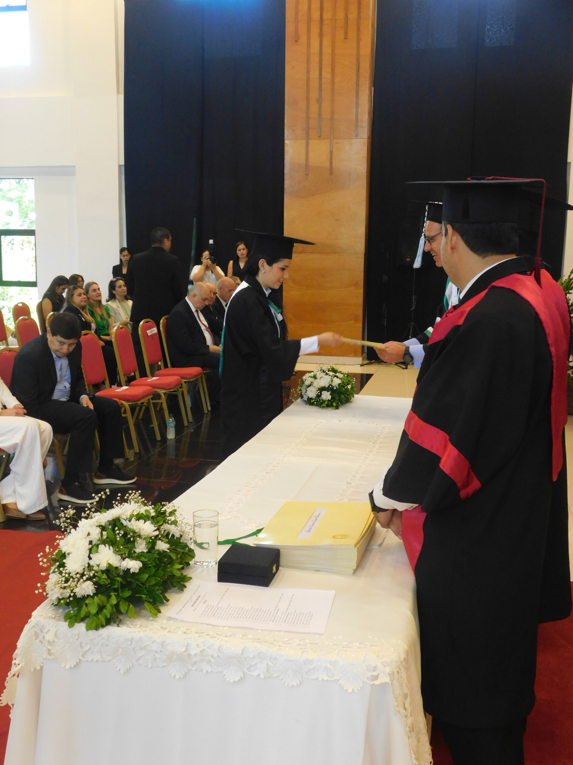 La ceremonia fue presidida por el Magnífico Rector de la UNI, Prof. Dr. Hermenegildo Cohene Velázquez, acompañado por la Vicerrectora, Prof. Dra. Nelly Monges de Insfrán. Asimismo, estuvieron presentes miembros del Consejo Superior Universitario, representantes de los Consejos Directivos de las distintas facultades, el Dr. Claudio Díaz de Vivar, Decano de la Facultad de Medicina, así como autoridades académicas y administrativas de la institución.