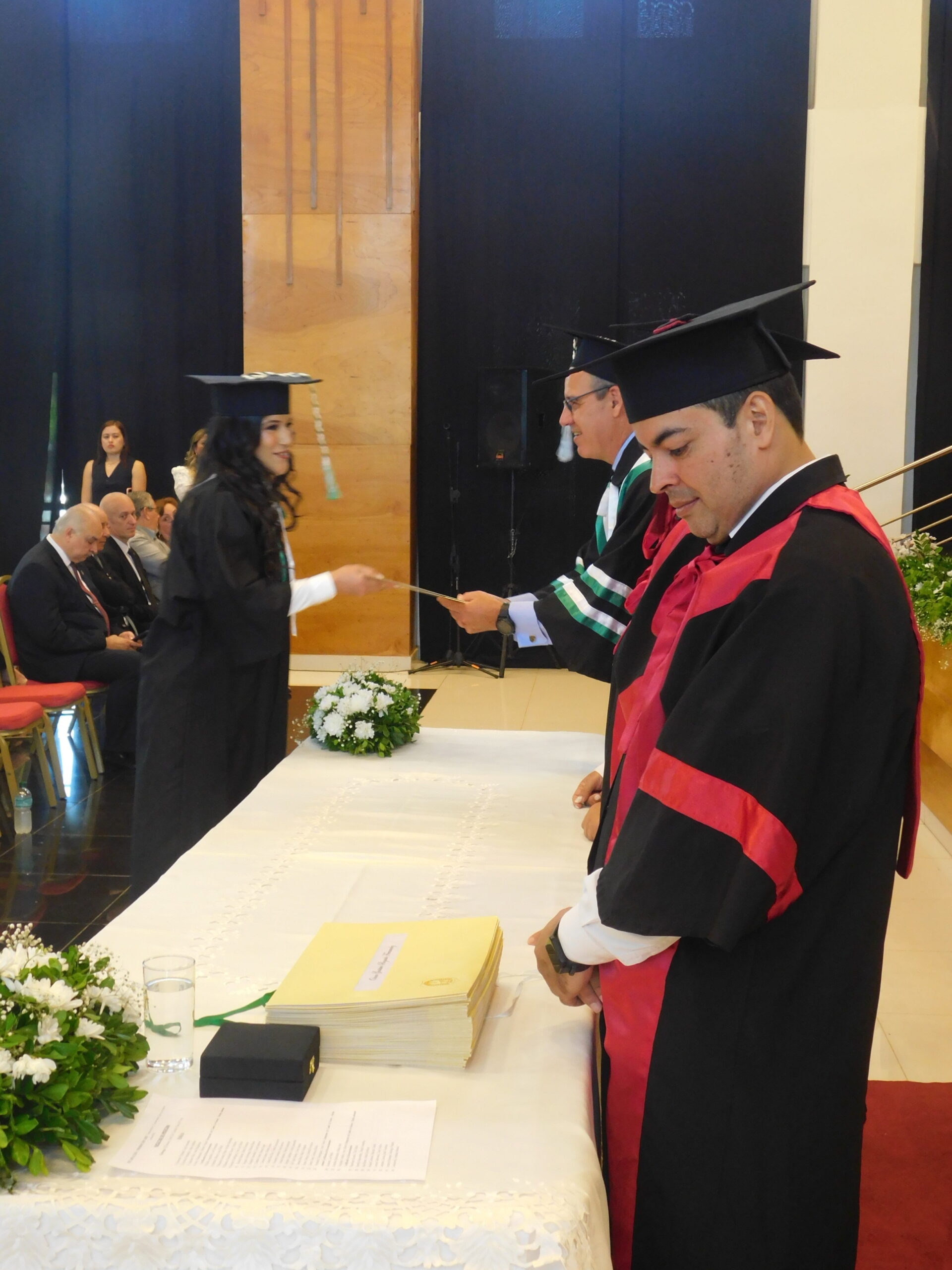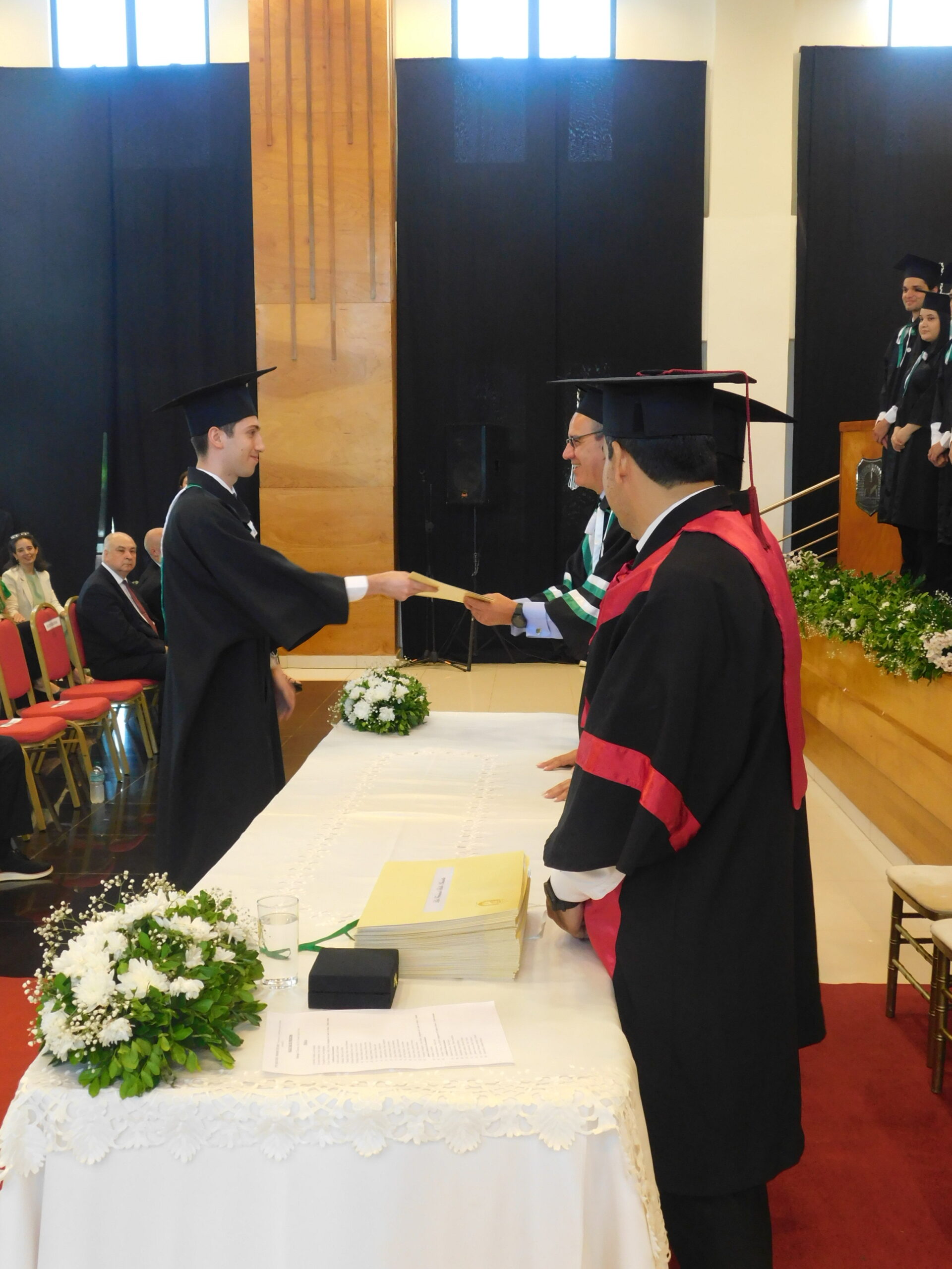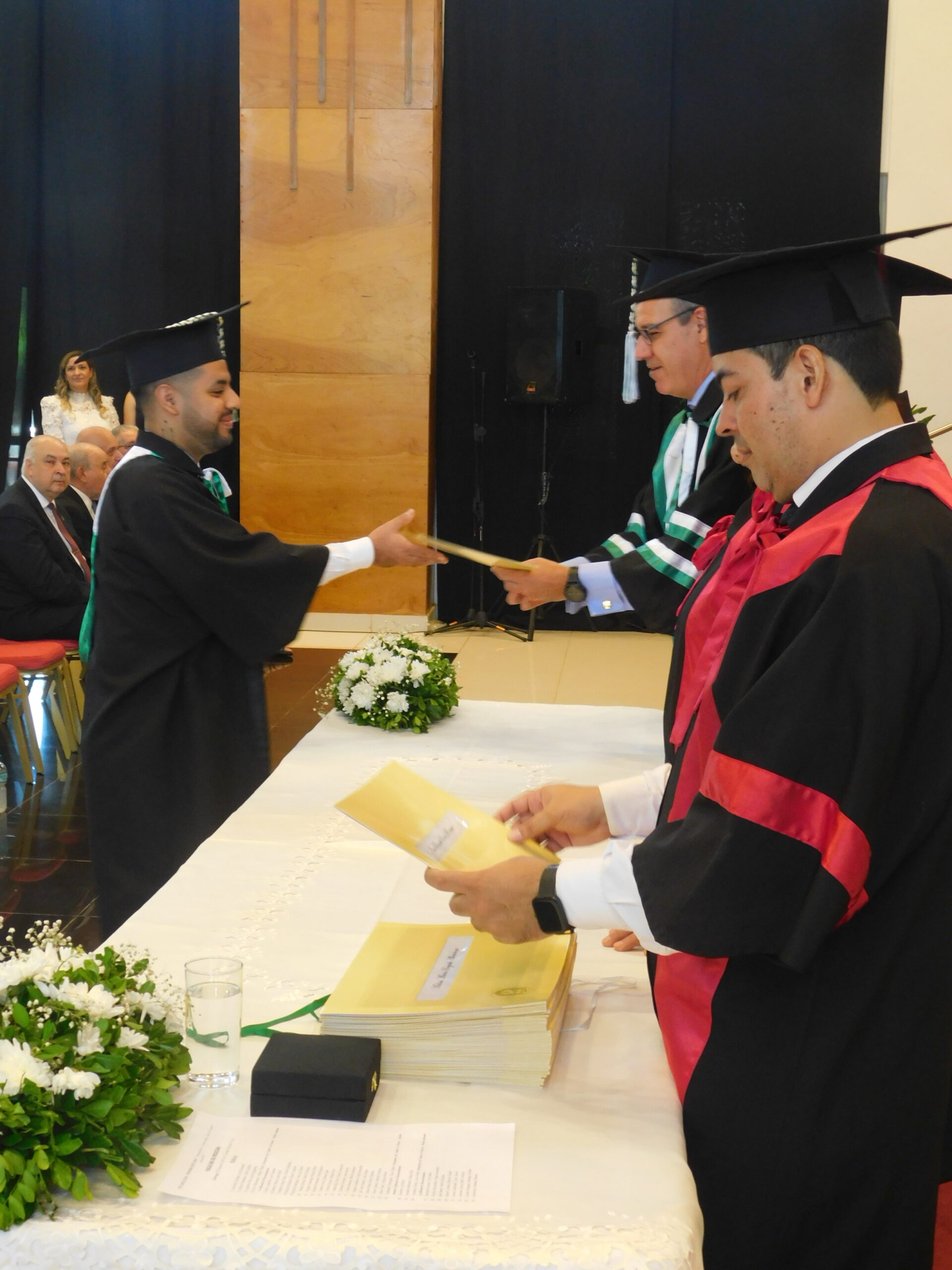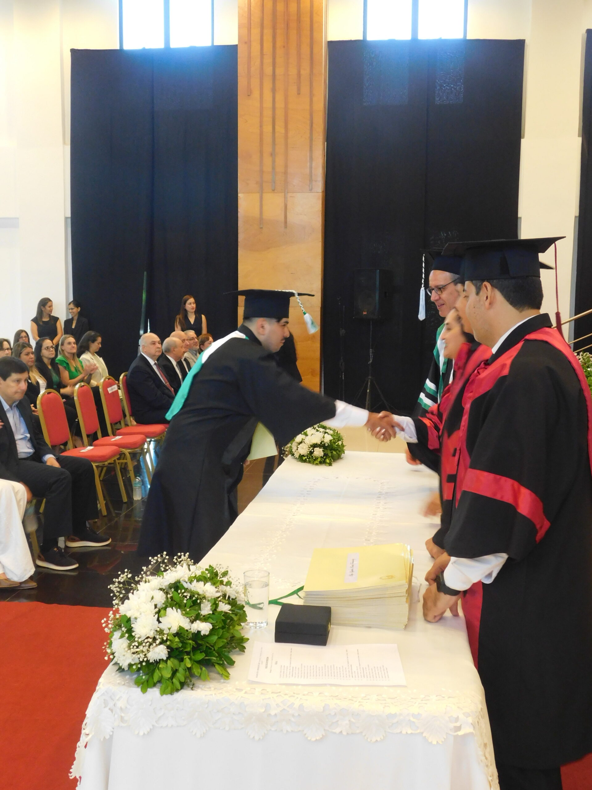La ceremonia fue presidida por el Magnífico Rector de la UNI, Prof. Dr. Hermenegildo Cohene Velázquez, acompañado por la Vicerrectora, Prof. Dra. Nelly Monges de Insfrán. Asimismo, estuvieron presentes miembros del Consejo Superior Universitario, representantes de los Consejos Directivos de las distintas facultades, el Dr. Claudio Díaz de Vivar, Decano de la Facultad de Medicina, así como autoridades académicas y administrativas de la institución.