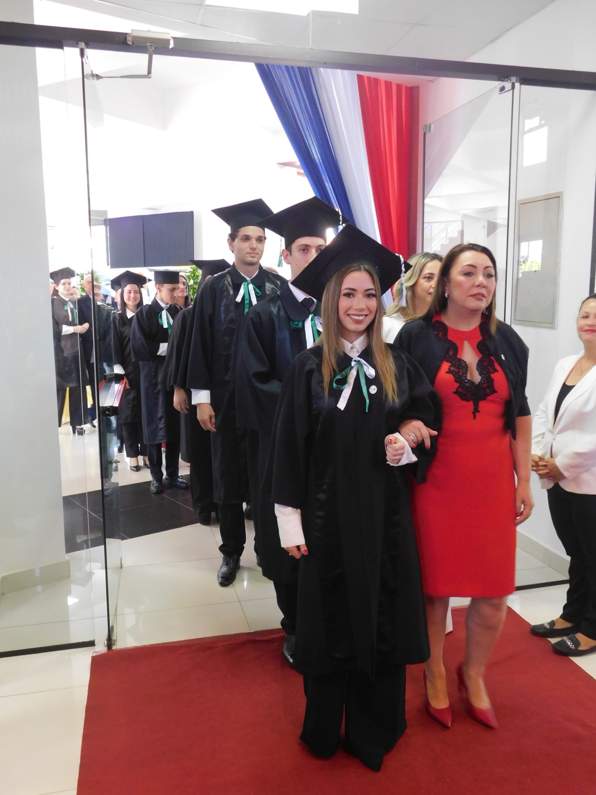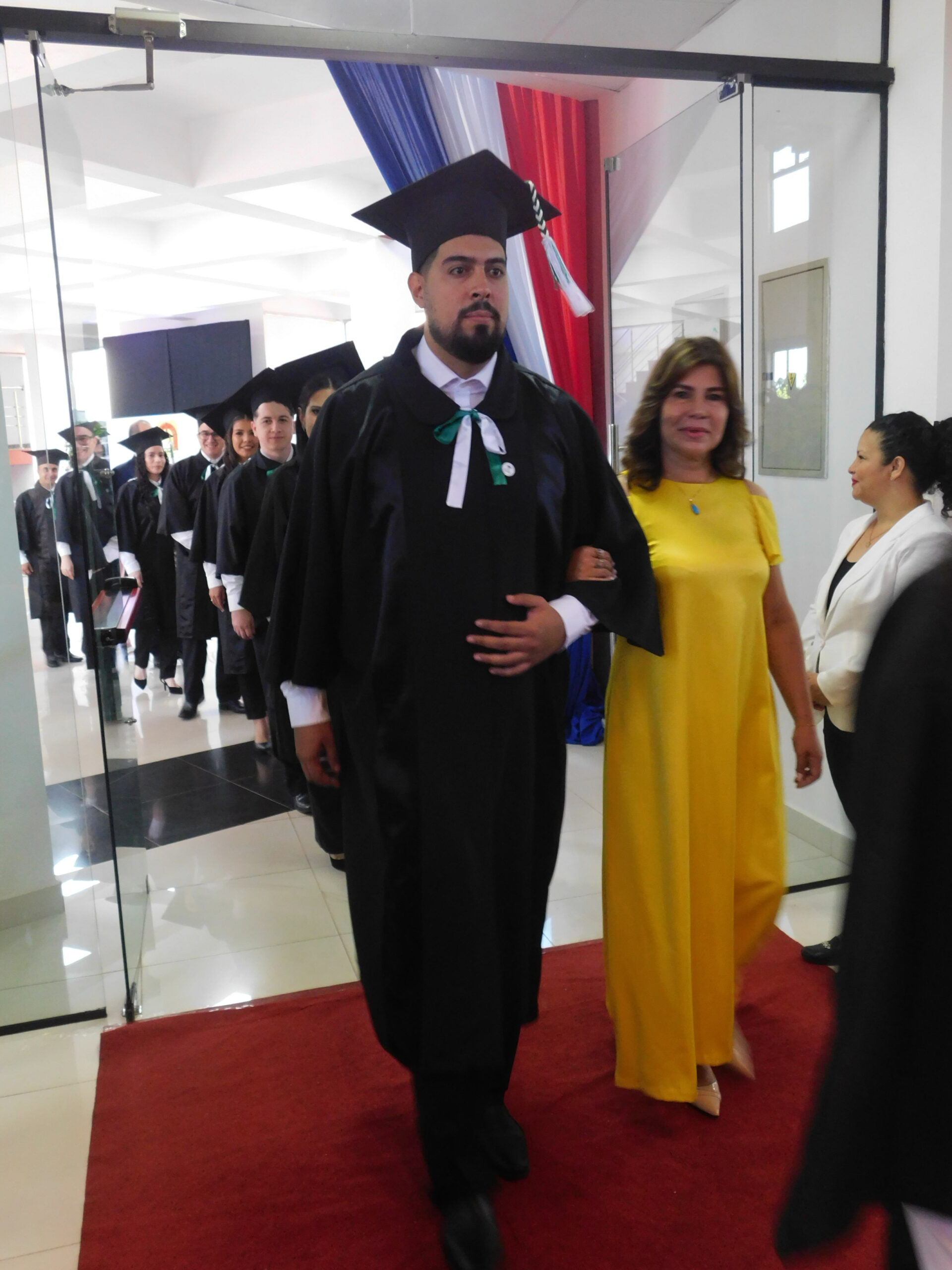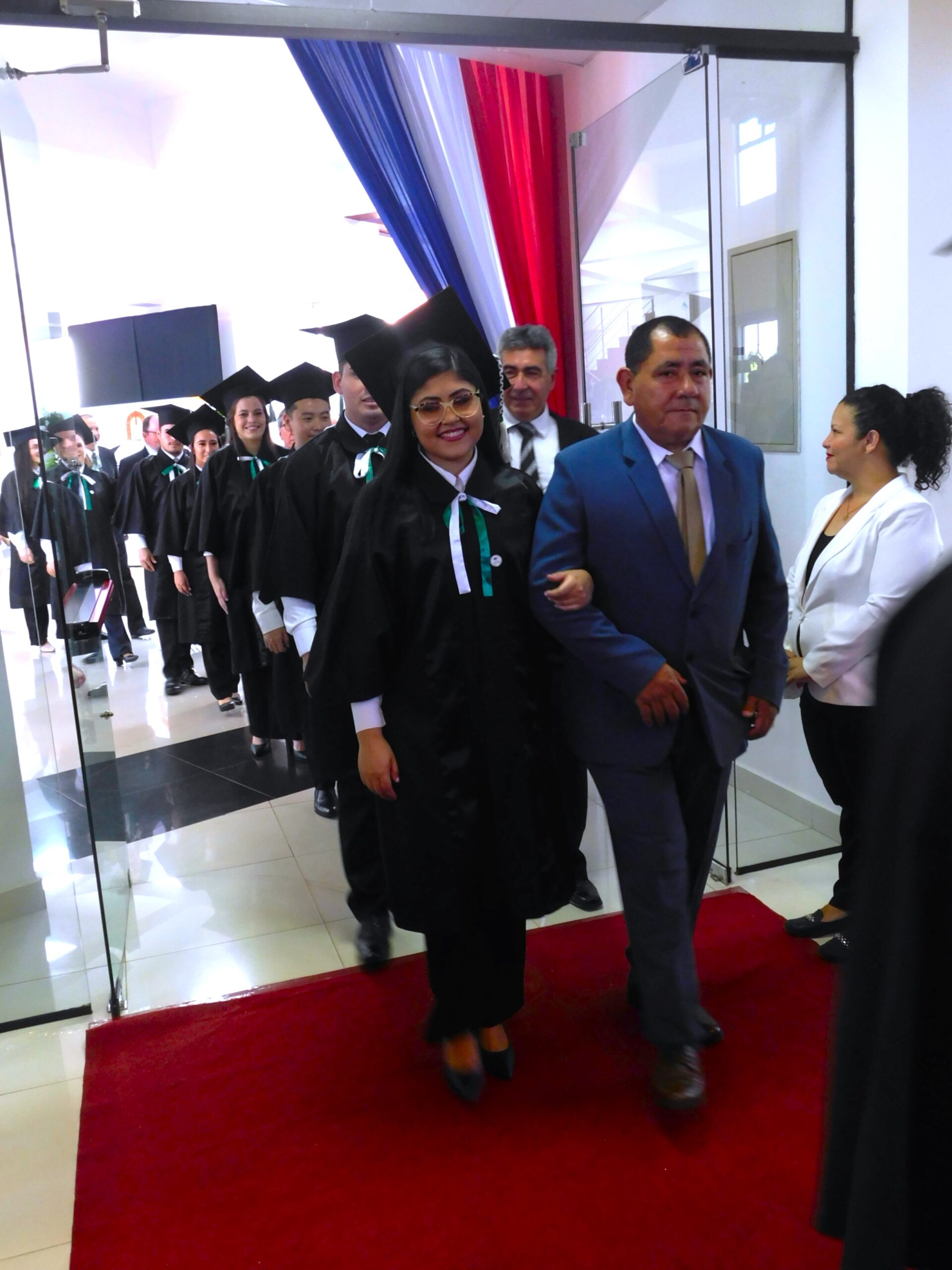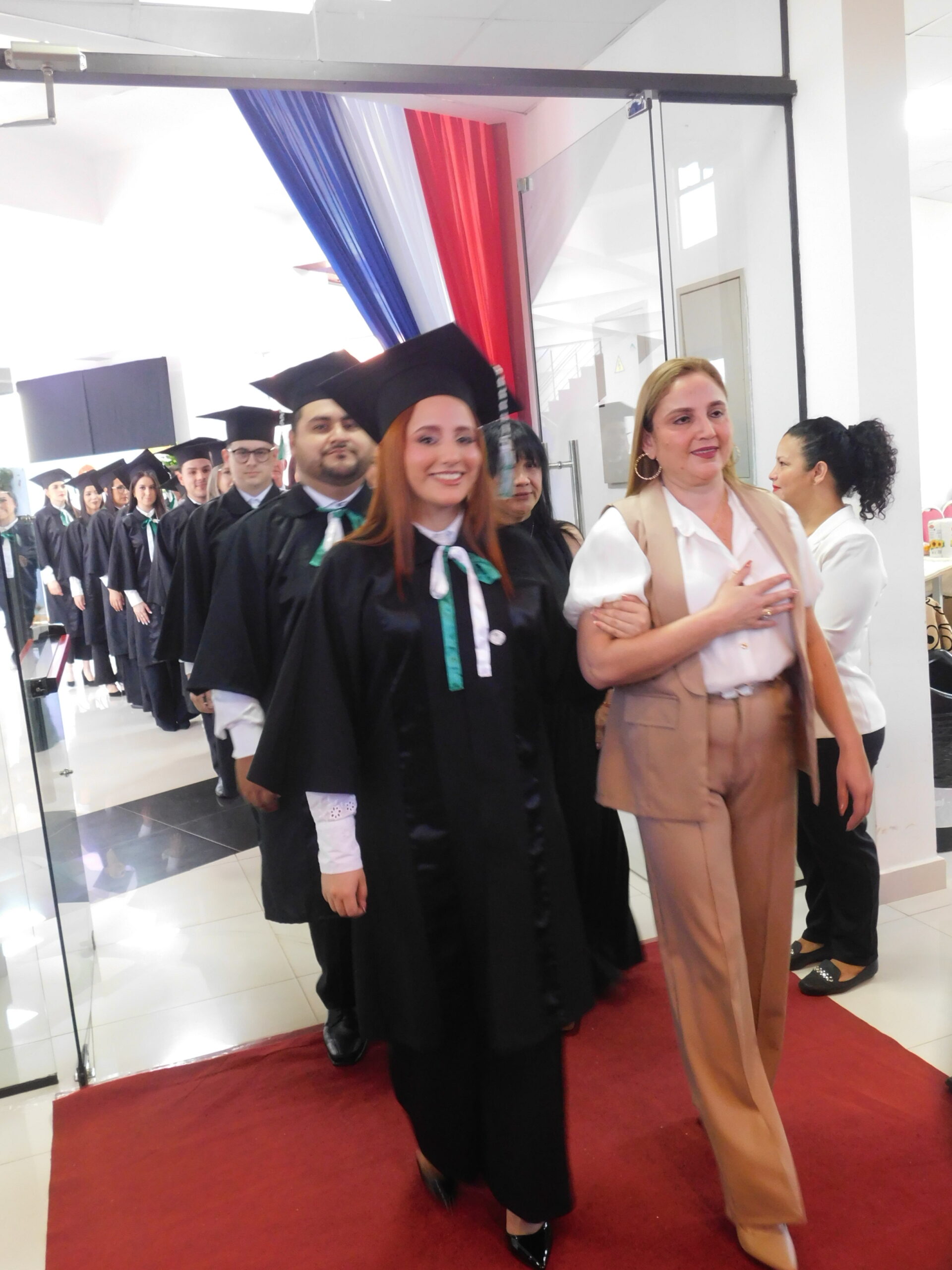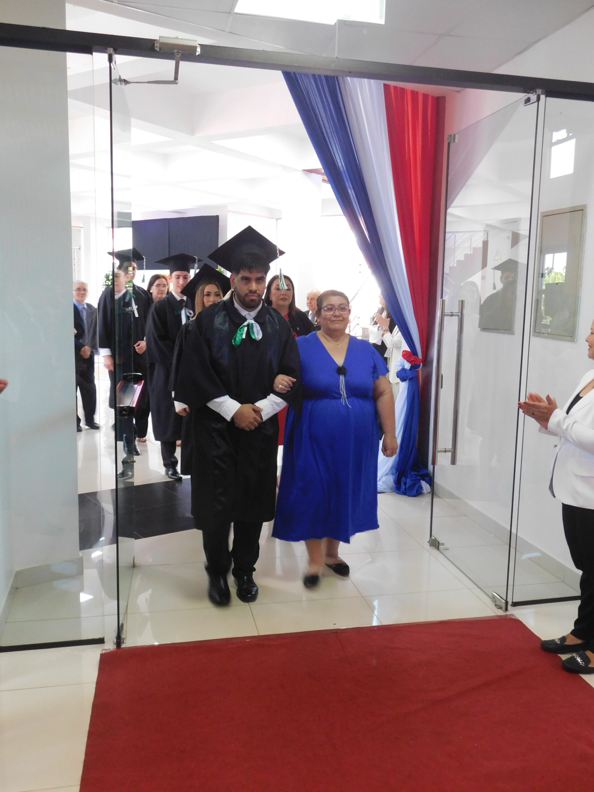 A continuación, la ceremonia inició con la Marcha Procesional de ingreso de los graduados junto a sus padrinos. Seguidamente, se entonó el Himno Nacional, marcando el inicio formal del acto académico.