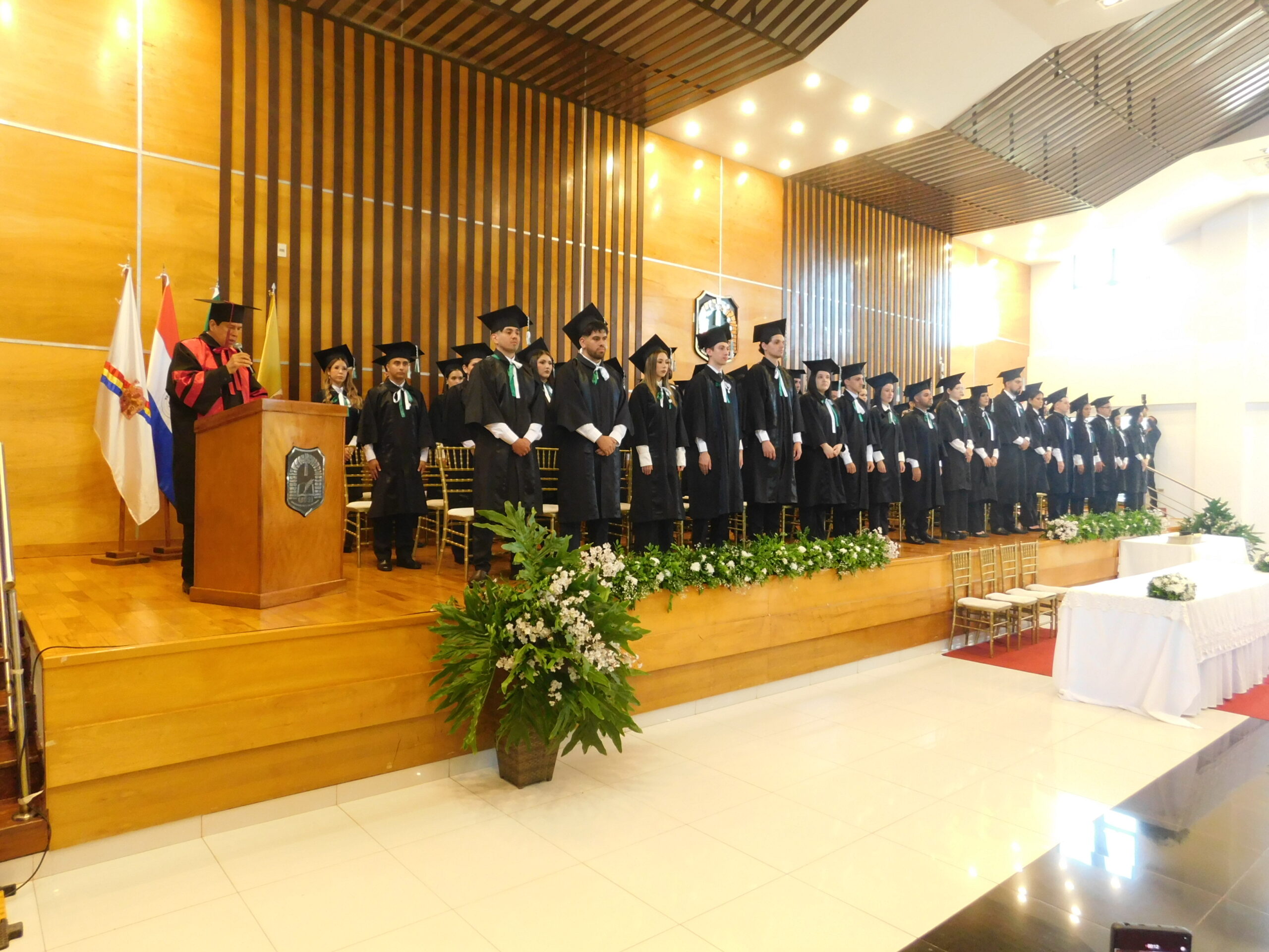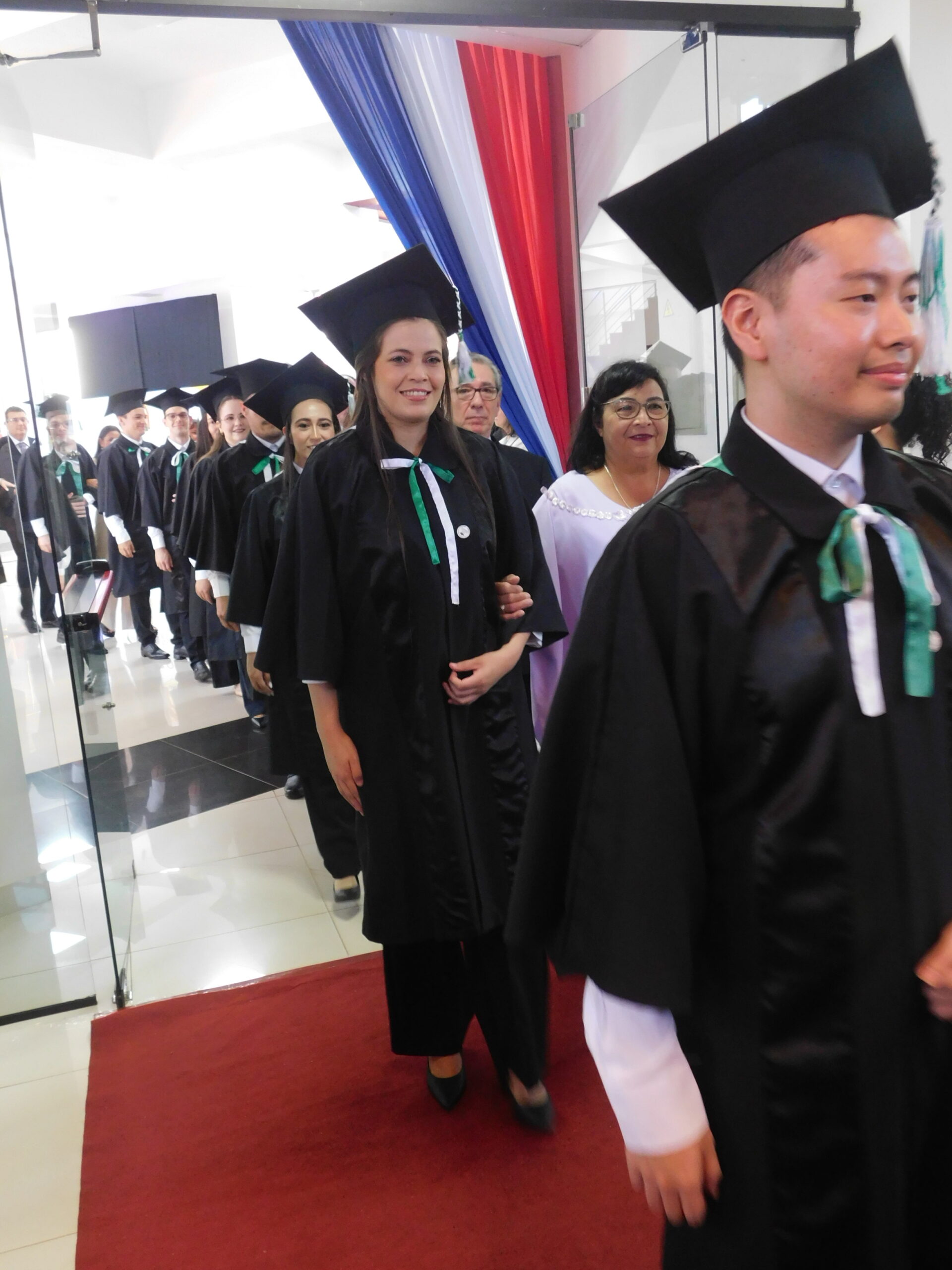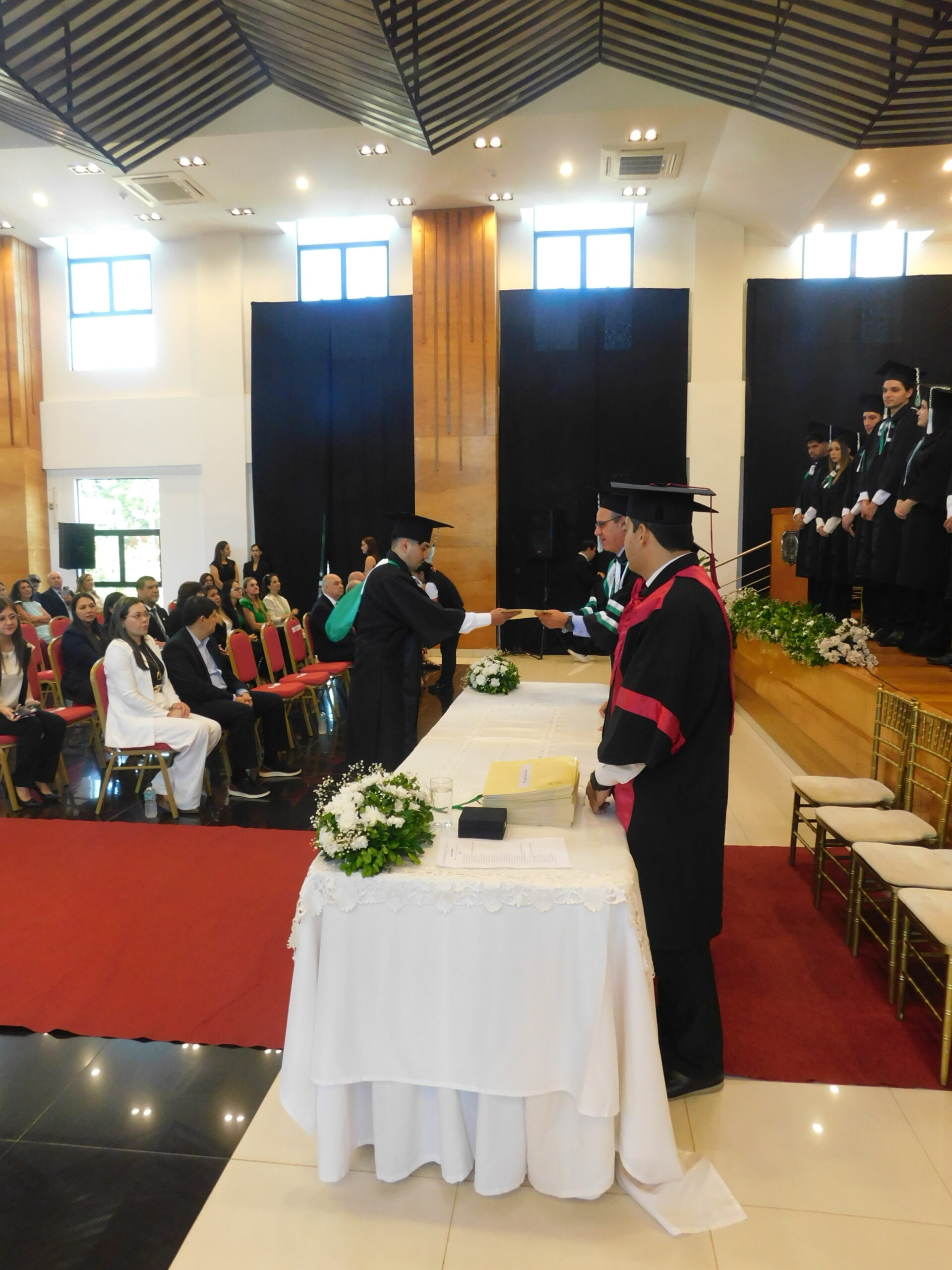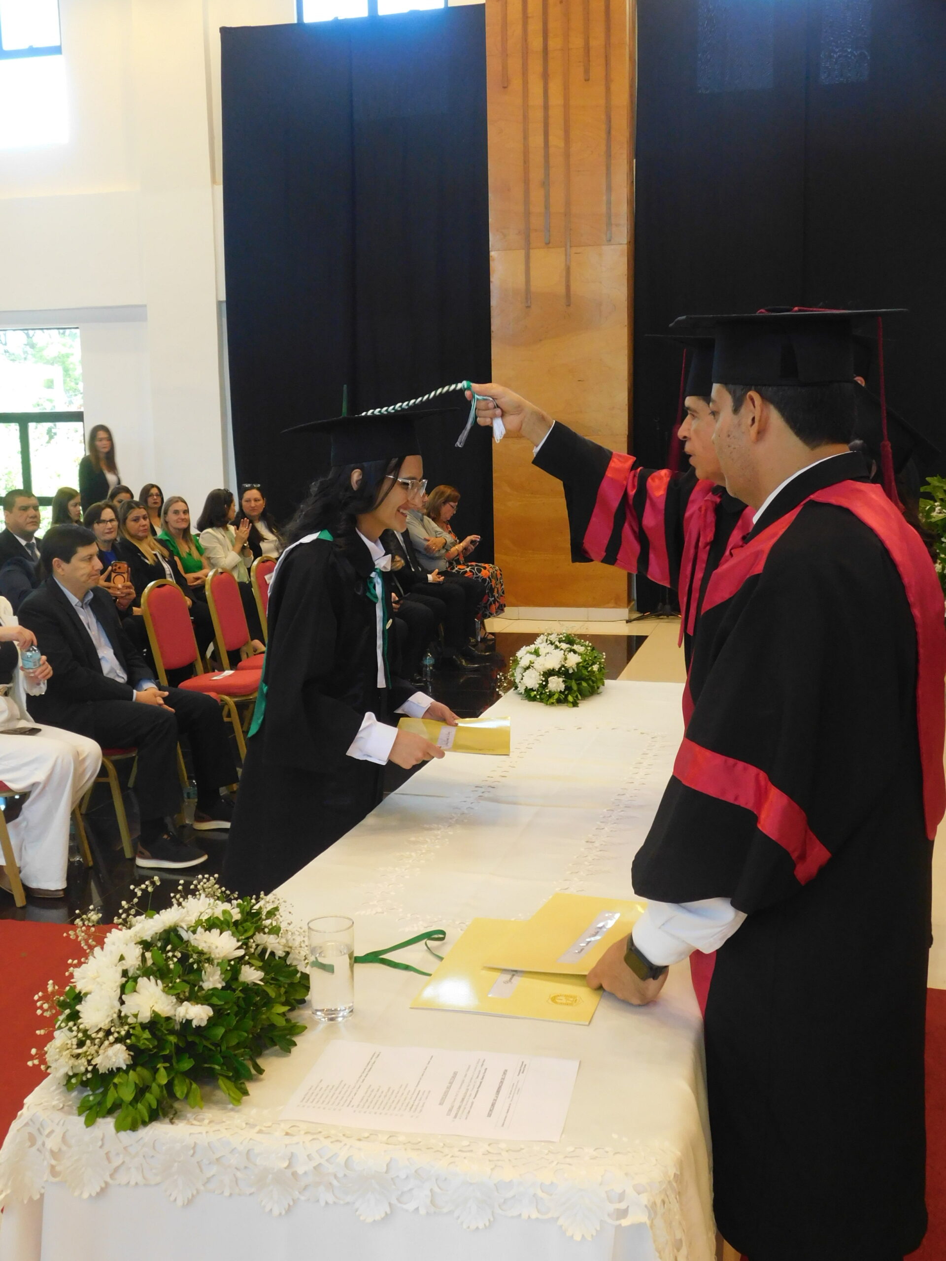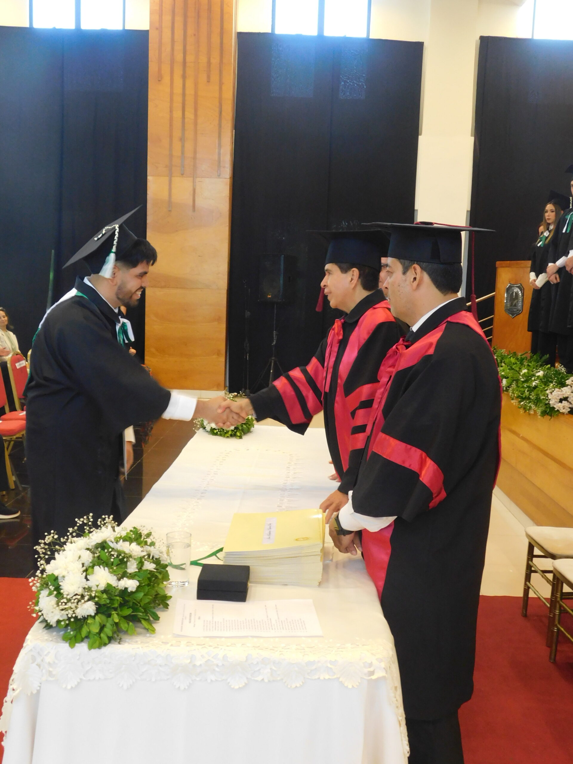 A continuación, la ceremonia inició con la Marcha Procesional de ingreso de los graduados junto a sus padrinos. Seguidamente, se entonó el Himno Nacional, marcando el inicio formal del acto académico.