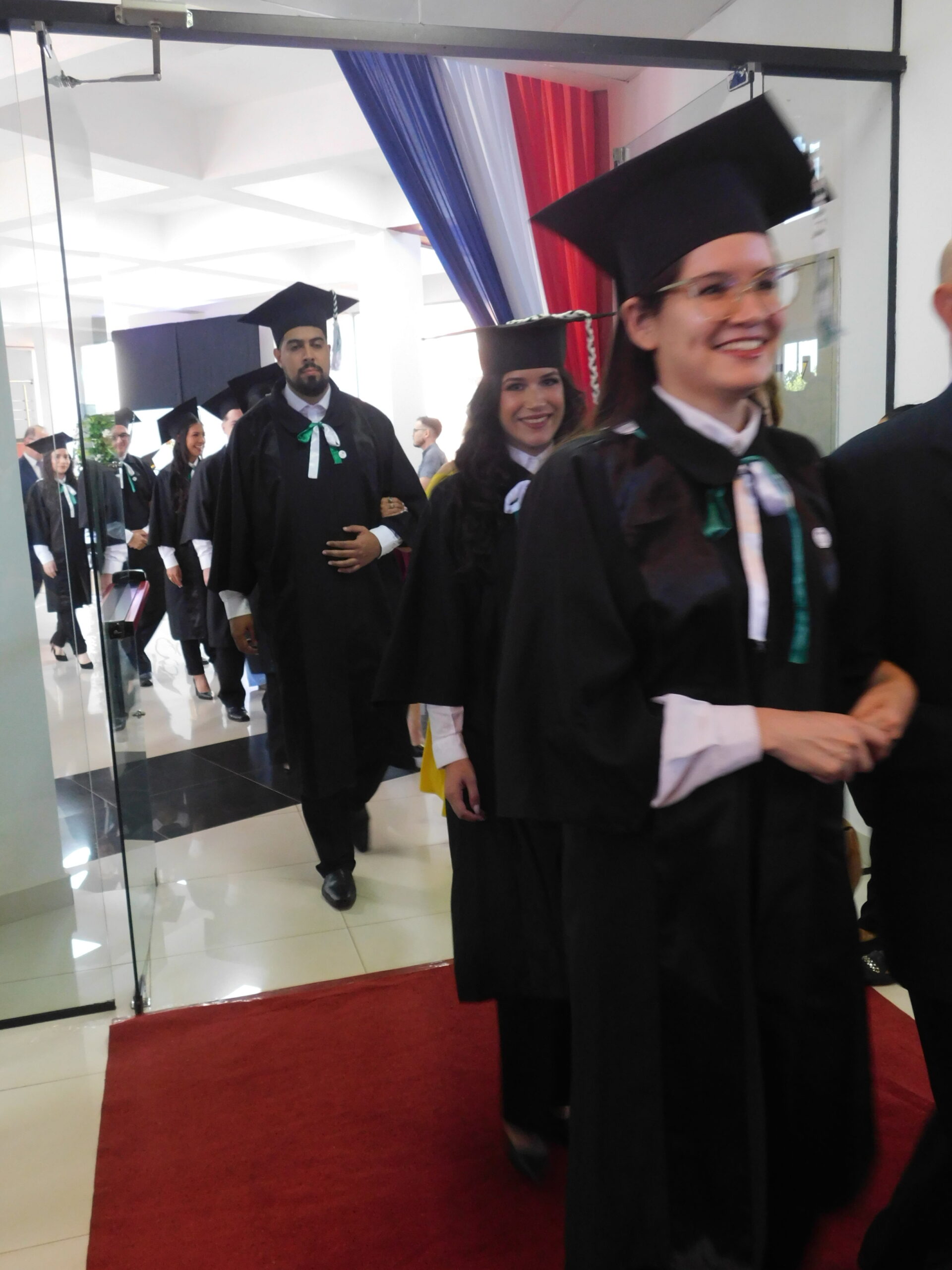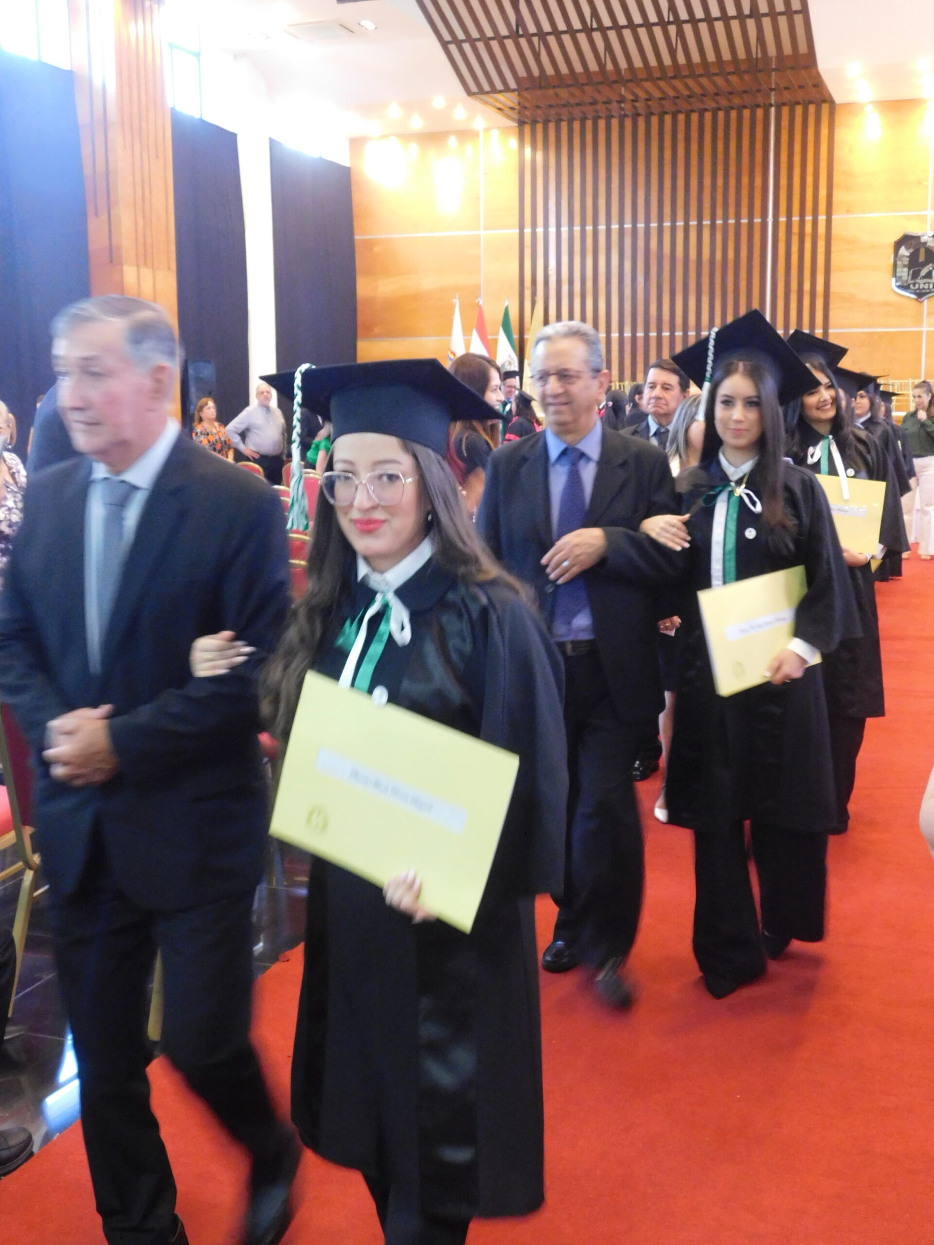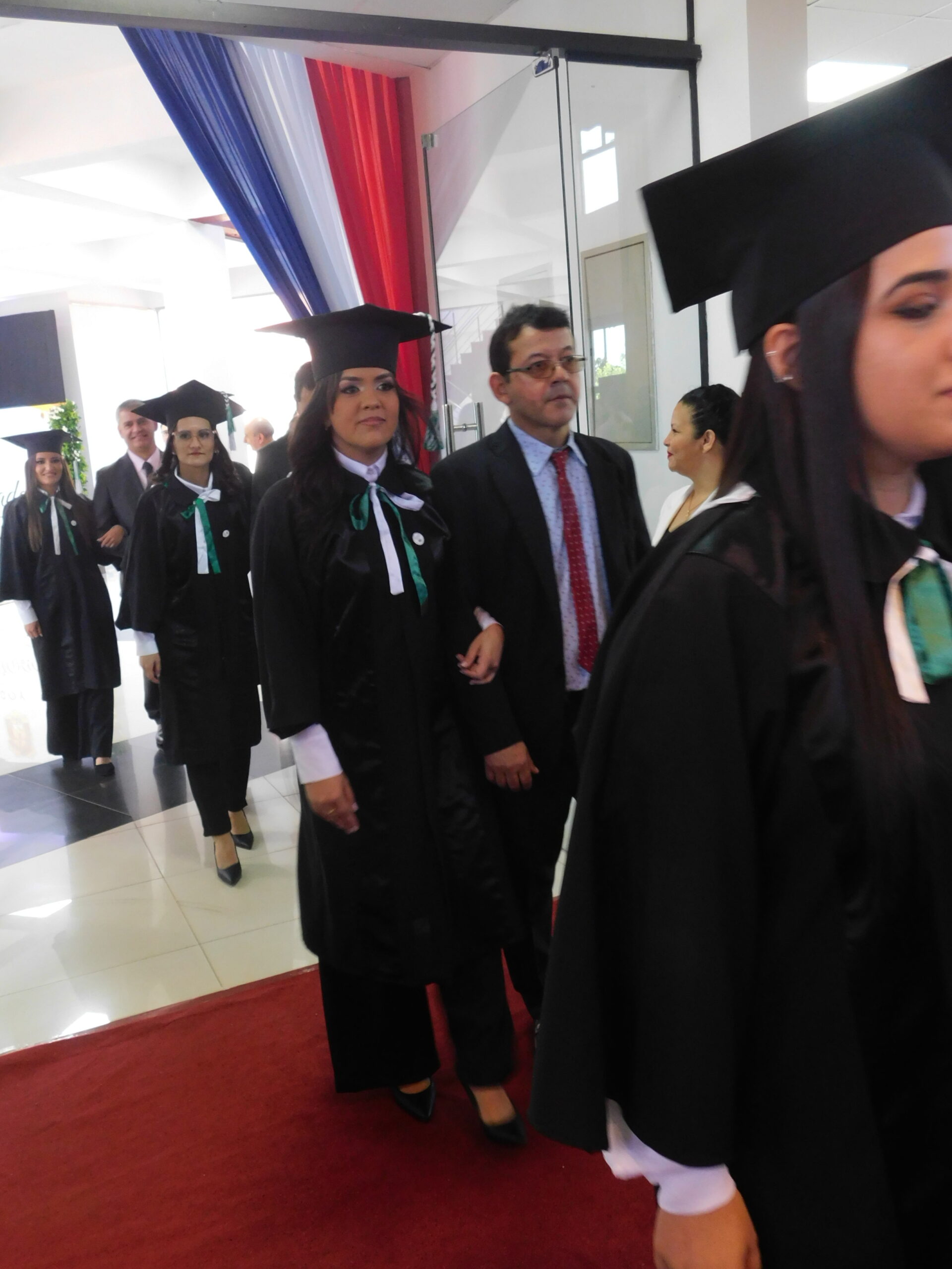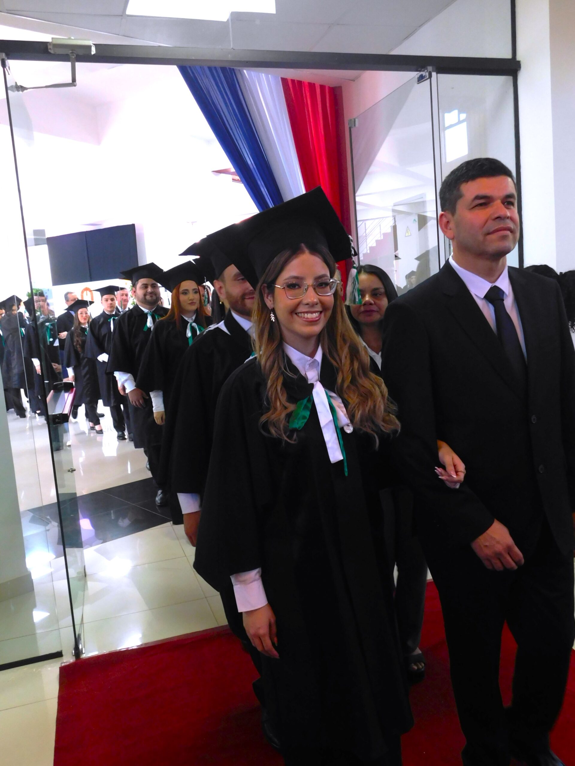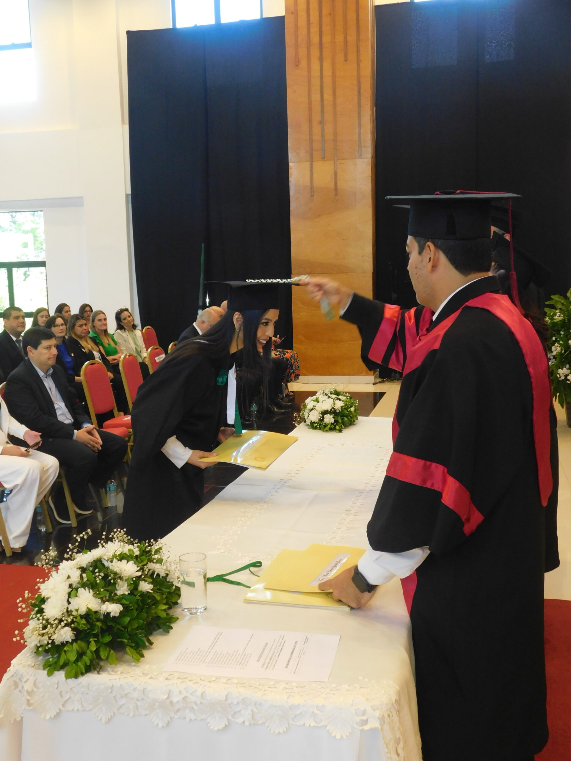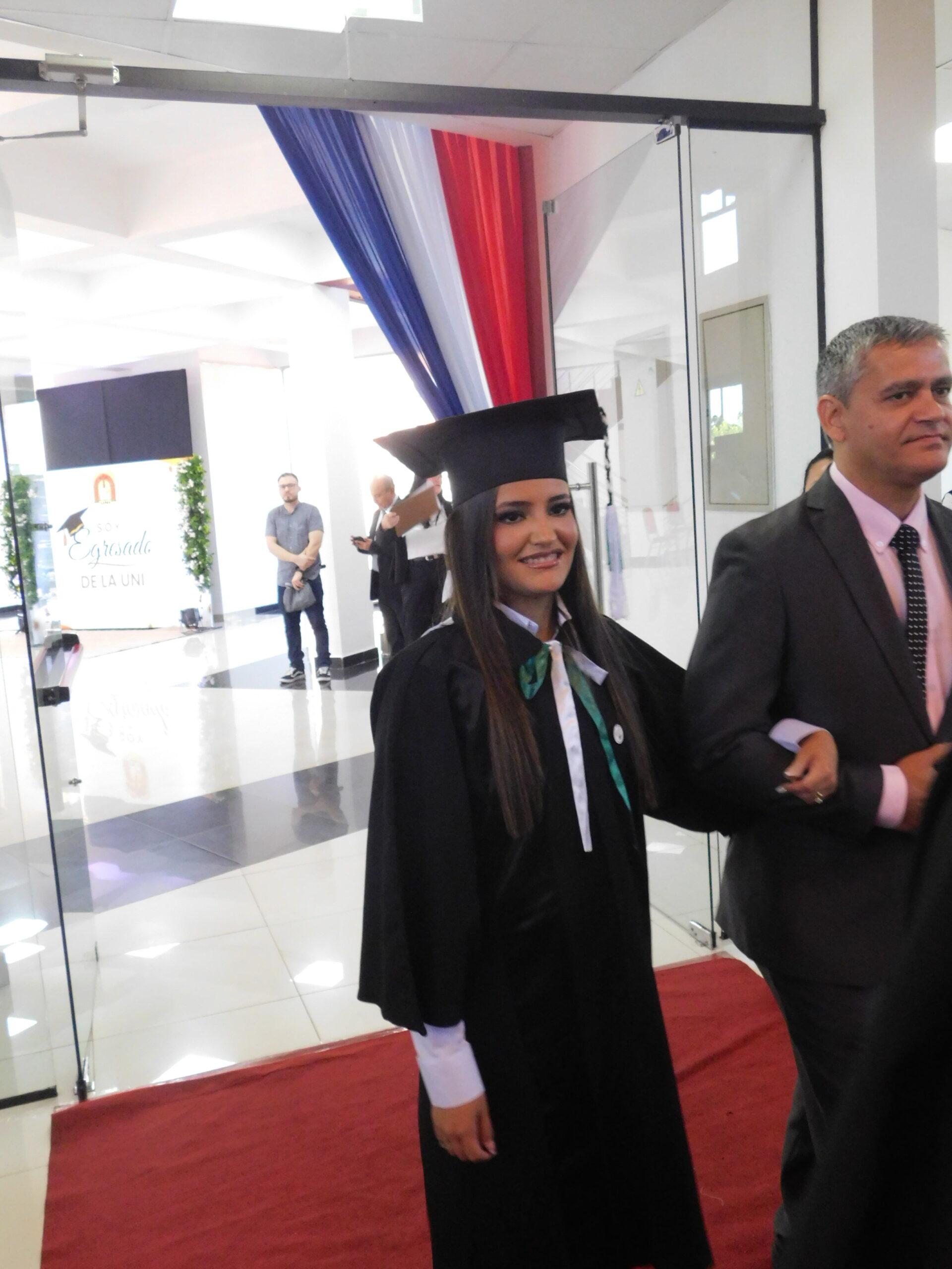 A continuación, la ceremonia inició con la Marcha Procesional de ingreso de los graduados junto a sus padrinos. Seguidamente, se entonó el Himno Nacional, marcando el inicio formal del acto académico.