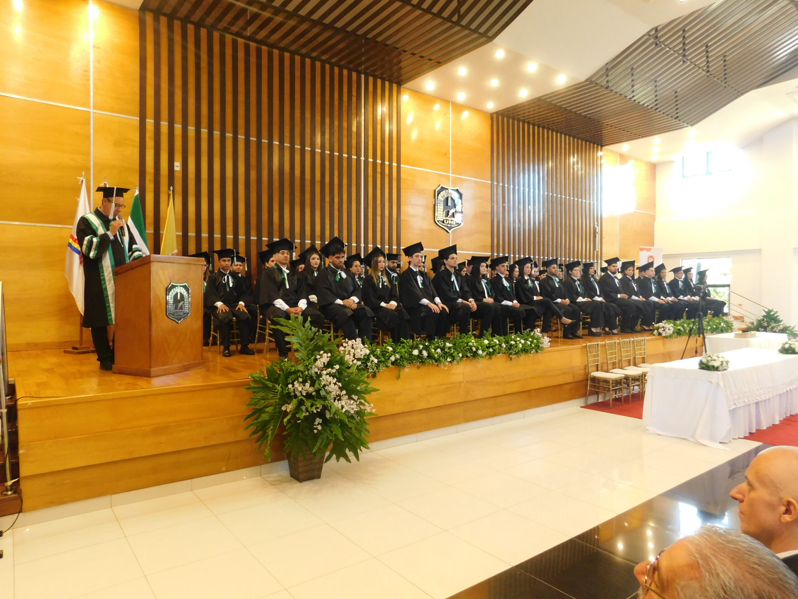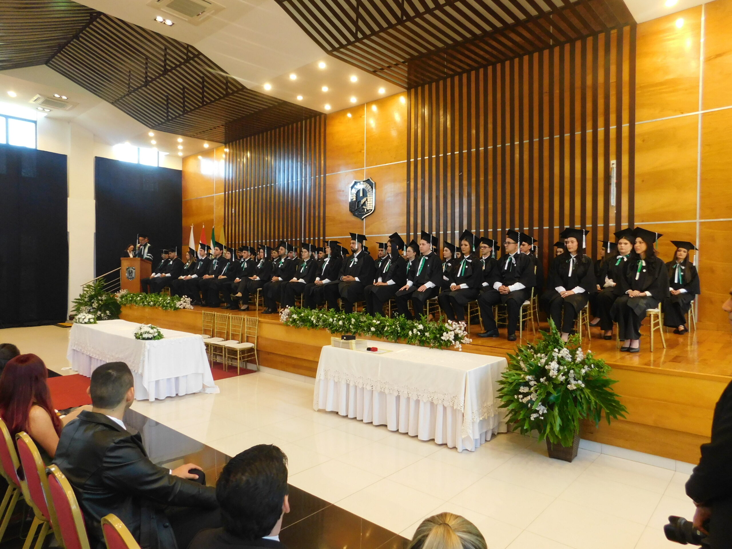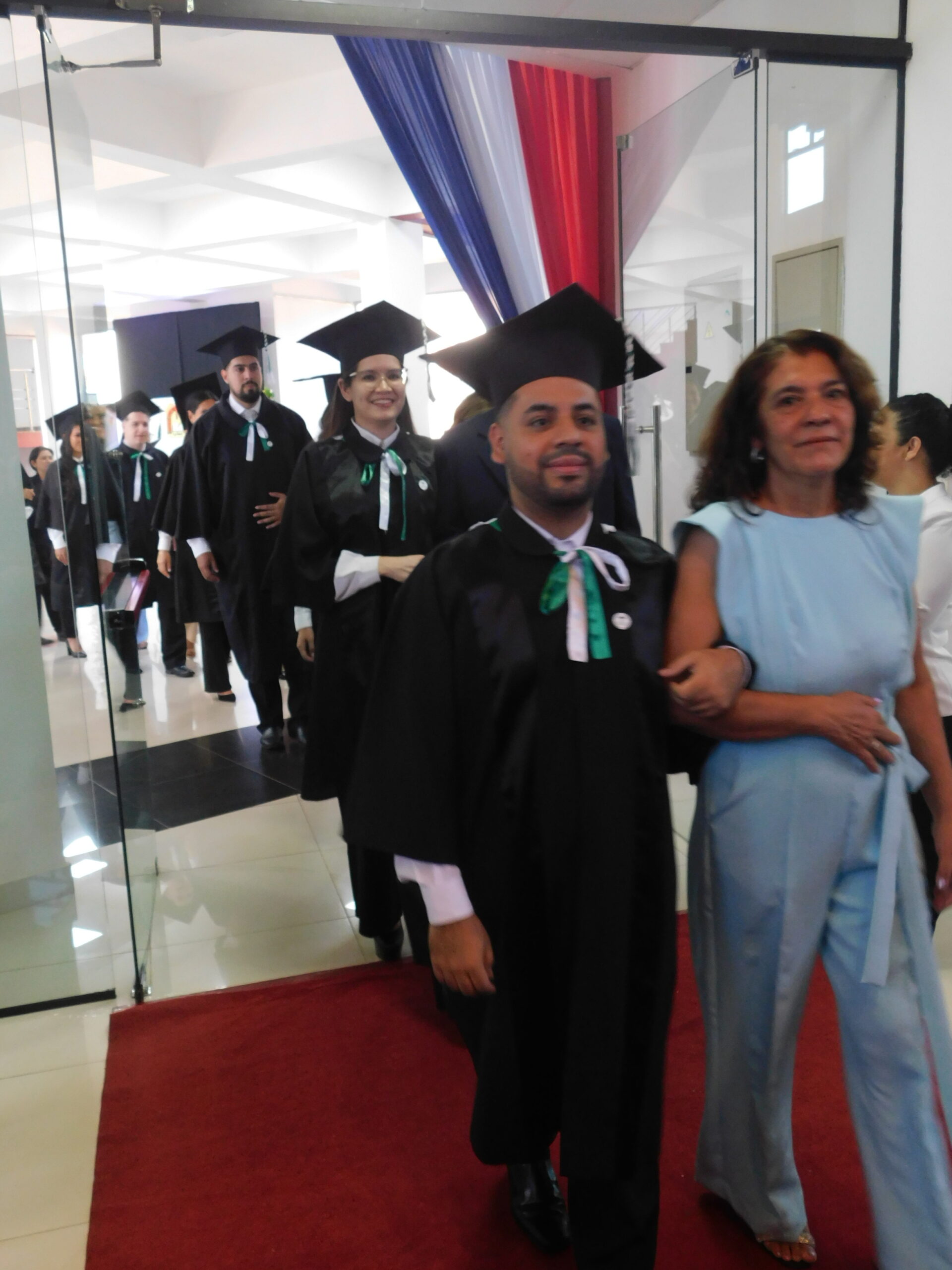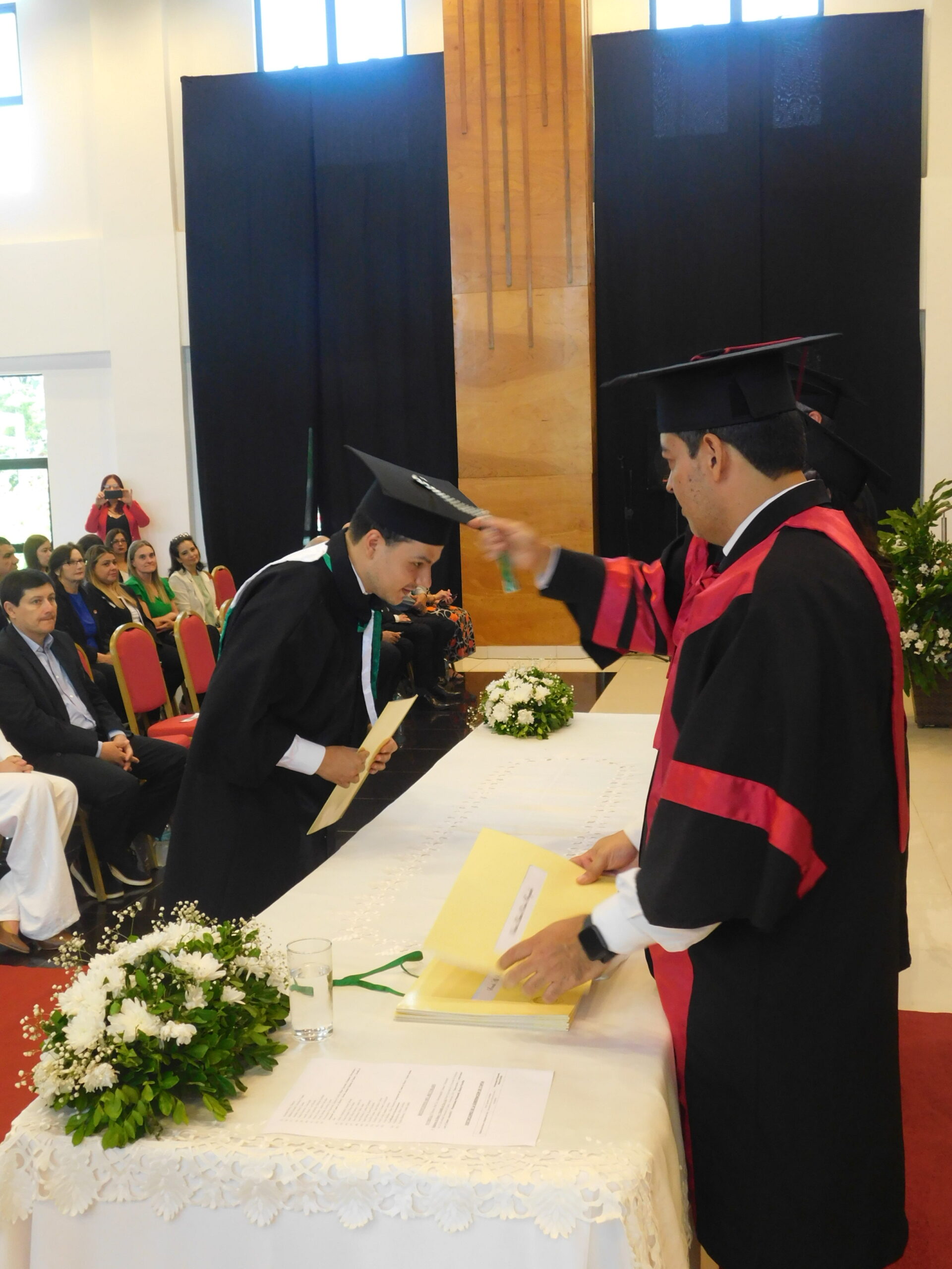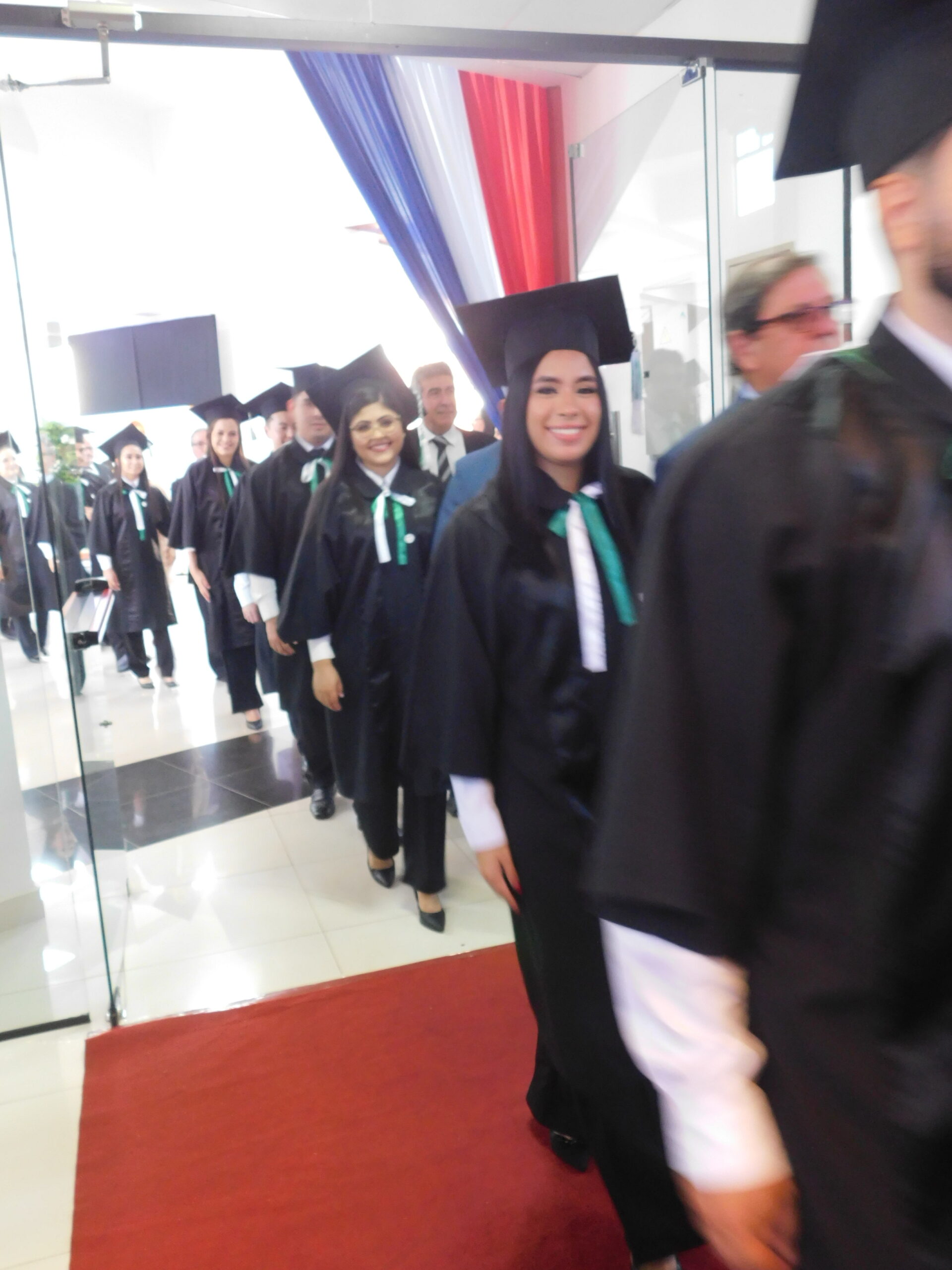 A continuación, la ceremonia inició con la Marcha Procesional de ingreso de los graduados junto a sus padrinos. Seguidamente, se entonó el Himno Nacional, marcando el inicio formal del acto académico.