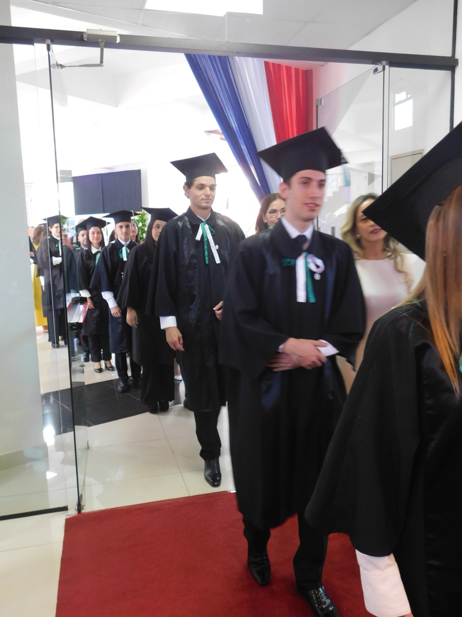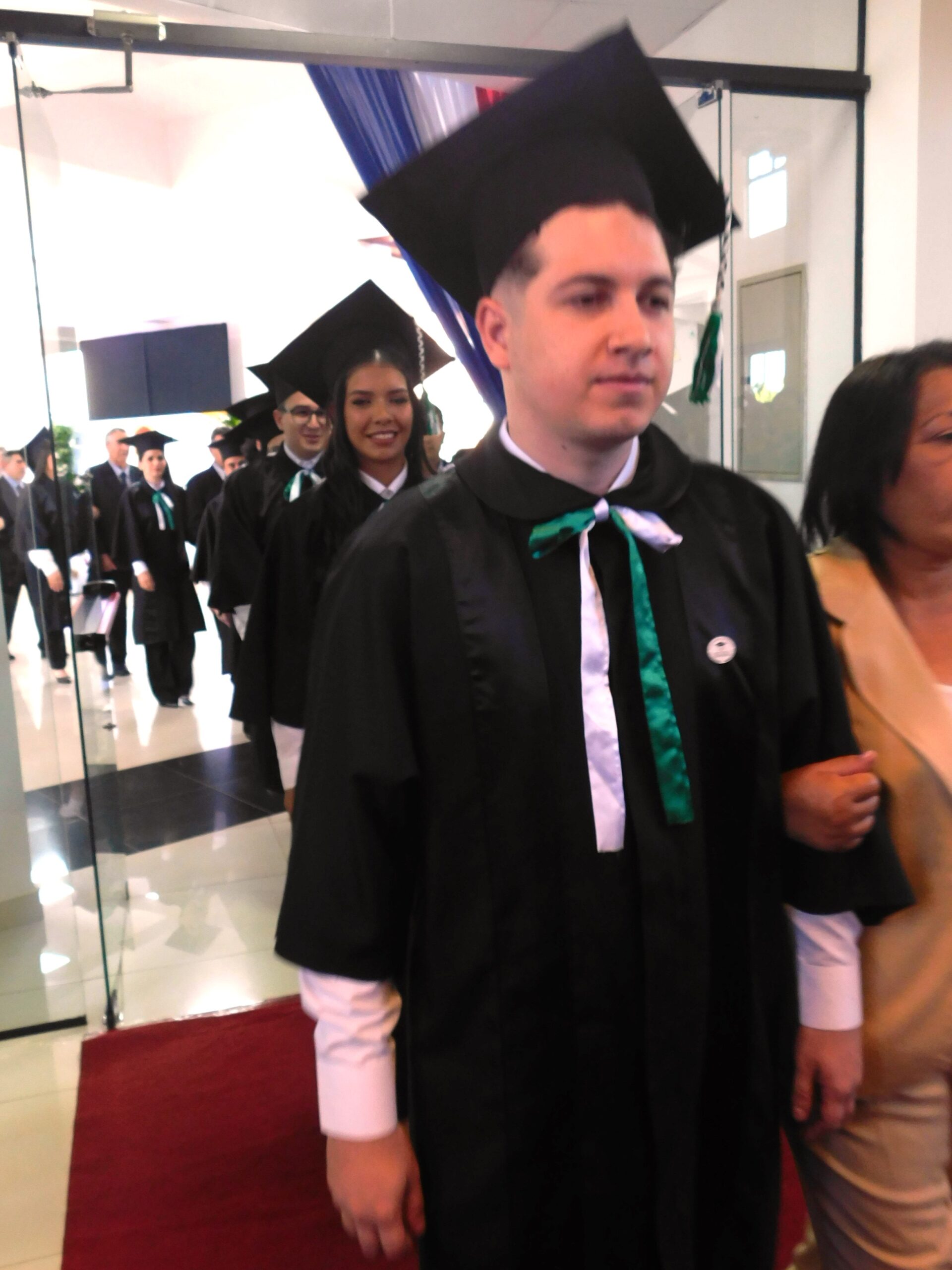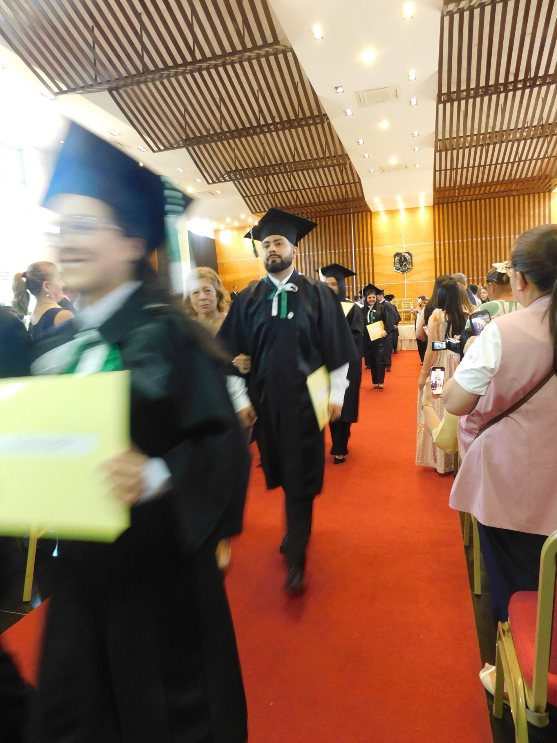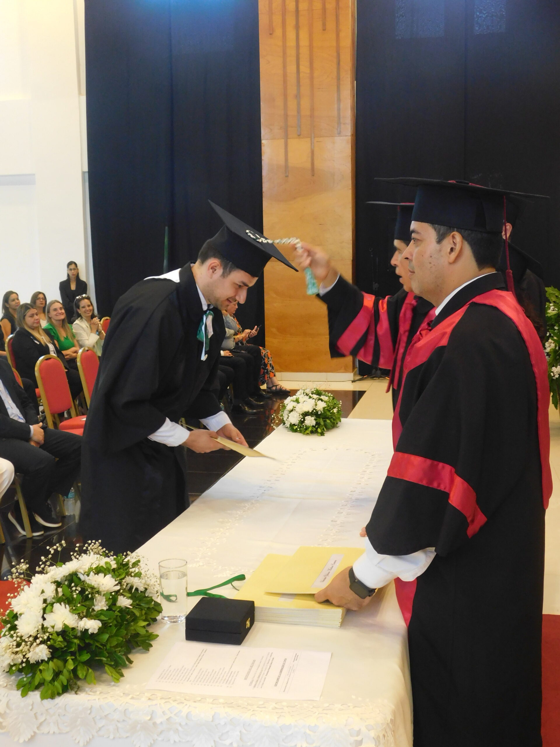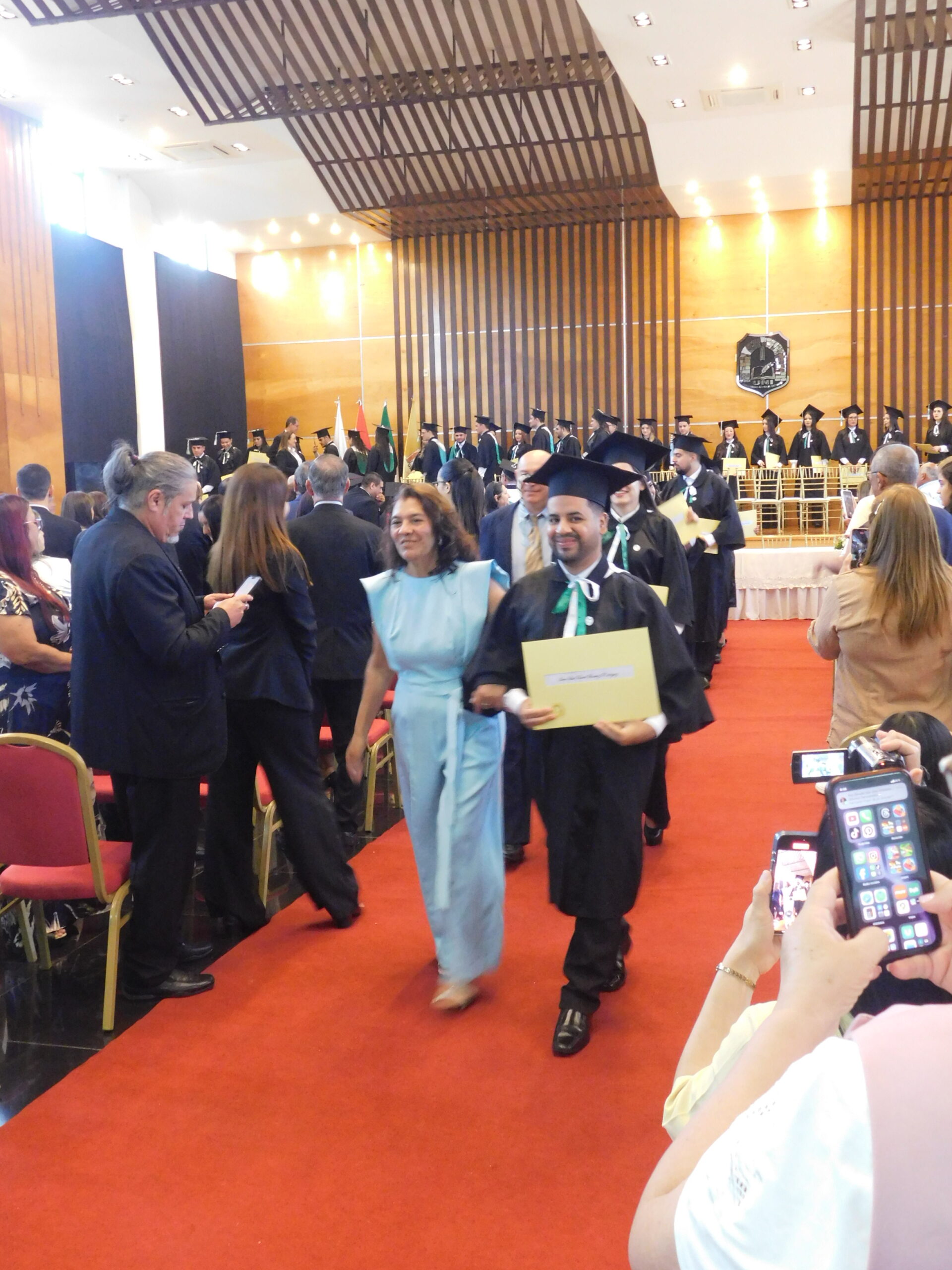 A continuación, la ceremonia inició con la Marcha Procesional de ingreso de los graduados junto a sus padrinos. Seguidamente, se entonó el Himno Nacional, marcando el inicio formal del acto académico.