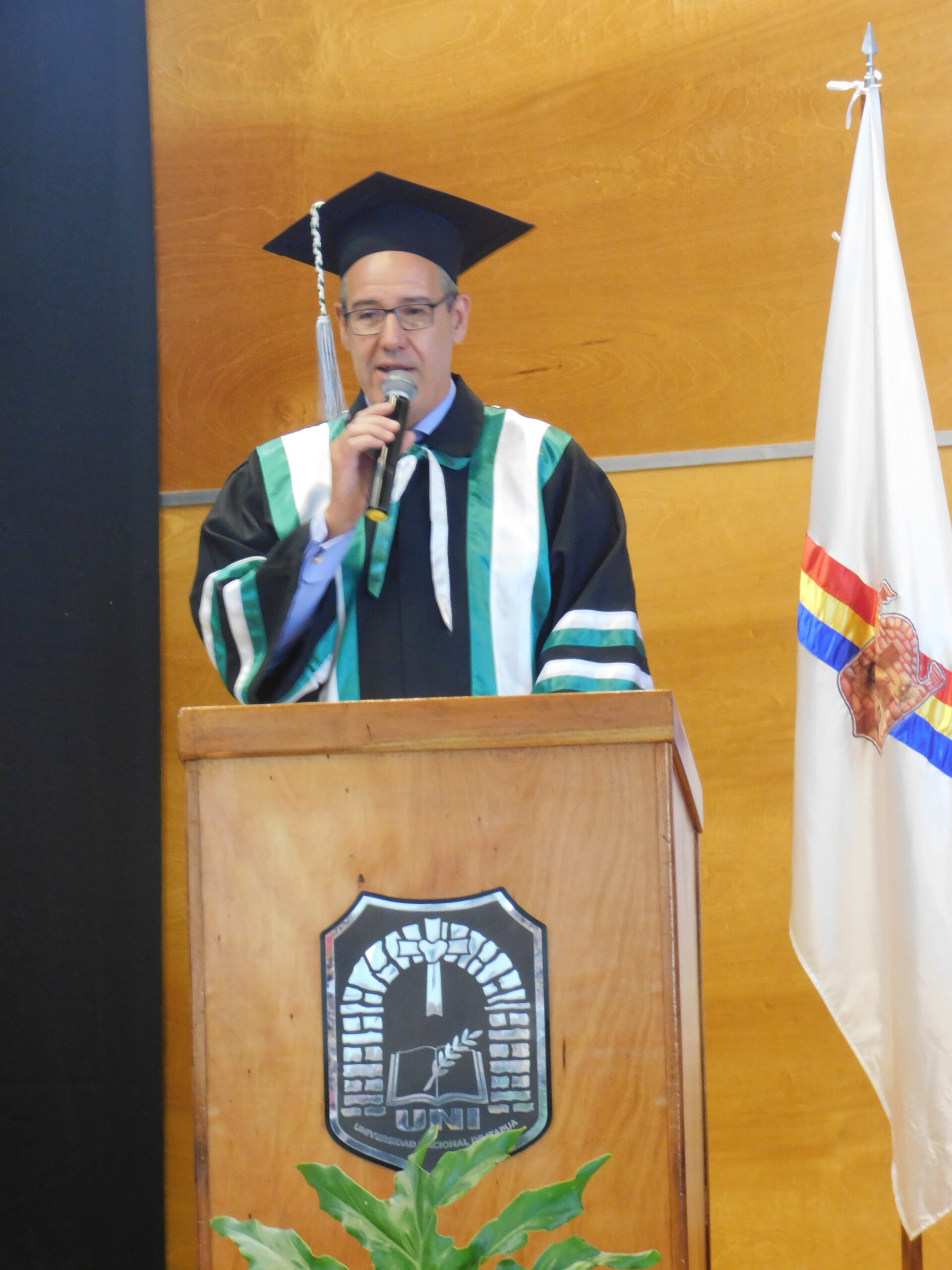 Acto seguido, el Rector de la UNI tomó juramento a los 55 nuevos médicos, acompañando en la mesa de honor por la Vicerrectora, el Decano de la Facultad de Medicina y el Abog. Néstor Ibáñez Miranda, Secretario General de la UNI.