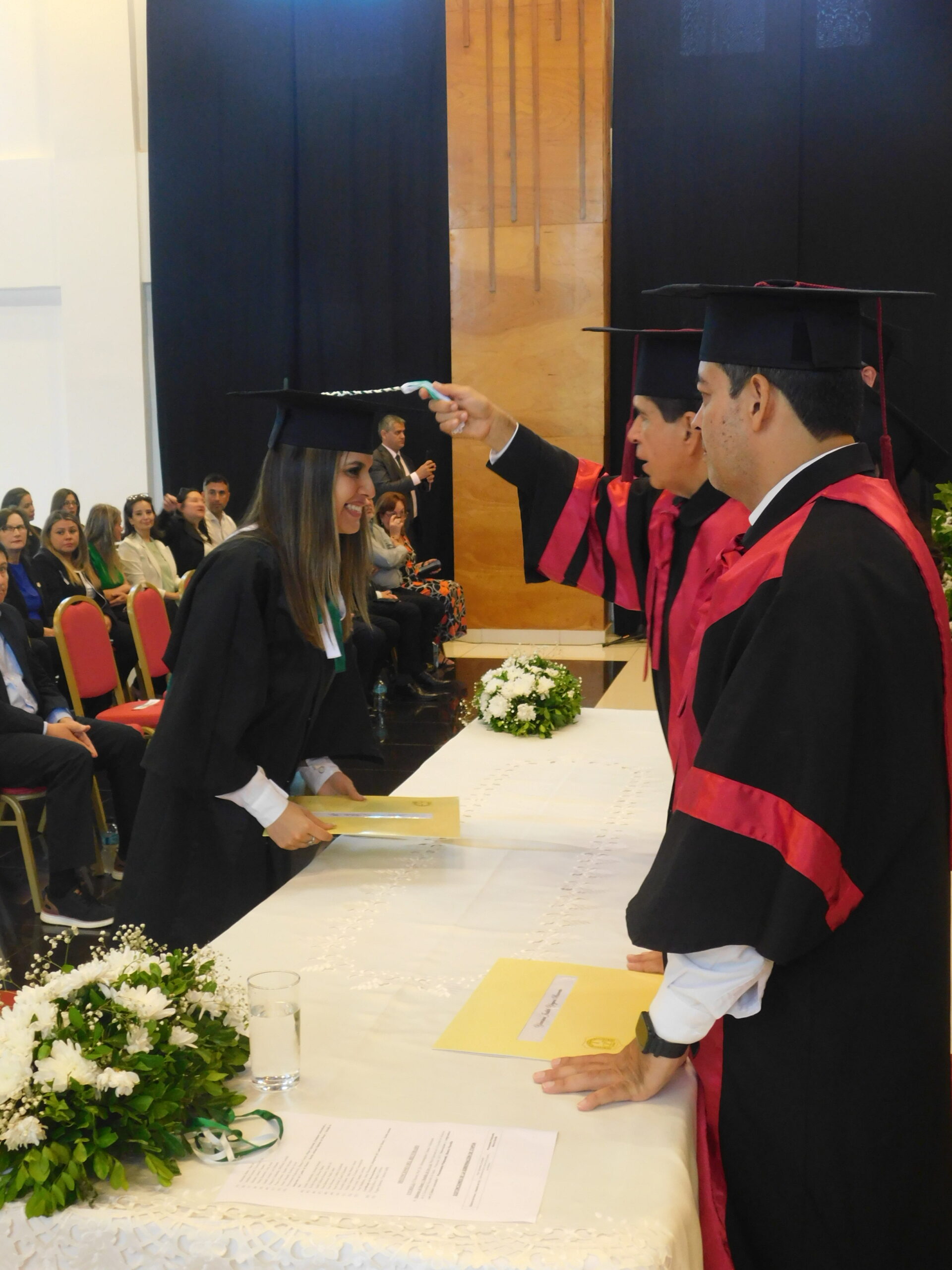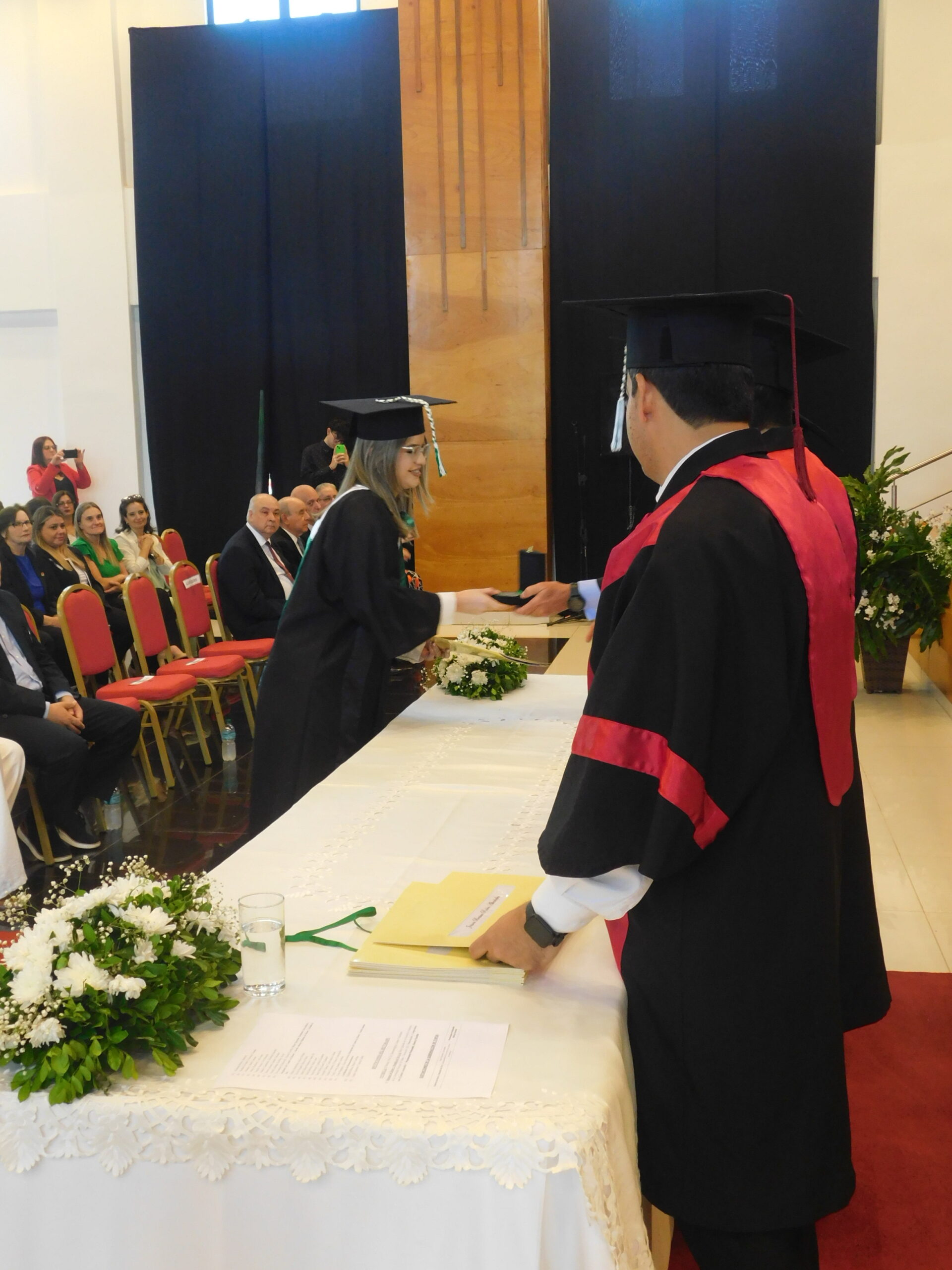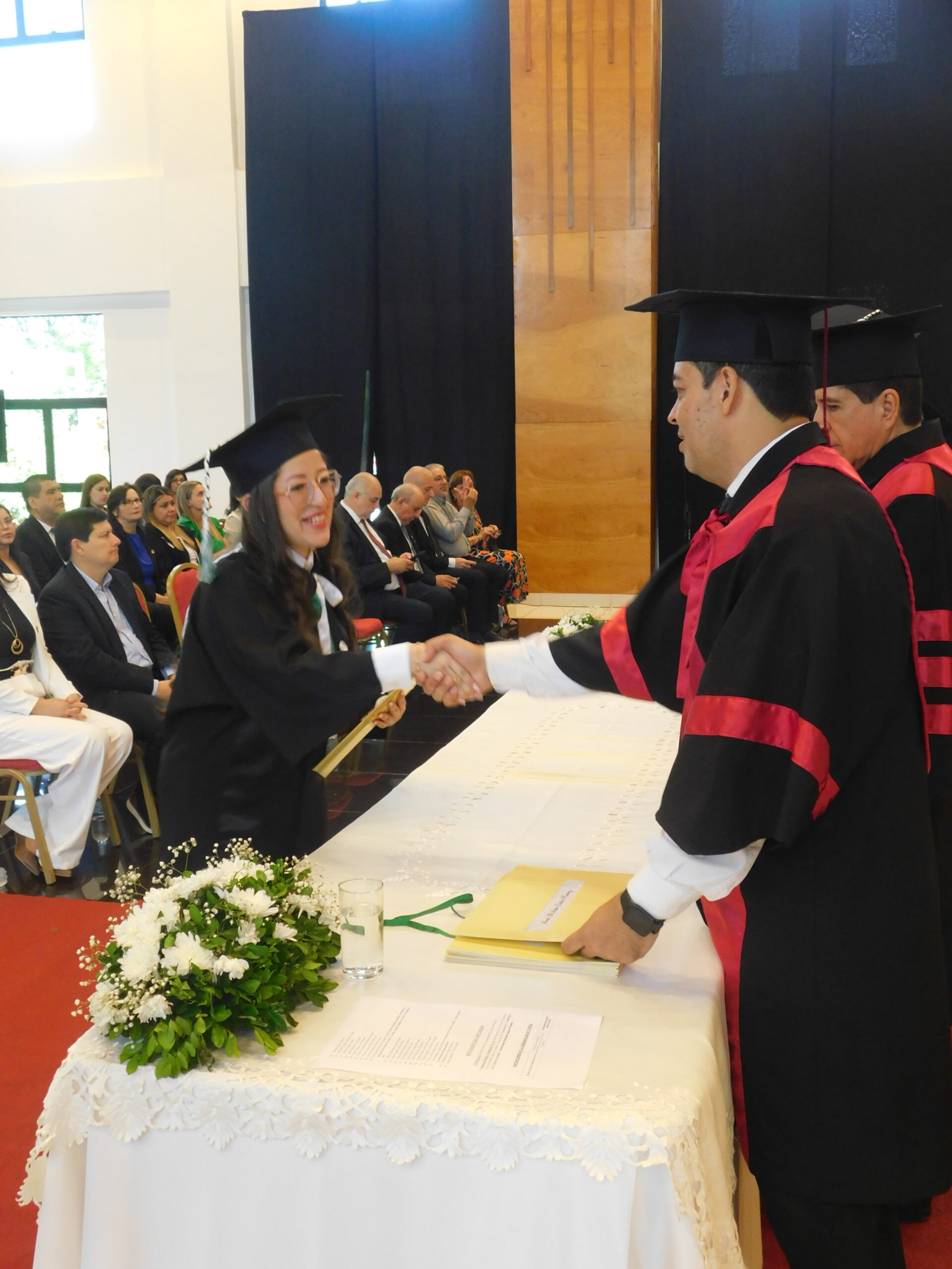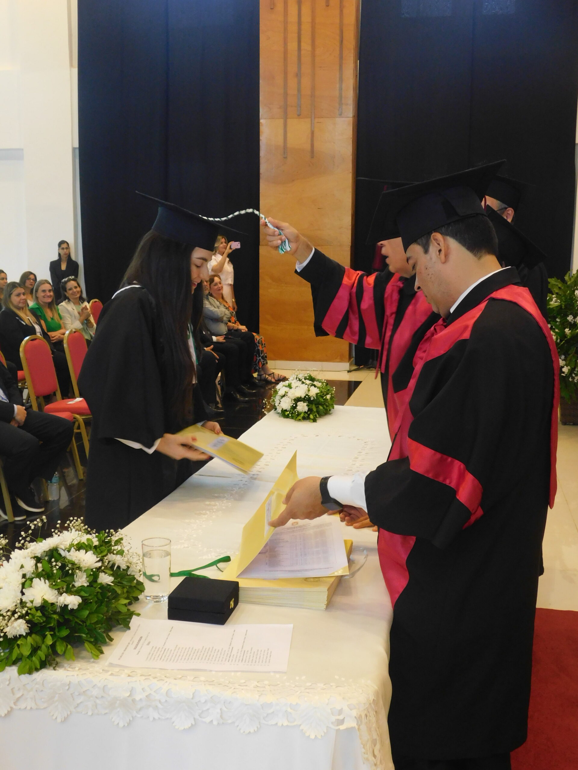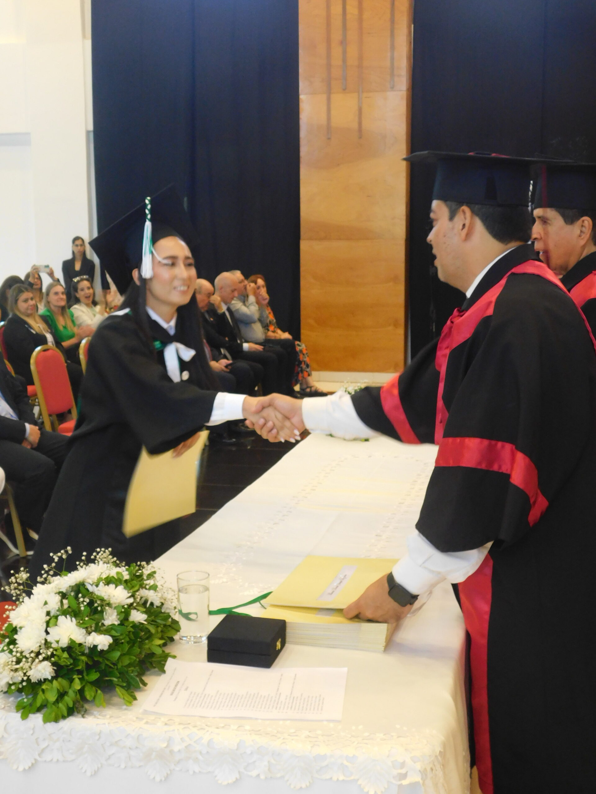 Seguidamente, en representación de sus compañeros, la Mejor Egresada, Bianca Fiorella Provenzano Pinkoski, dirigió unas palabras de agradecimiento. Expresó su profundo reconocimiento a las autoridades universitarias por su compromiso con la formación de profesionales íntegros y por mantener la excelencia académica que distingue a la facultad.