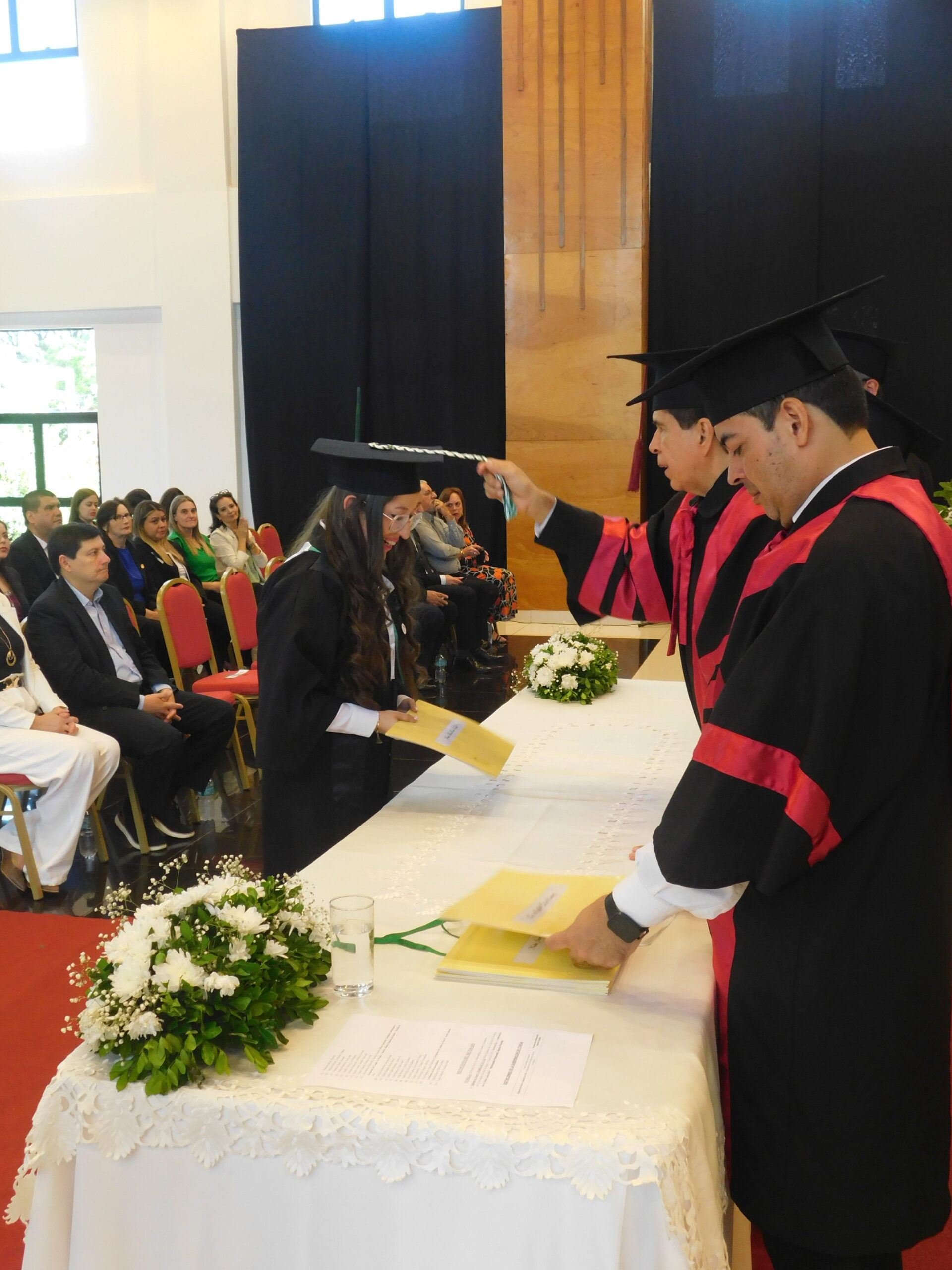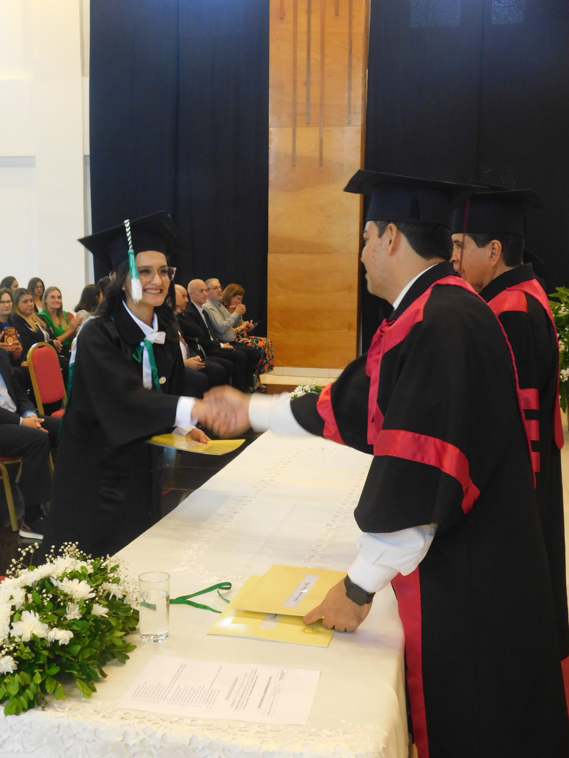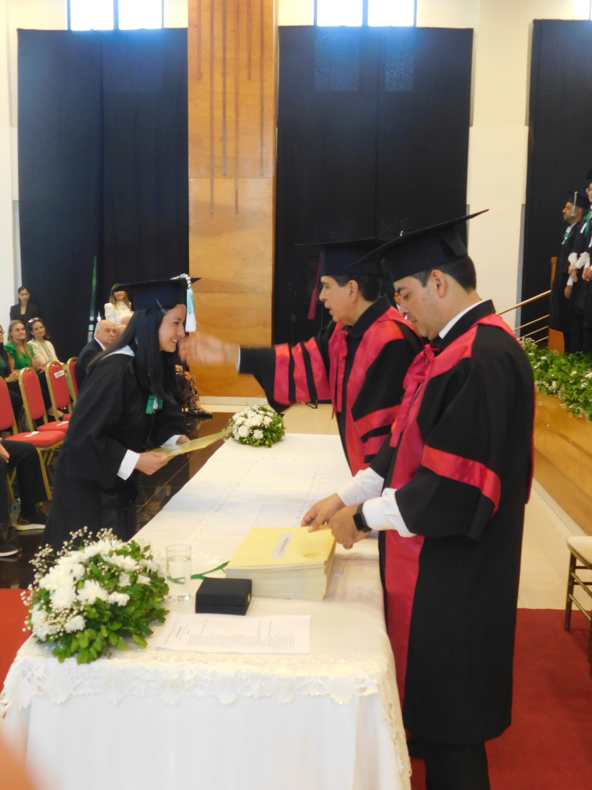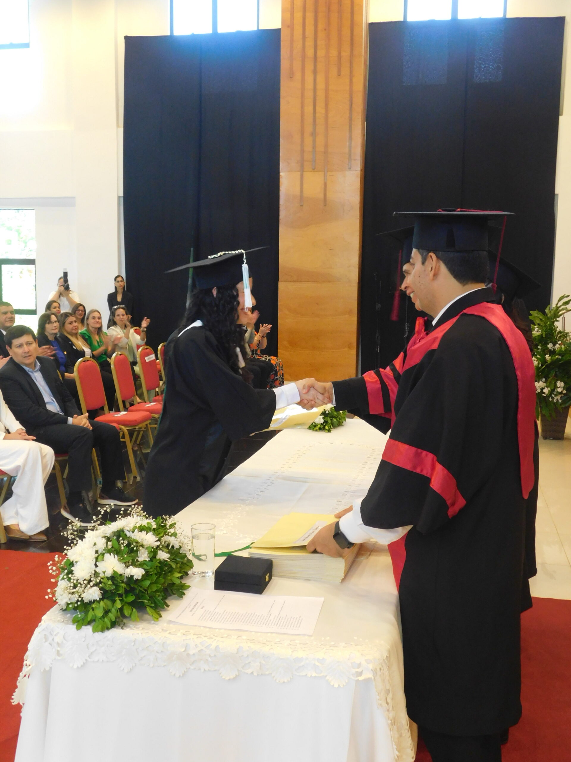 A continuación, se procedió a la entrega de distinciones honoríficas a la Mejor Egresada y a la Estudiante Sobresaliente de Medicina, en reconocimiento a su desempeño académico. Las distinciones fueron entregadas por el Dr. Diego Berdejo, en su calidad de Secretario de Salud de la Gobernación de Itapúa.