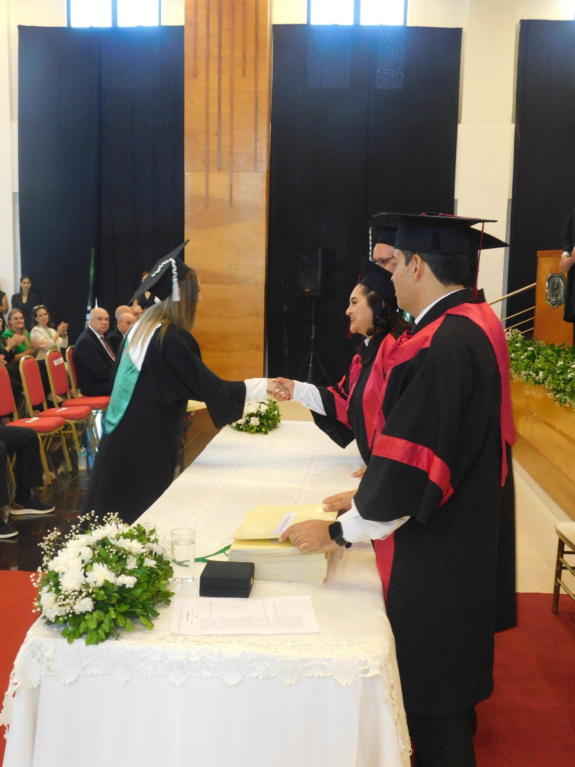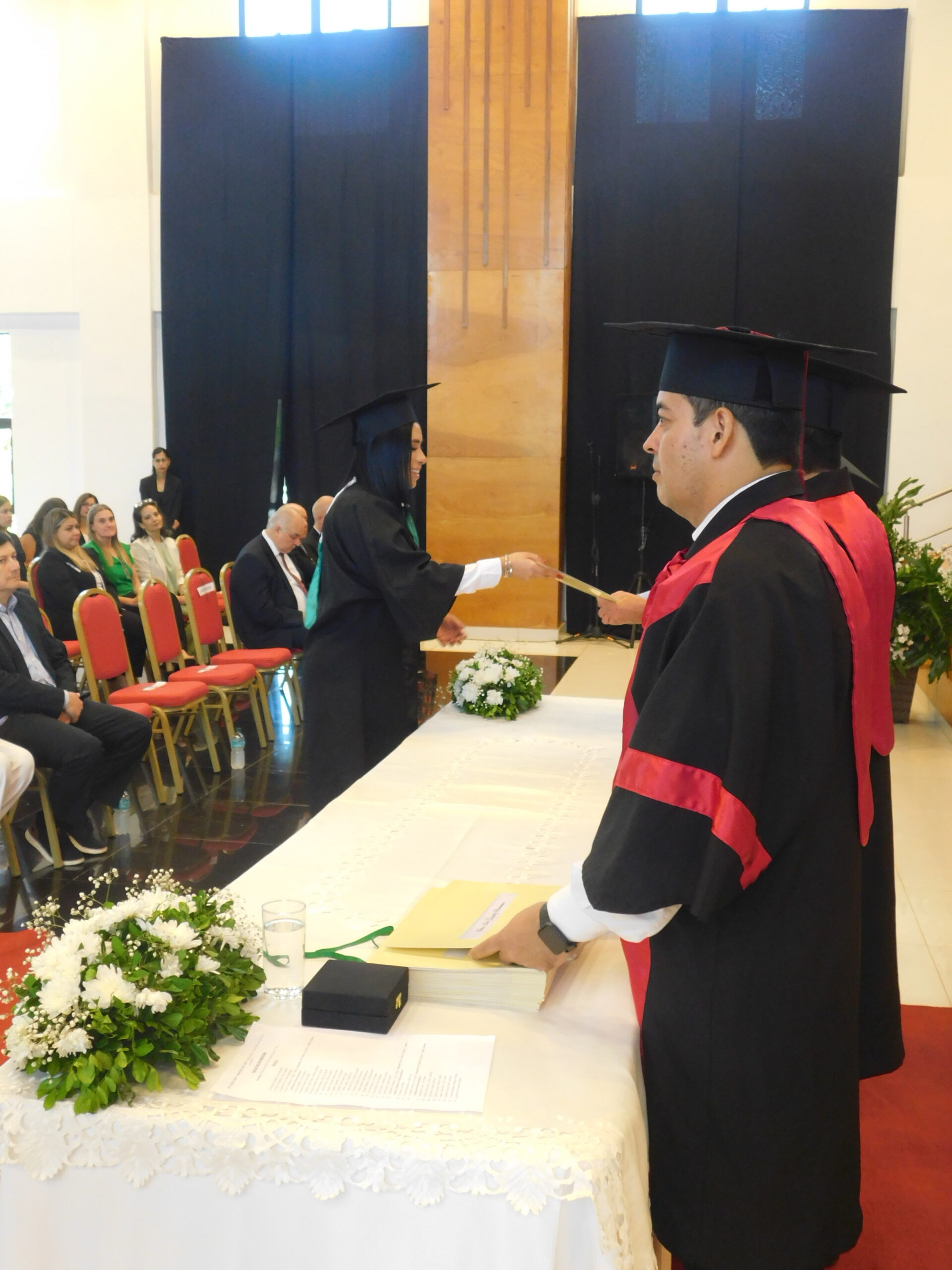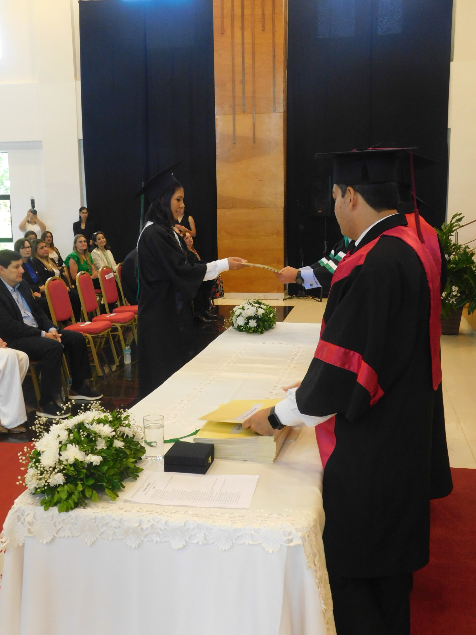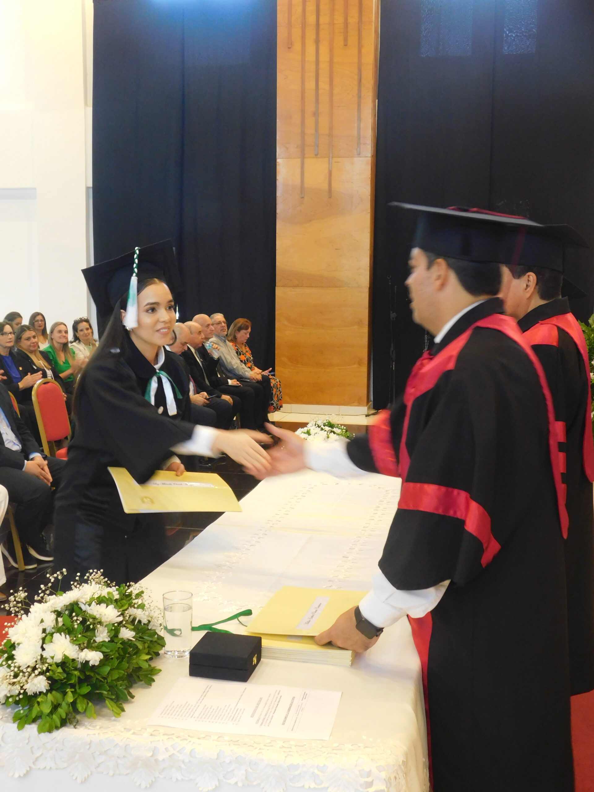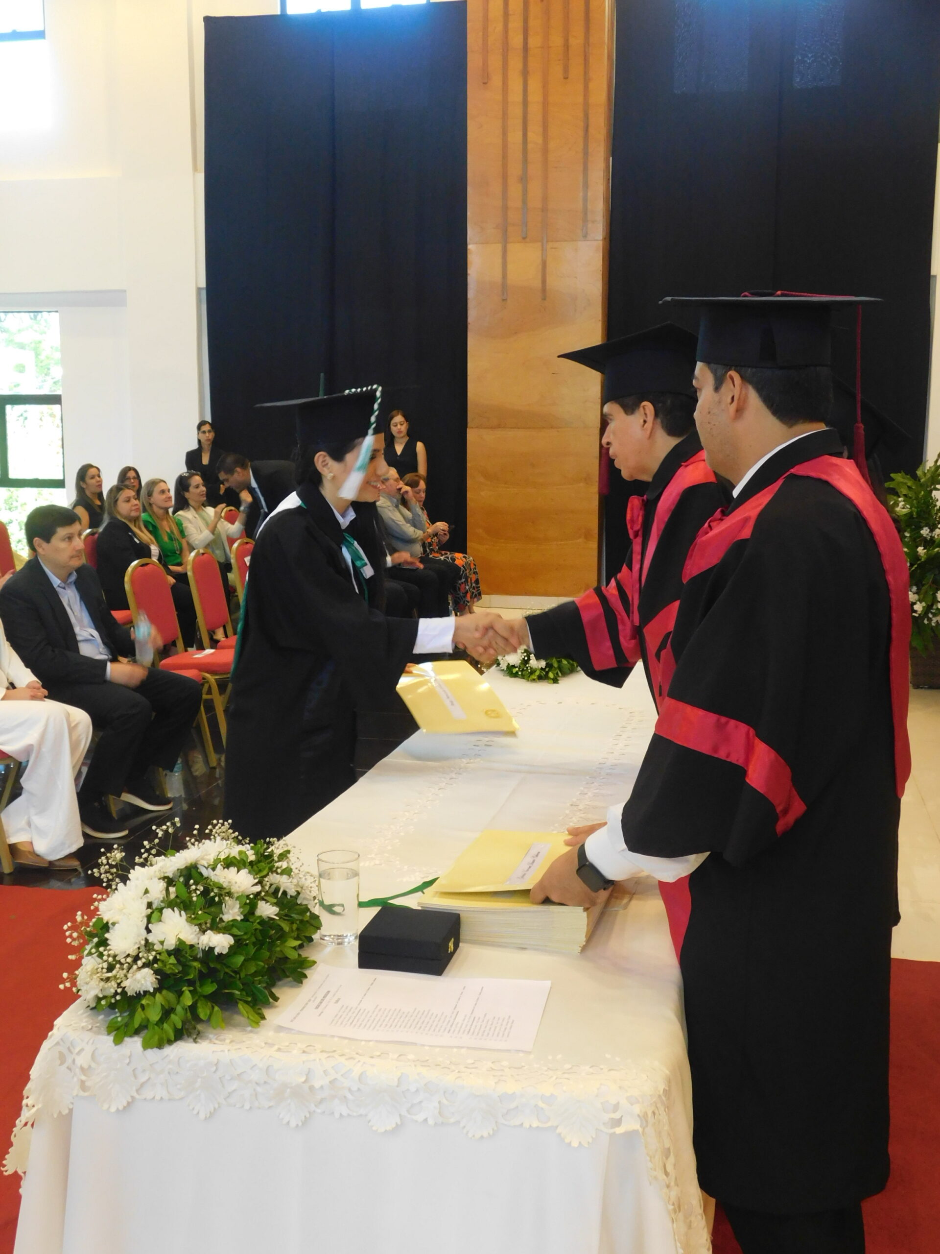 A continuación, se procedió a la entrega de distinciones honoríficas a la Mejor Egresada y a la Estudiante Sobresaliente de Medicina, en reconocimiento a su desempeño académico. Las distinciones fueron entregadas por el Dr. Diego Berdejo, en su calidad de Secretario de Salud de la Gobernación de Itapúa.
