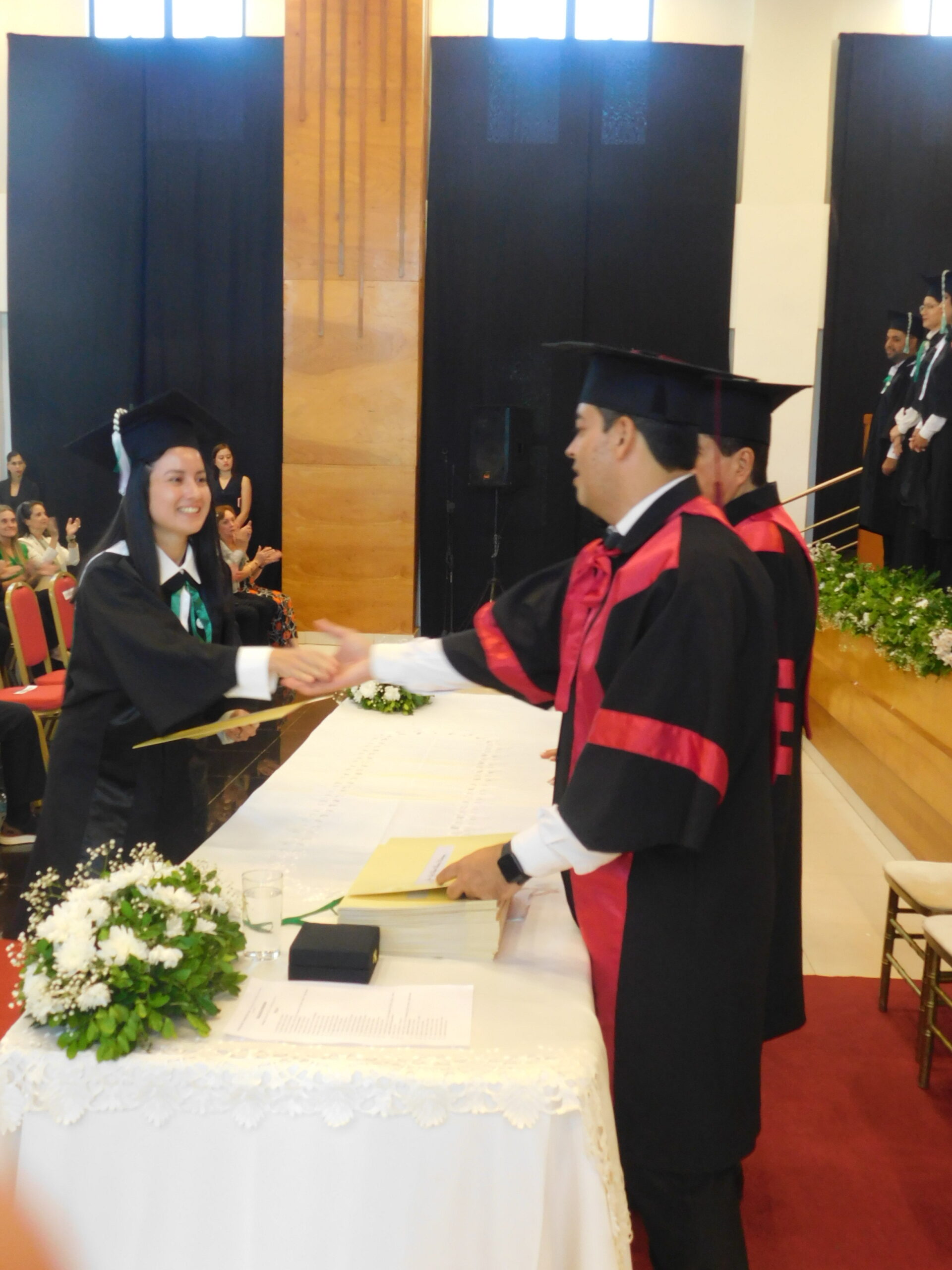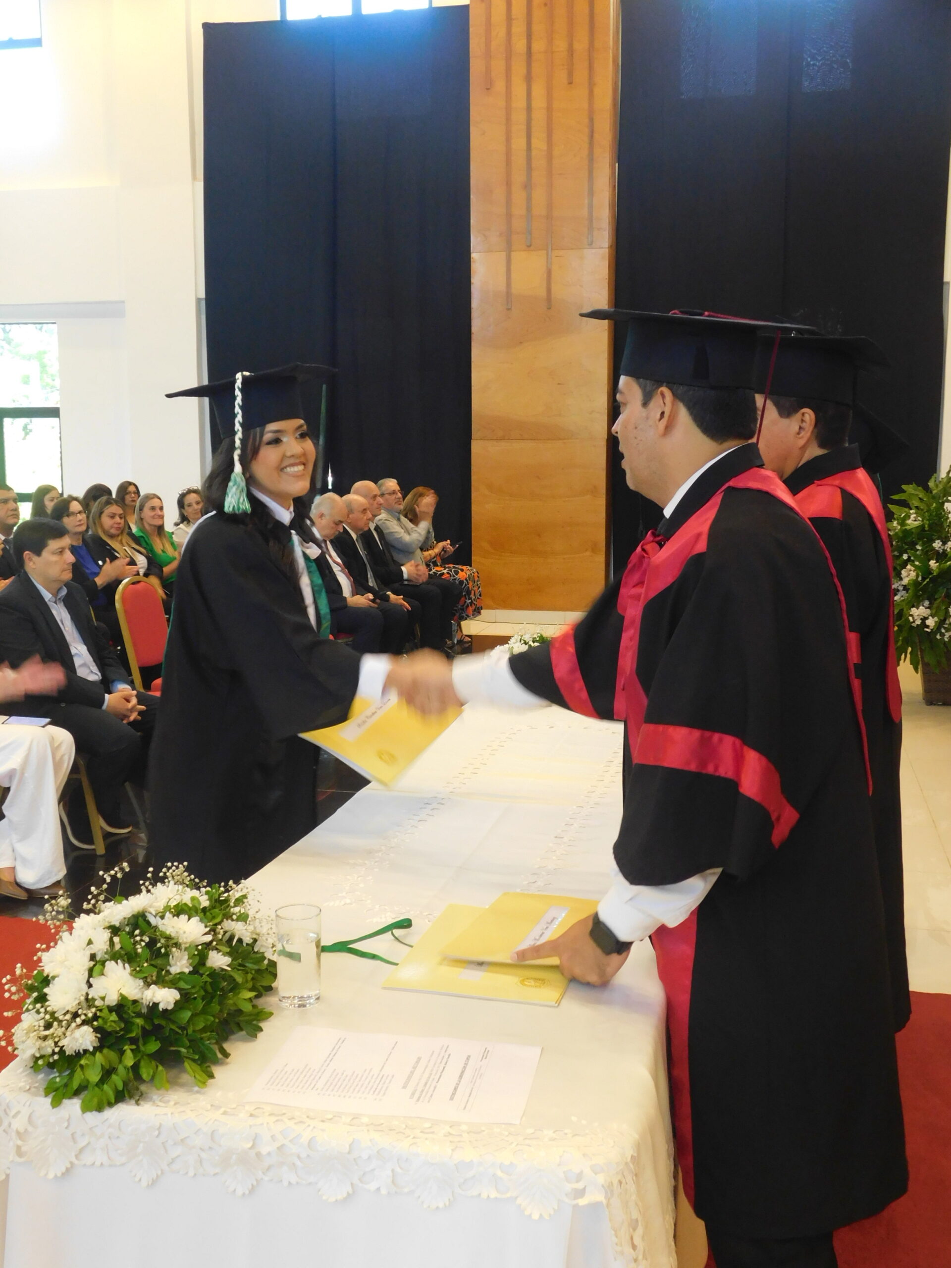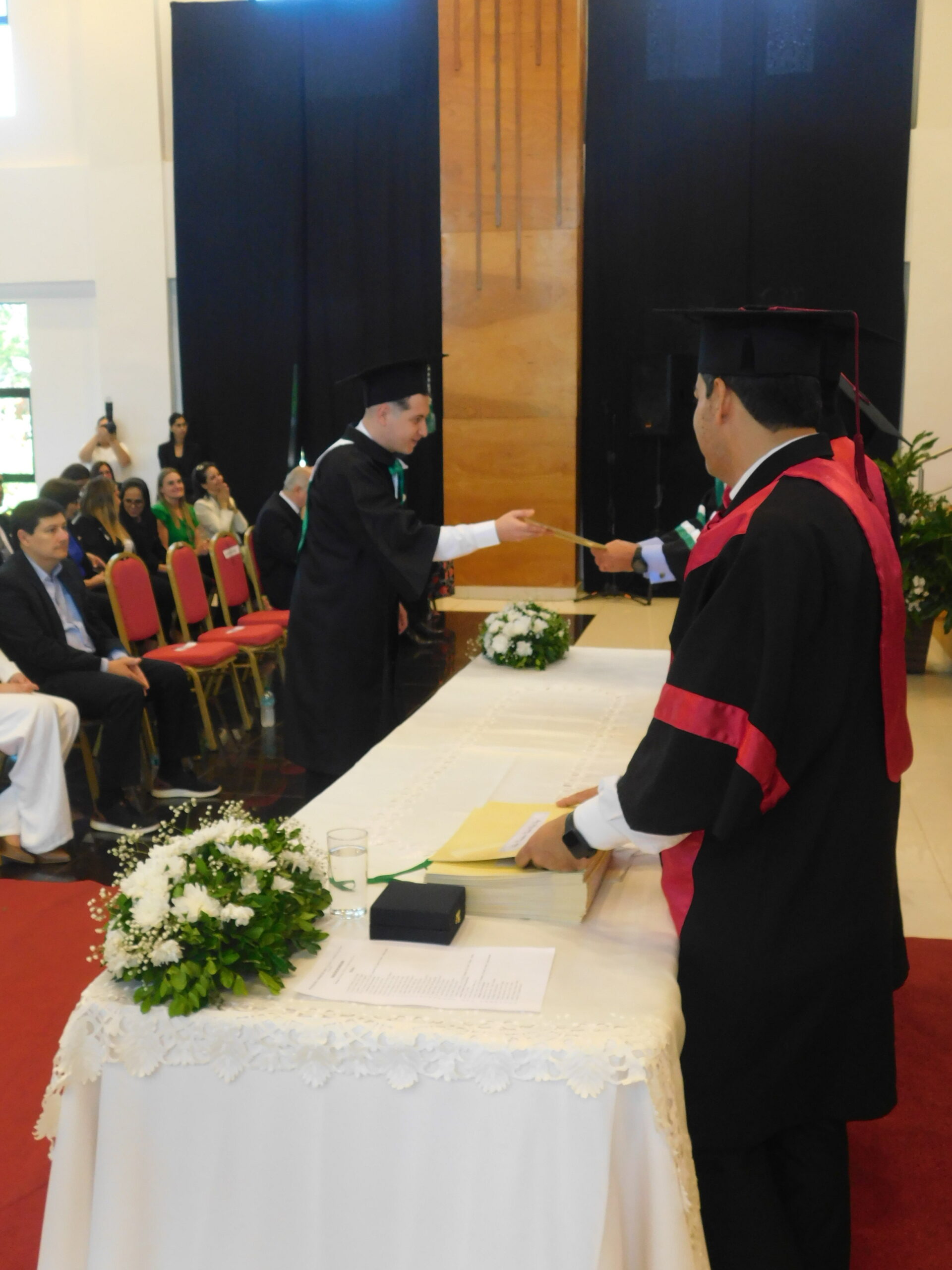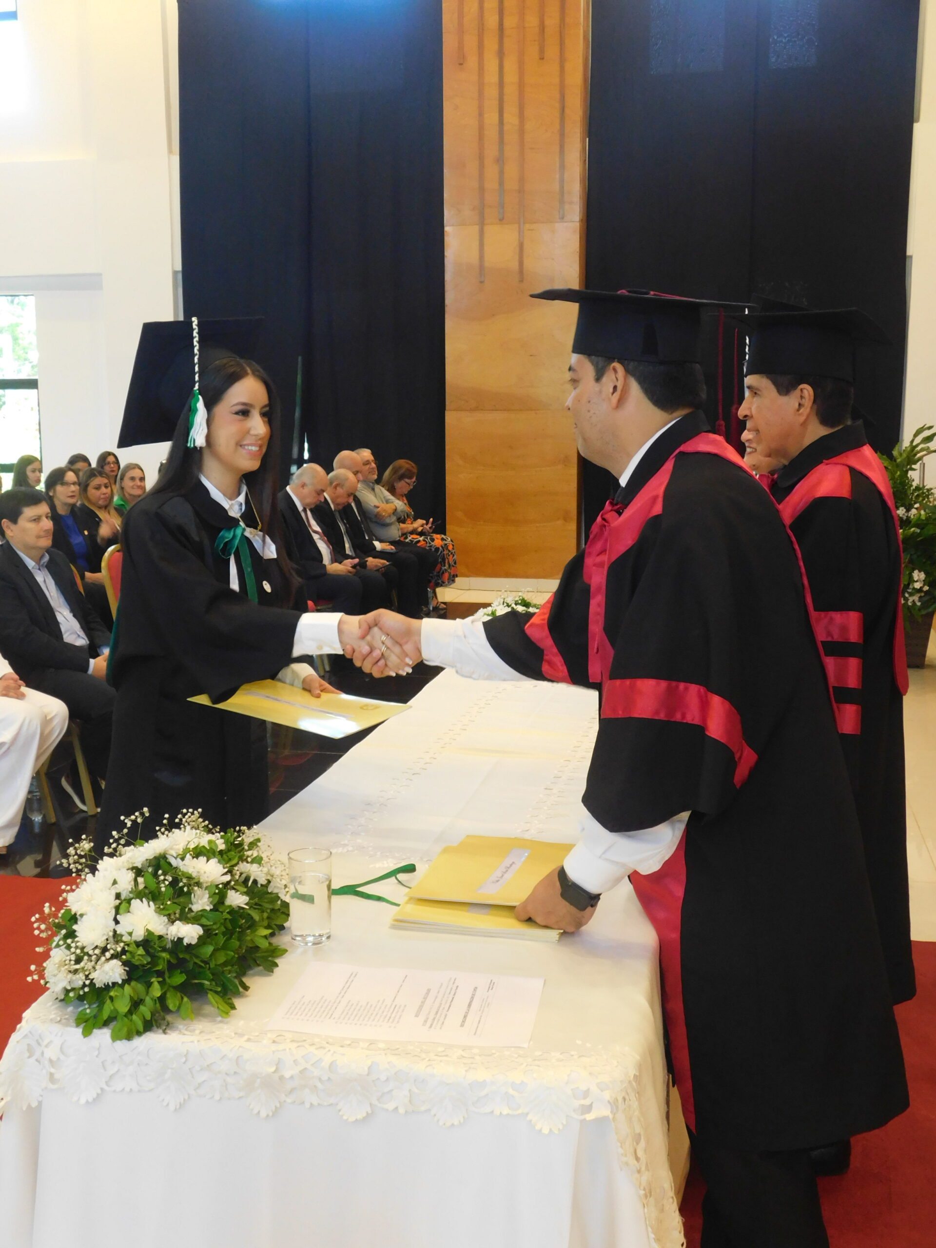 A continuación, se procedió a la entrega de distinciones honoríficas a la Mejor Egresada y a la Estudiante Sobresaliente de Medicina, en reconocimiento a su desempeño académico. Las distinciones fueron entregadas por el Dr. Diego Berdejo, en su calidad de Secretario de Salud de la Gobernación de Itapúa.