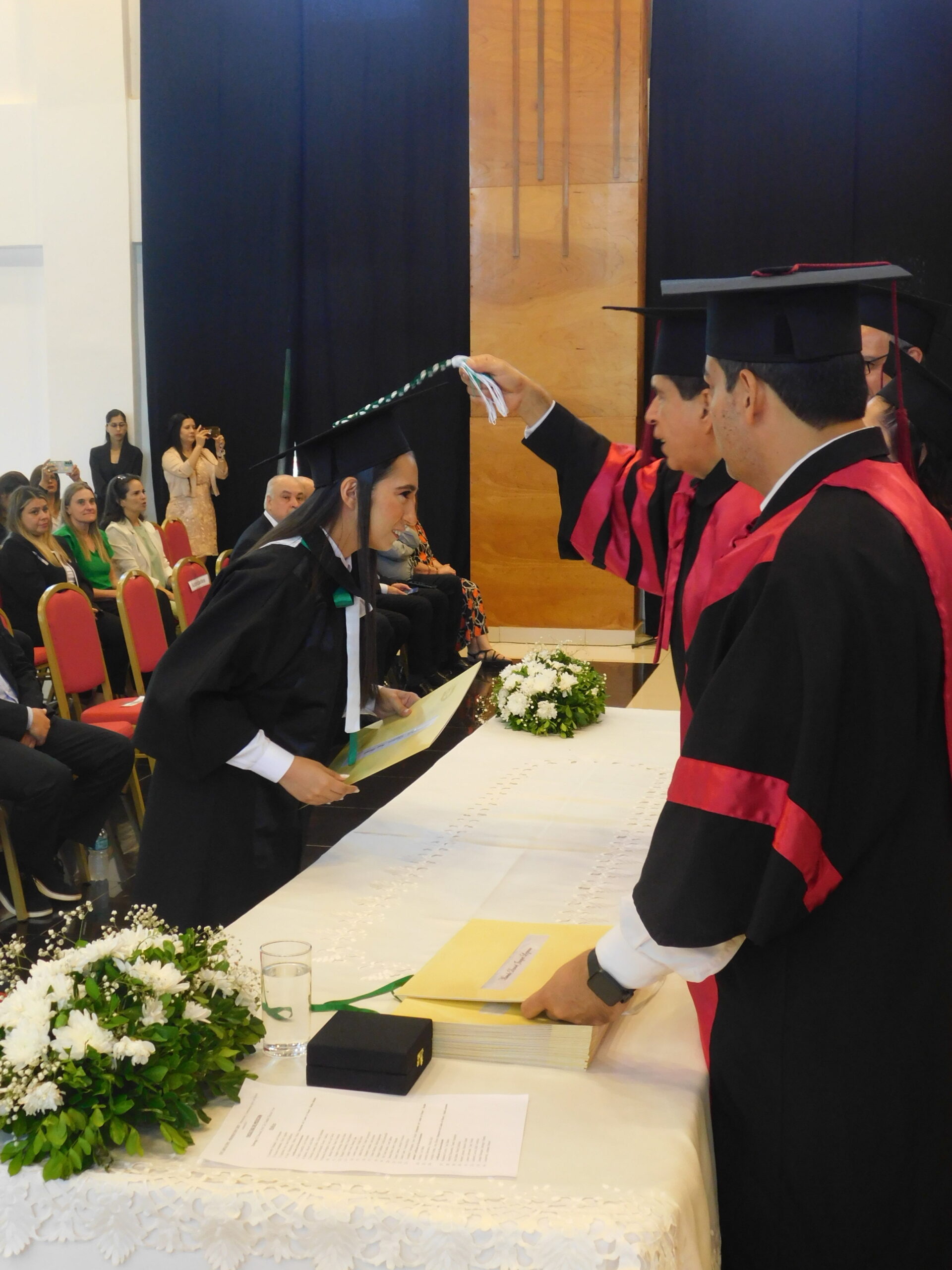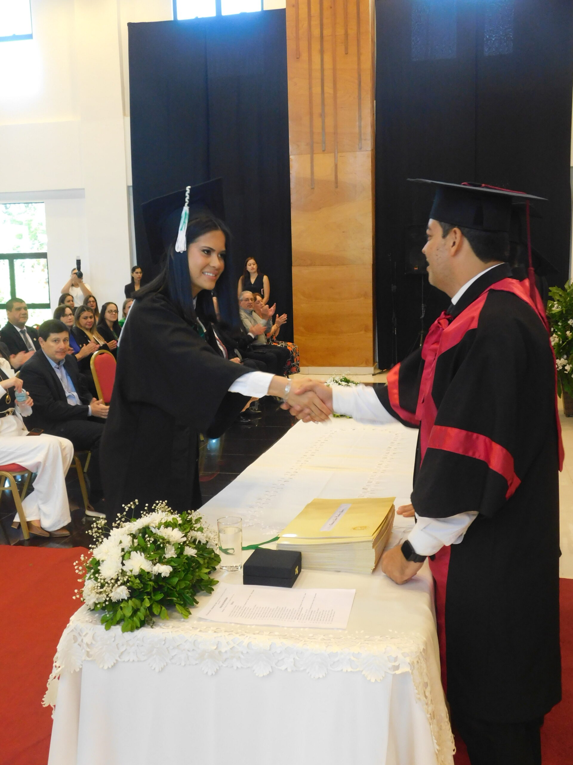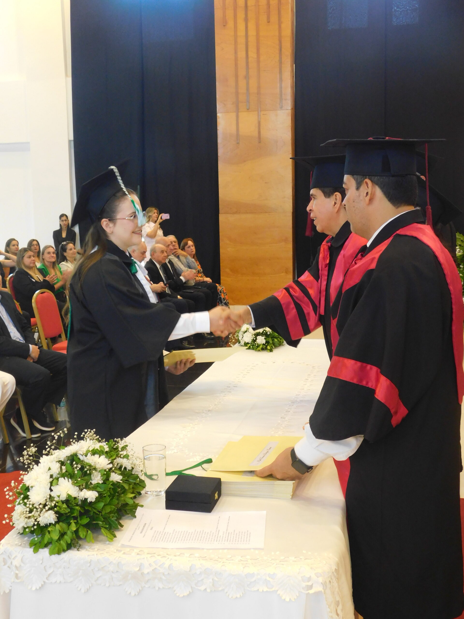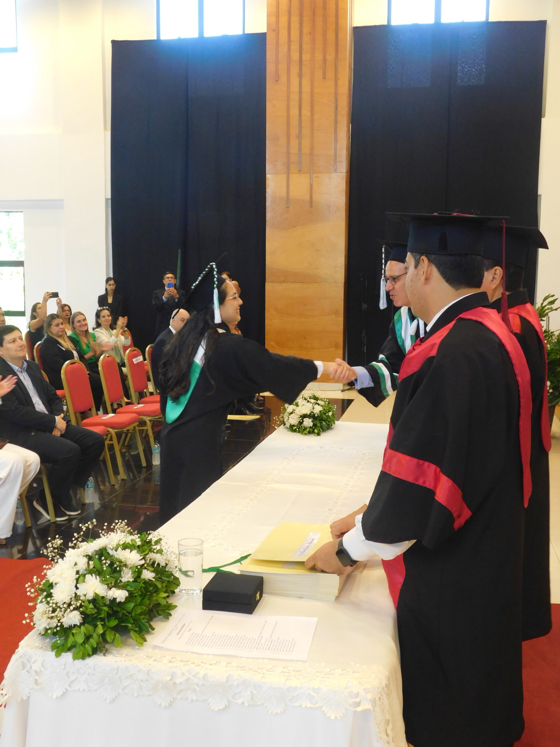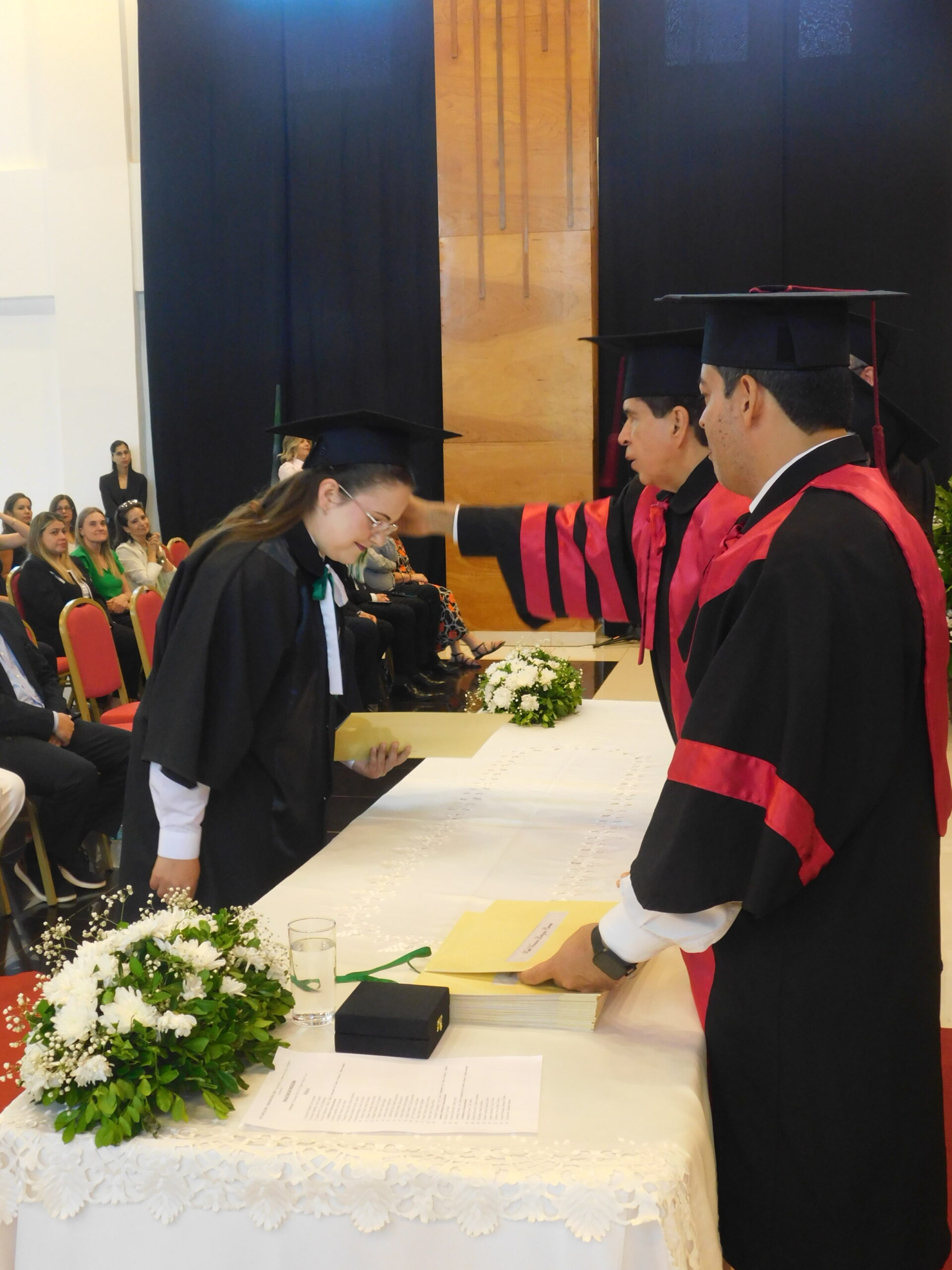 A continuación, se procedió a la entrega de distinciones honoríficas a la Mejor Egresada y a la Estudiante Sobresaliente de Medicina, en reconocimiento a su desempeño académico. Las distinciones fueron entregadas por el Dr. Diego Berdejo, en su calidad de Secretario de Salud de la Gobernación de Itapúa.