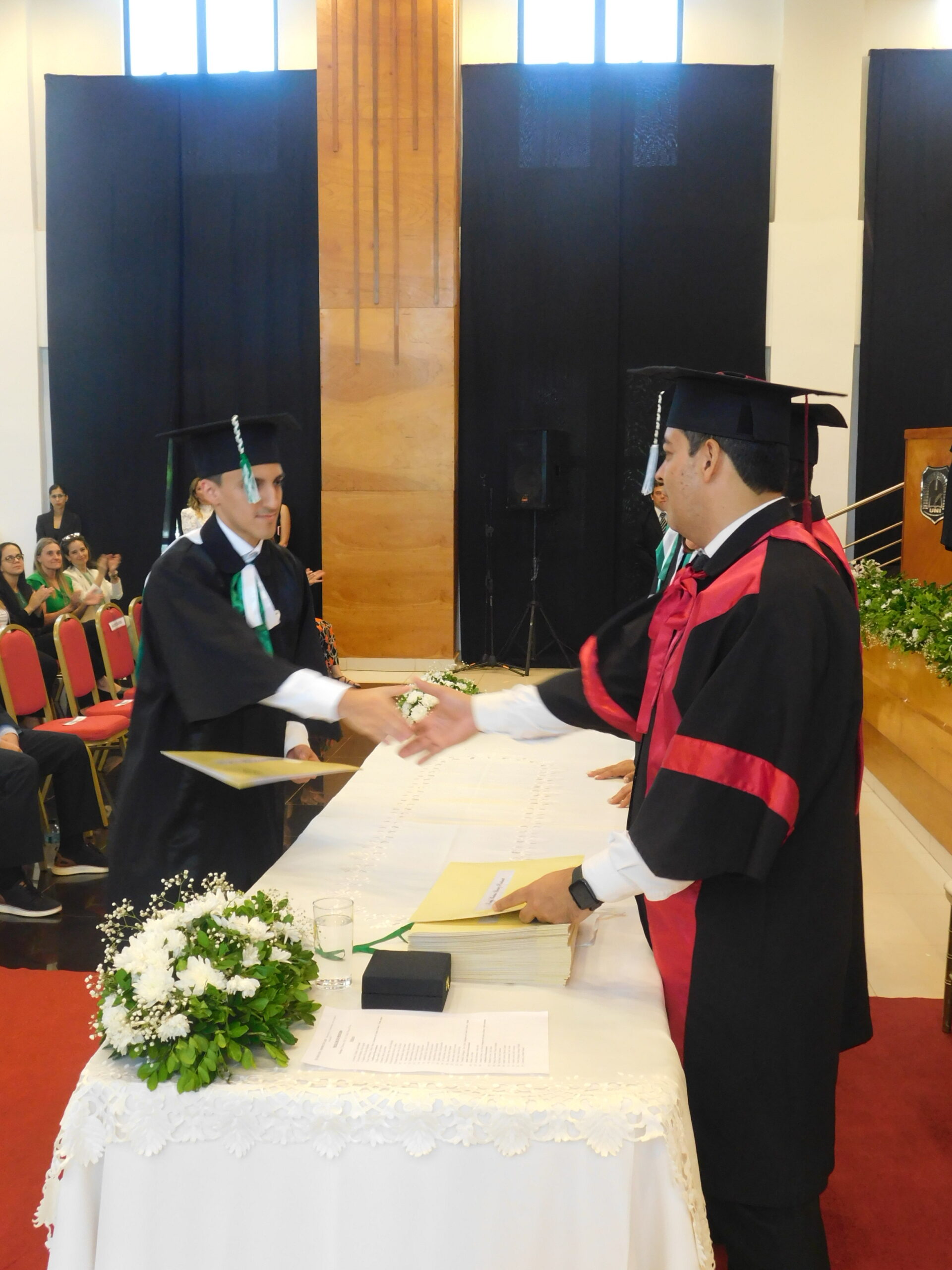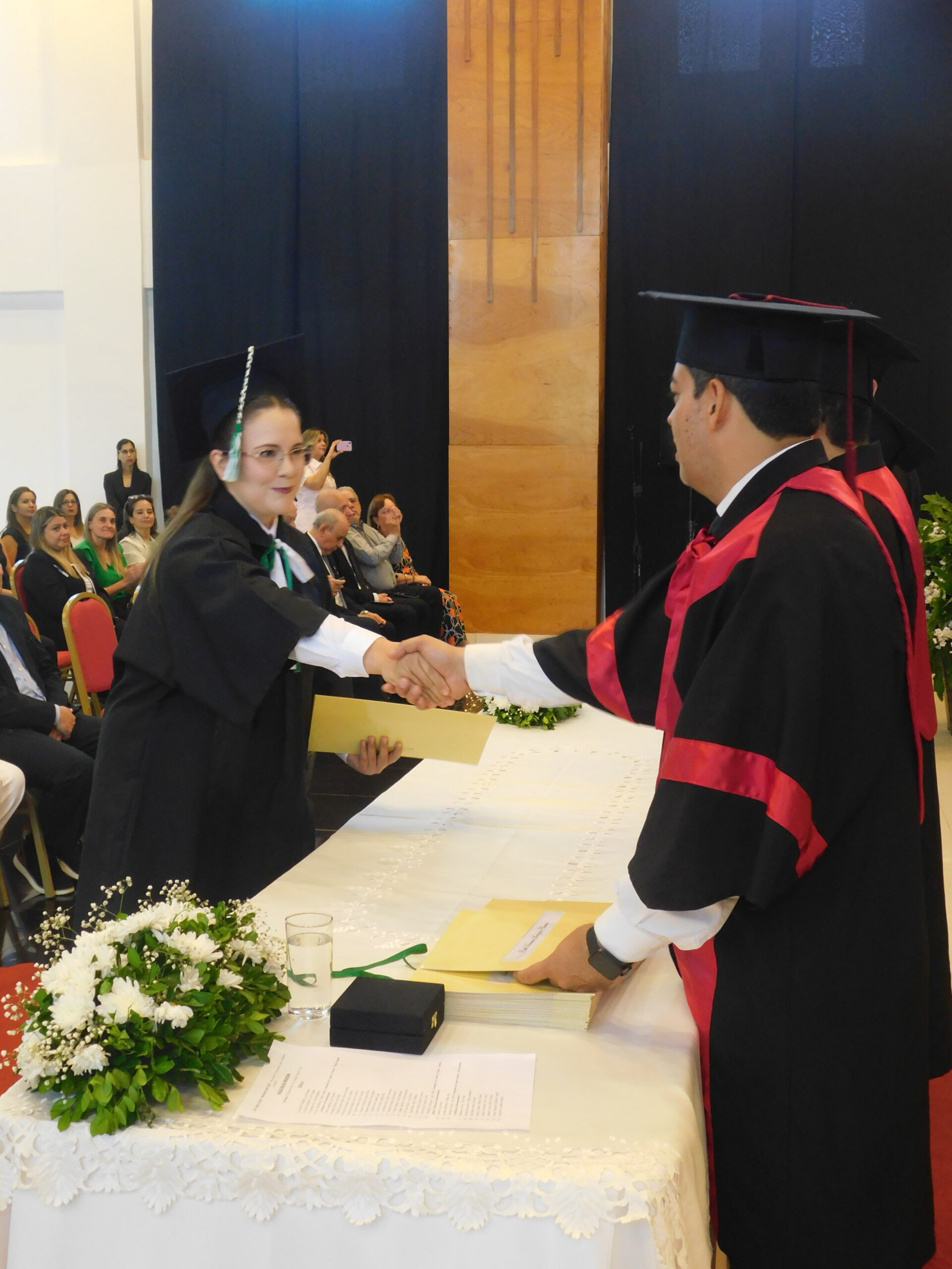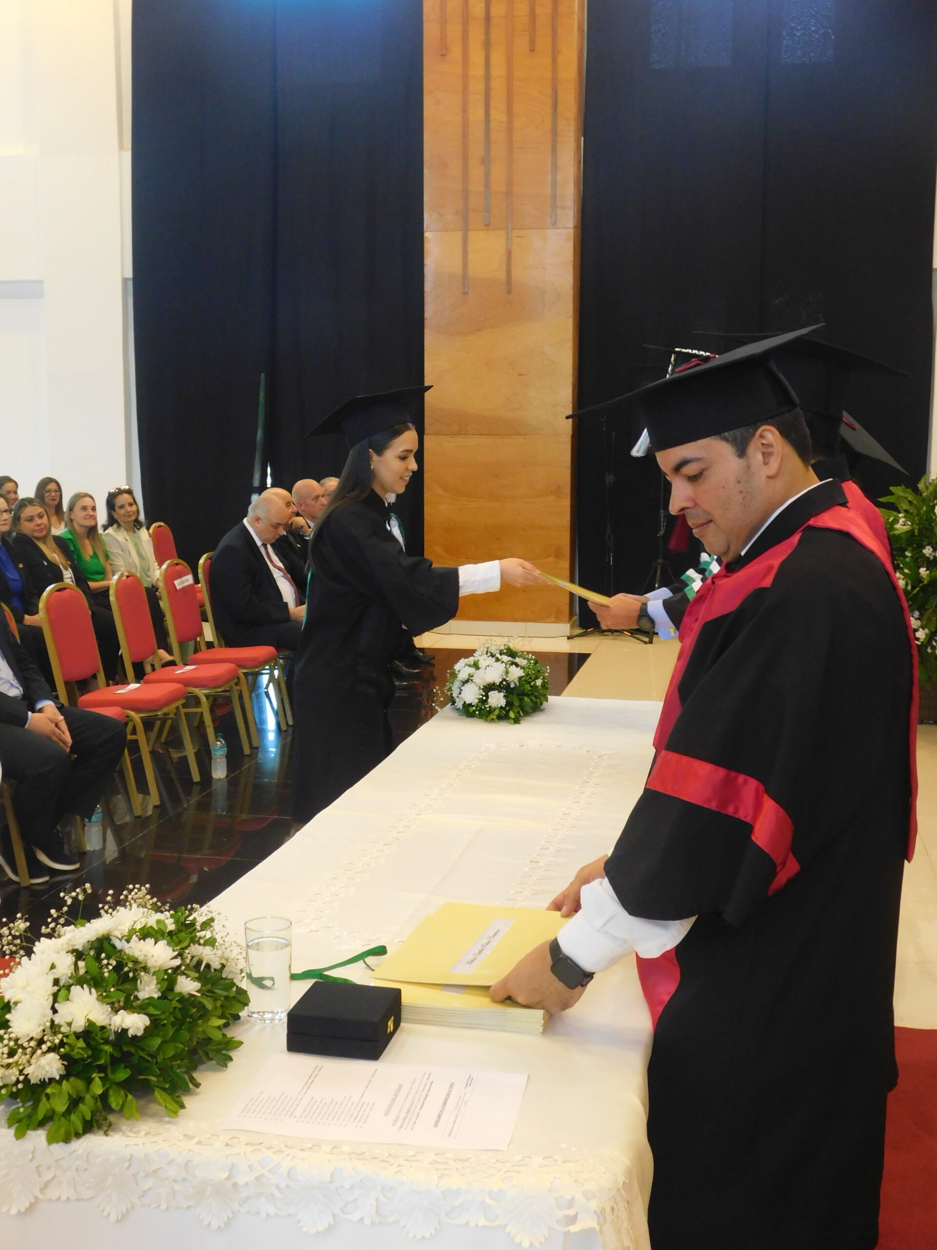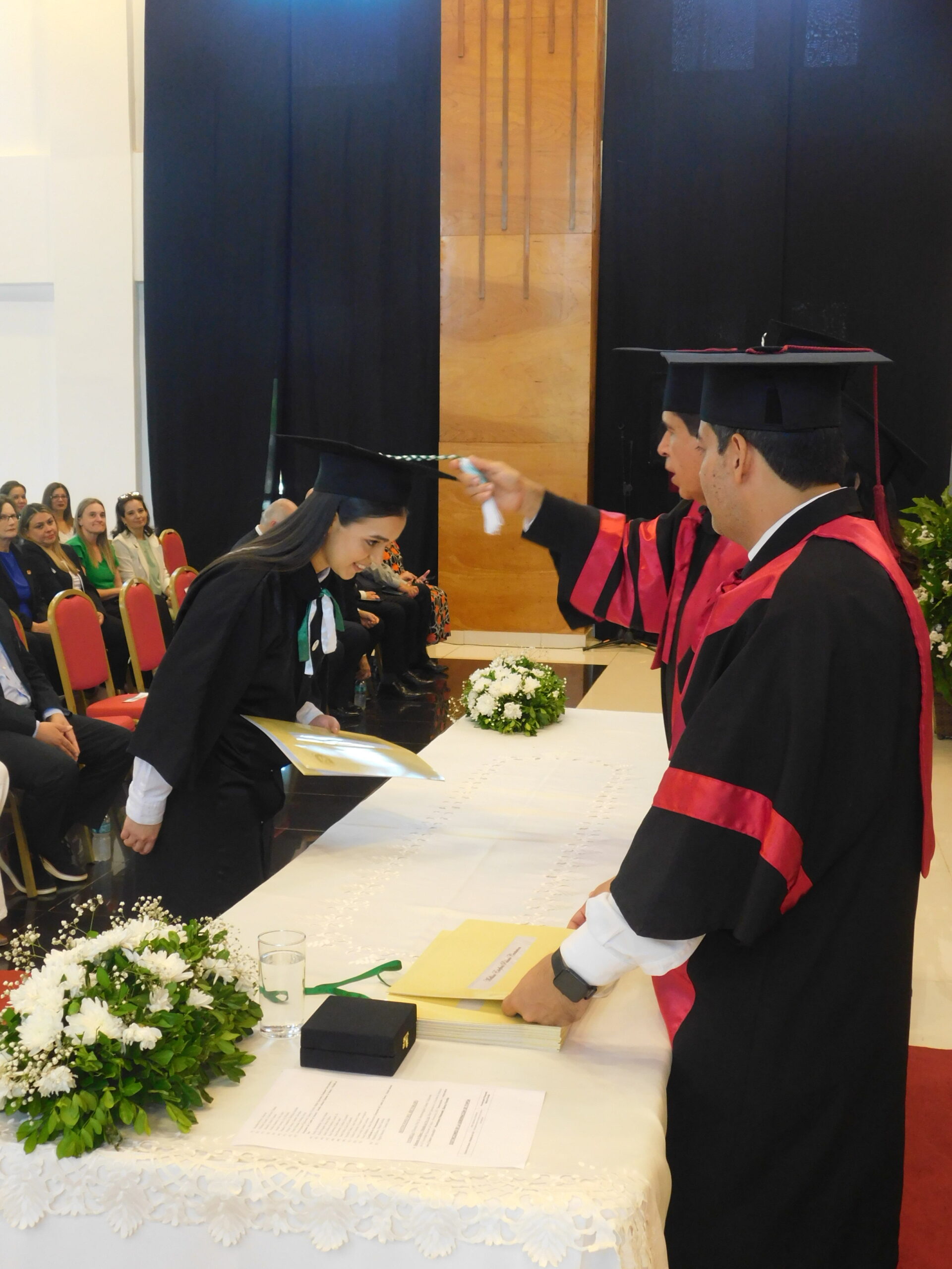 A continuación, se procedió a la entrega de distinciones honoríficas a la Mejor Egresada y a la Estudiante Sobresaliente de Medicina, en reconocimiento a su desempeño académico. Las distinciones fueron entregadas por el Dr. Diego Berdejo, en su calidad de Secretario de Salud de la Gobernación de Itapúa.