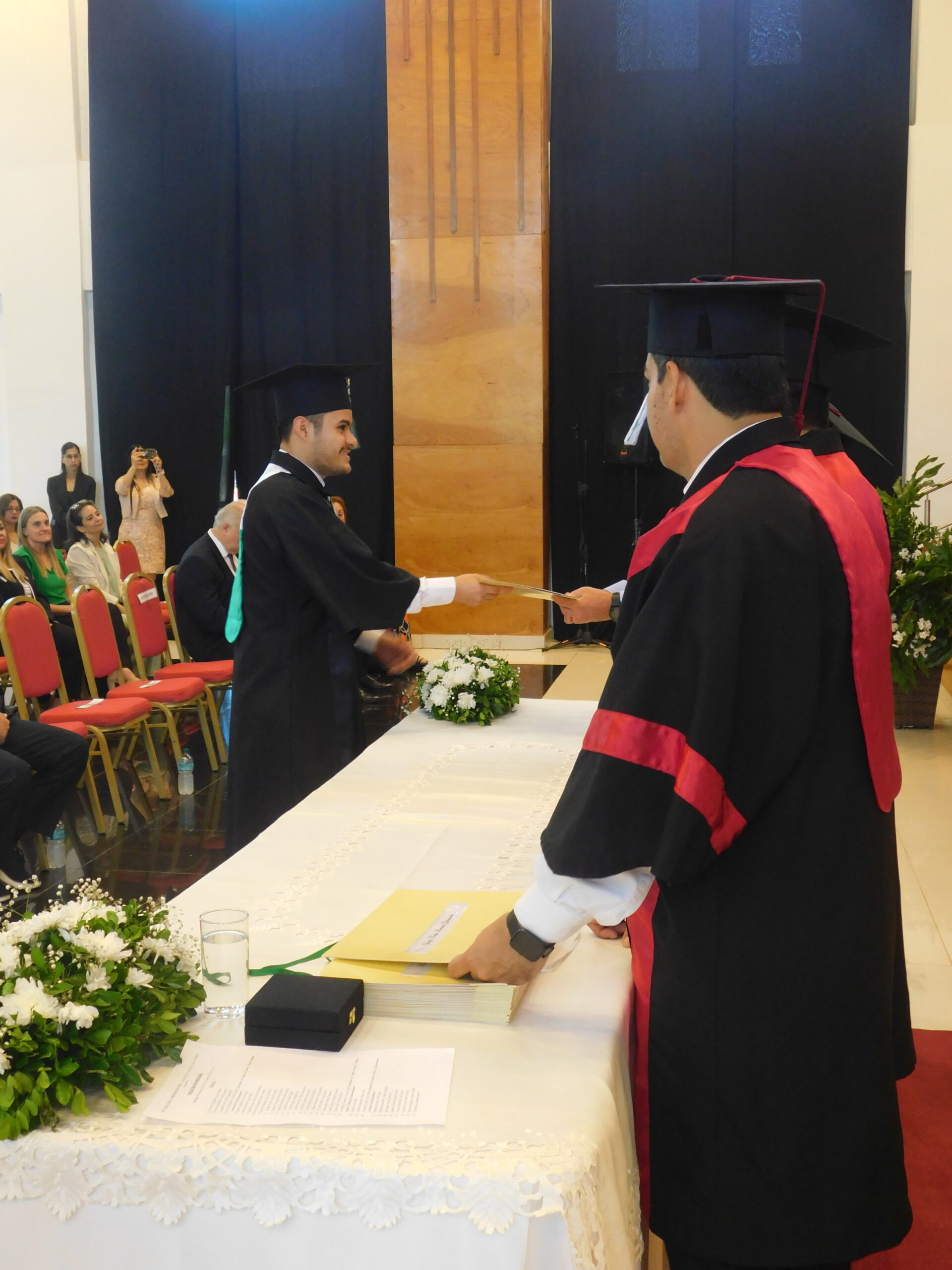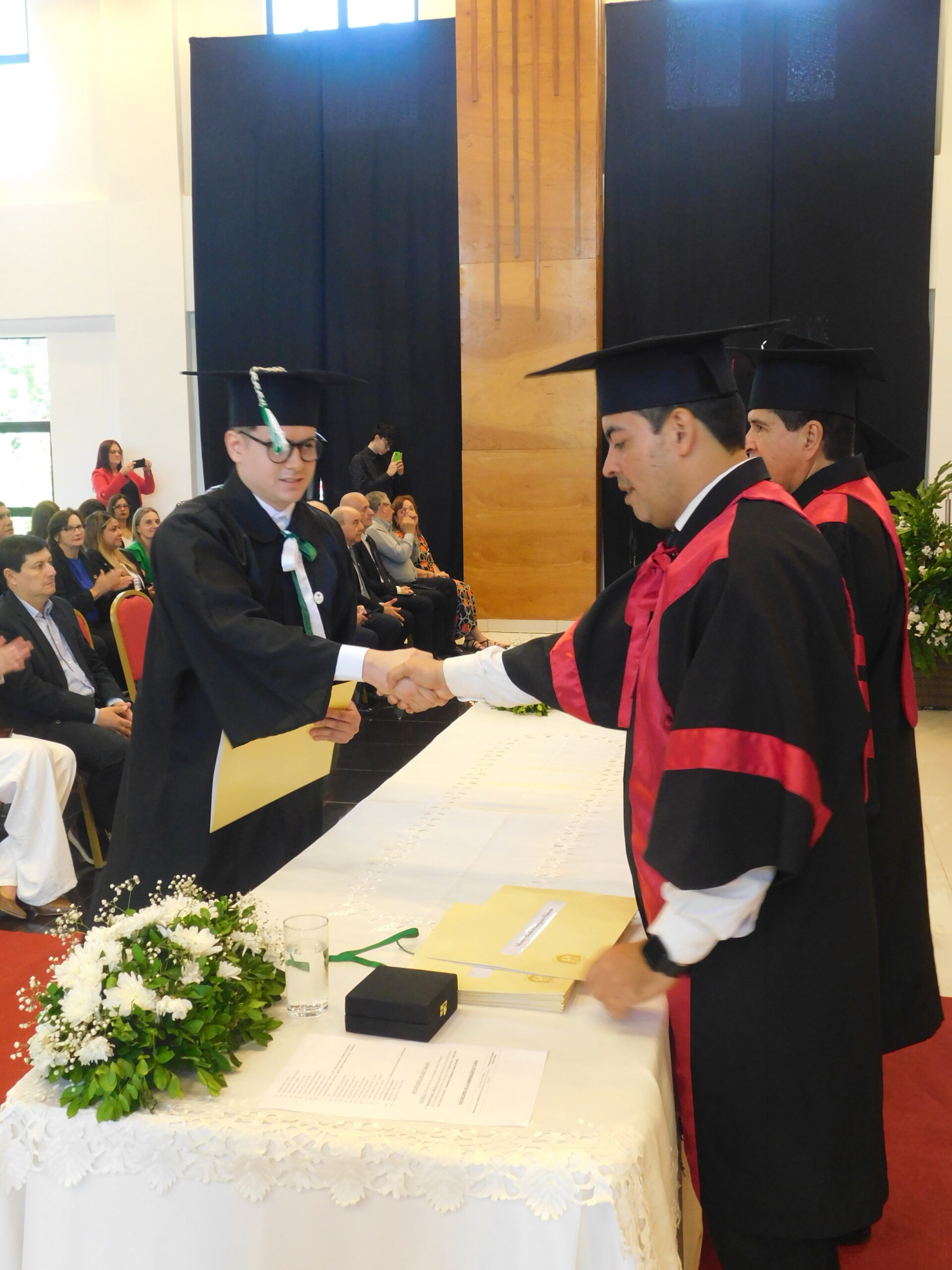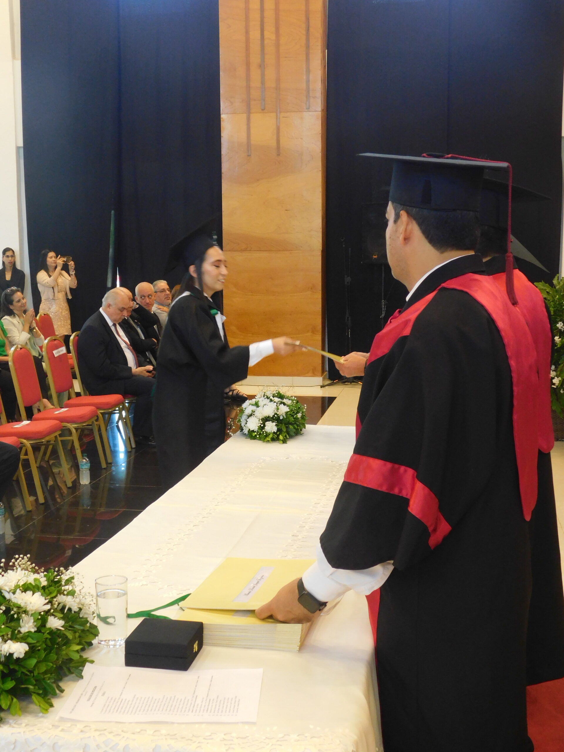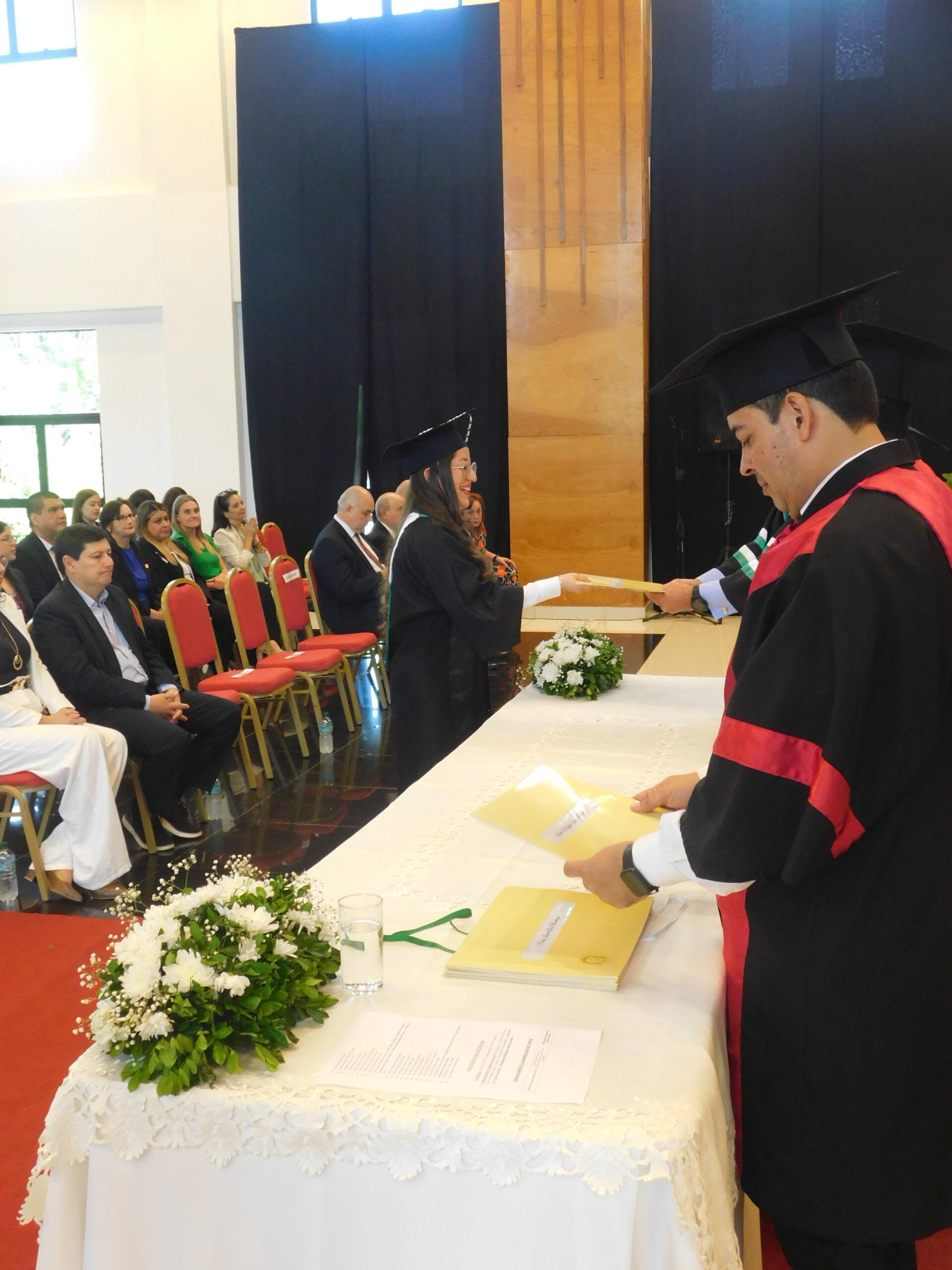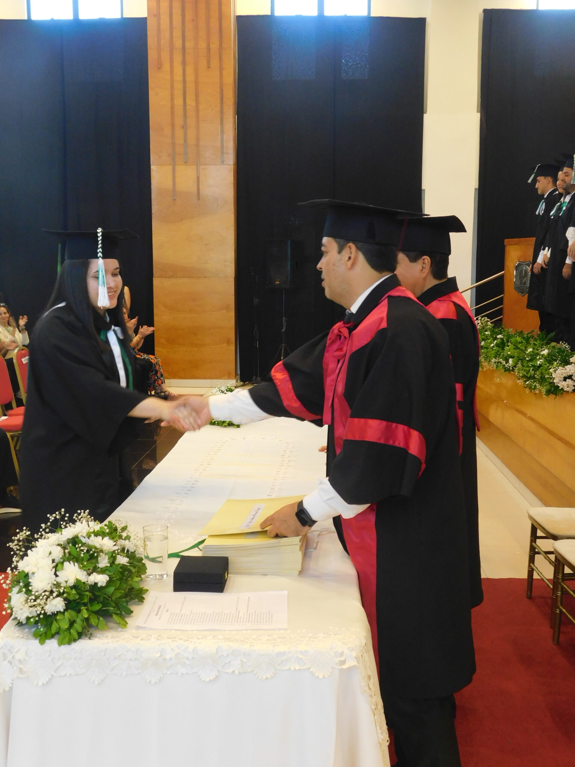 A continuación, se procedió a la entrega de distinciones honoríficas a la Mejor Egresada y a la Estudiante Sobresaliente de Medicina, en reconocimiento a su desempeño académico. Las distinciones fueron entregadas por el Dr. Diego Berdejo, en su calidad de Secretario de Salud de la Gobernación de Itapúa.