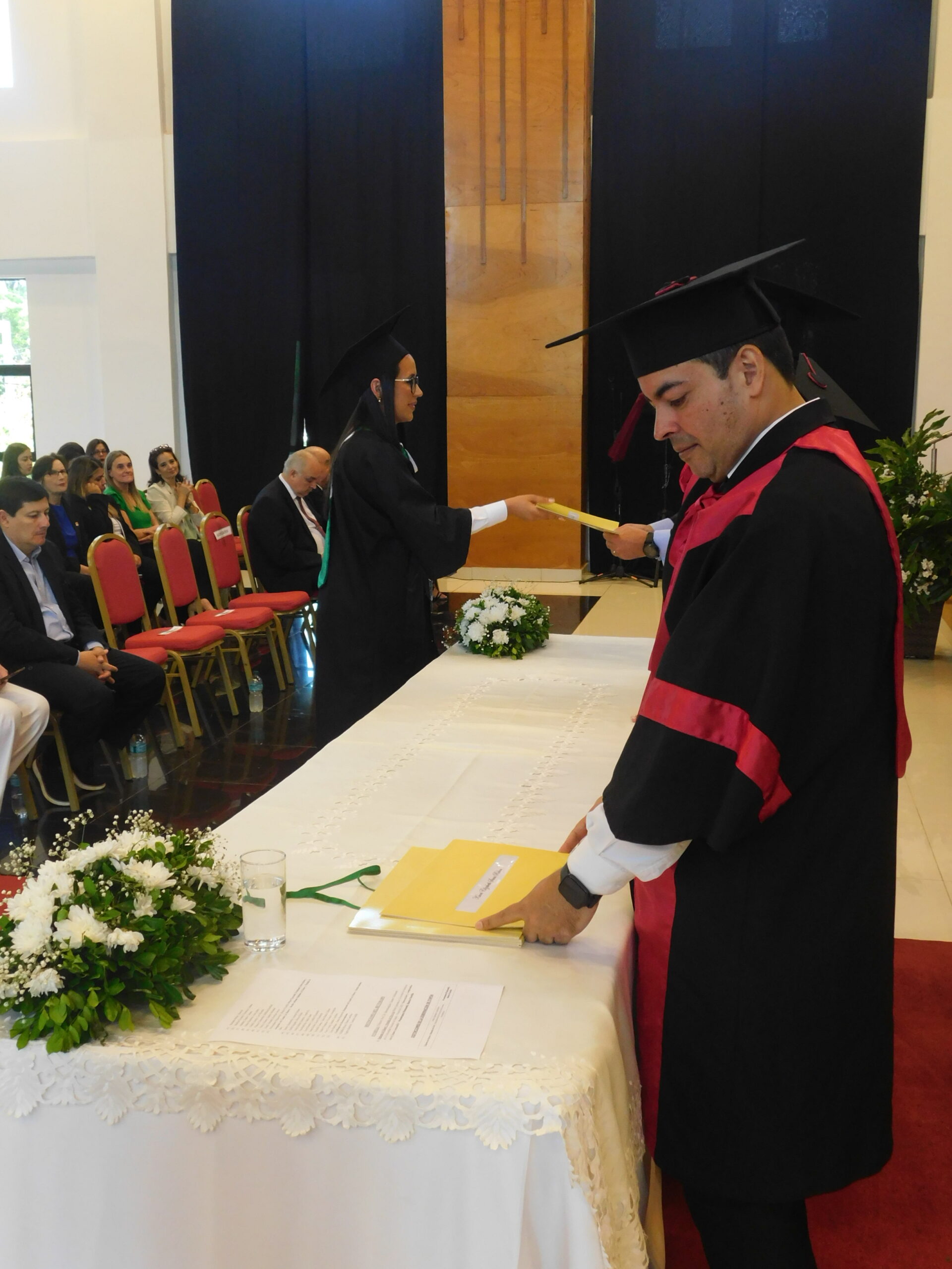 Luego, invitó a los nuevos profesionales a mirar con responsabilidad hacia el futuro, en un contexto marcado por los avances tecnológicos, la inteligencia artificial, la digitalización y la automatización. Señaló que estas herramientas deben utilizarse con ética y orientadas a la innovación: Innovar es resolver un problema o hacerlo de una manera más eficiente.