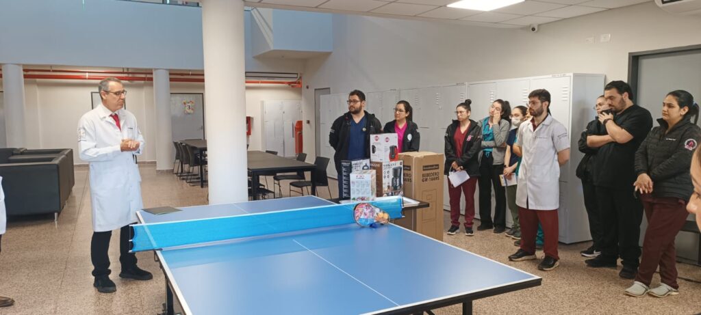 En el marco del Día Mundial de la Salud Mental, y gracias a las gestiones realizadas por la Coordinación de Extensión y Bienestar del Postgrado de la Facultad de Medicina, se llevó a cabo la entrega de una mesa de ping pong y diversos electrodomésticos (cafetera, licuadora, mixtera, jarra eléctrica, bebedero, entre otros) destinados al albergue de los médicos residentes de las distintas especialidades del Hospital General de Itapúa (HGI).