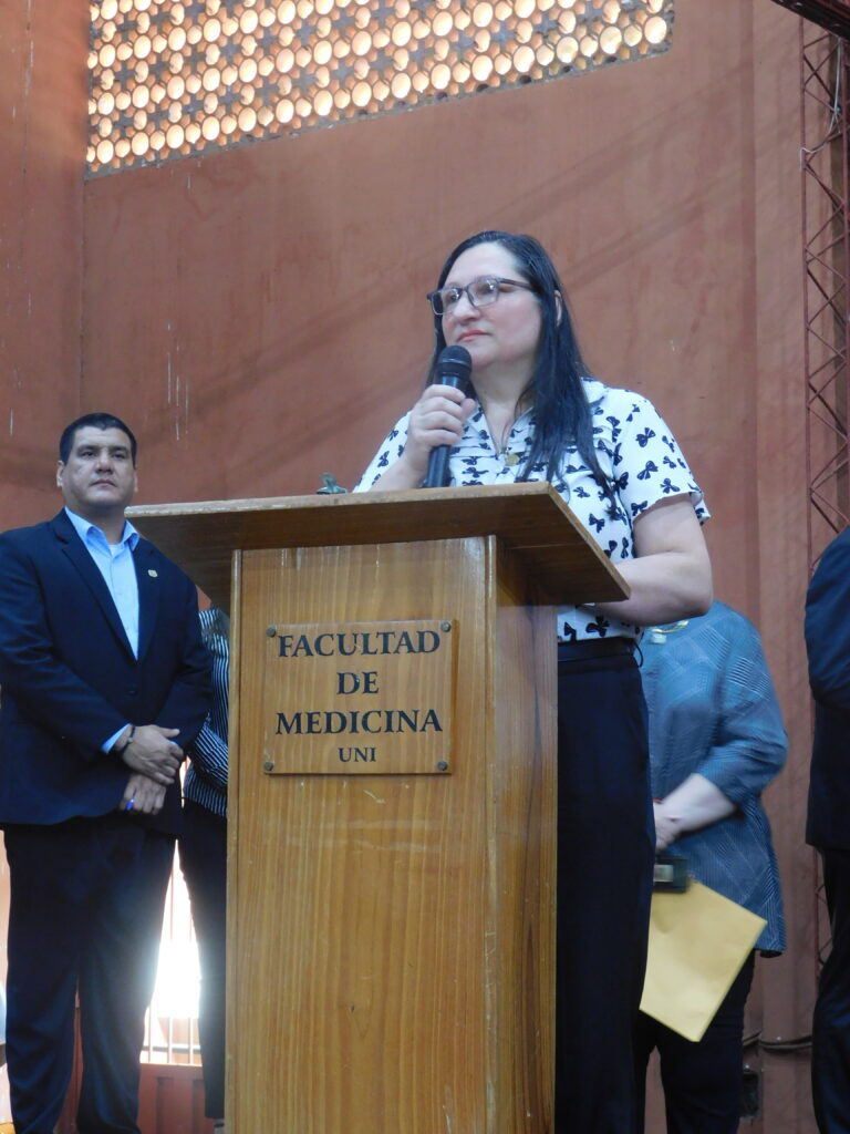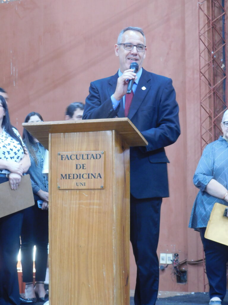 Una vez finalizado el examen, se procedió a leer la nómina de ingresantes en el salón de usos múltiples de la UNI. En la ceremonia, la Ministra de Salud, Dra. María Teresa Barán, junto con el Rector de la Universidad Nacional de Itapúa, Prof. Dr. Hermenegildo Cohene Velázquez, y el Decano, Dr. Claudio Díaz de Vivar, dieron la bienvenida a los presentes y agradecieron a todos por la confianza depositada, una vez más, en esta institución.