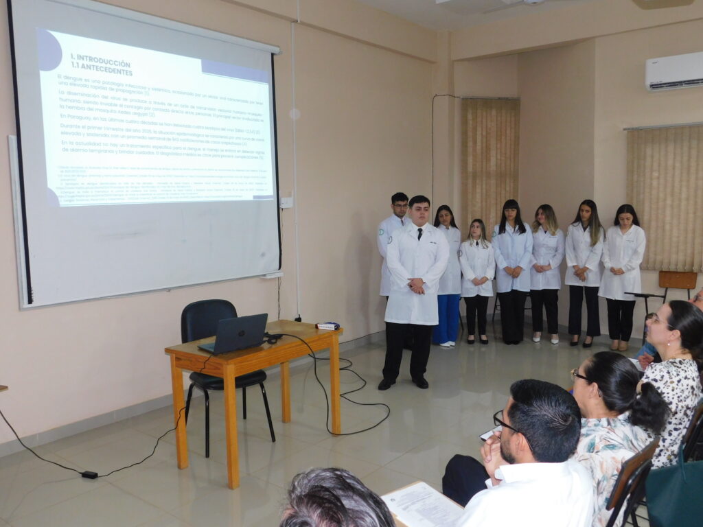 La Dirección de Docencia e Investigación de la Facultad de Medicina de la Universidad Nacional de Itapúa coordinó la jornada de defensa de Trabajos Finales correspondiente al segundo curso, desarrollada en el Aula 2 de la sede central, ubicada sobre la calle Abog. Lorenzo Zacarías.
